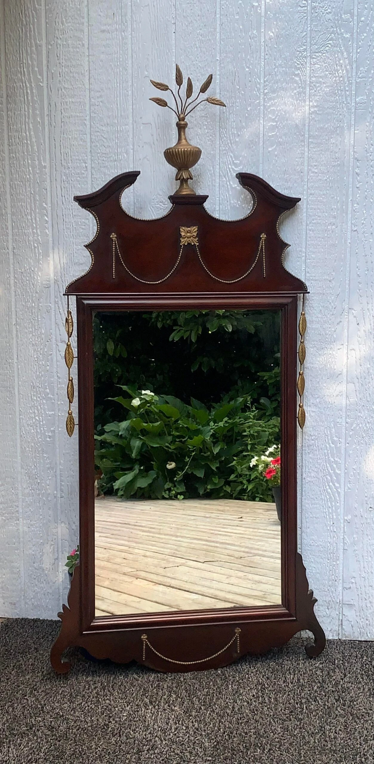 Stunning Antique Mirror with Exquisite Detail Carvings! This Gorgeous Federal Pier Mirror is as striking as could be in every way!! The top piece is removable for a and additional Design Style. Who wouldn’t be taken with a Mirror so lovely and beautiful , beaded and carved, with gold accented side detail, and a top which calls out to be so greatly admired for it’s lovely stately presence! It is in excellent condition and it’s striking Beauty shows forth so wonderfully it’s superior craftsmanship and Artistic Design detail! It was exceptionally well cared for in a very Fine Estate Home. A truly very special rare Antique Mirror for all to fall in love with as soon as their their eyes look upon it! This is the only mirror like it we have had during the 33 years of our Timeless Elegance Fine Antique & Estate Furniture business . Mirrors are one of the most popular and sought after Specialties. Our lovely Timeless Elegance shop was sadly torn down for high rise development. It is greatly missed by all who loved and admired the Fine Antique & Estate Furniture pieces within it’s many breathtaking rooms!! We have not presently found a new location. Although, many buyers and lovers of the finest and the best of Antique & Estate Furniture pieces, are anxiously waiting ! We have five storages filled with our shop inventory and hundreds of one of a kind , stunningly beautiful and rare to find. We are currently selling online. Our Authentic Antique furniture and mirrors can not be duplicated. There are manufacturers now and even in the past 50 or 60 years in parts of the world who attempt to duplicate Antique Furniture, Antique Mirrors and old Art. When you see them online compare them carefully with Authentic Antique Furniture Pieces and Mirrors. You will be able to see quite clearly the difference in craftsmanship, woods, detail. Every buyer of Fine Antique Furniture and Fine Antique mirrors should carefully look at pictures, blow them up to check the authenticity pieces. Many copies are also priced much higher than Authentic Antique Pieces. Our Timeless Elegance Fine Antiques & Estate Furniture Pieces are as beautiful and as quality as can be! They are Authentic , Antique, and Fine Estate Furniture Pieces!! Stately, Stunning , Rare , Hard to Find and truly Really Old! !!! They are impossible to Duplicate! Look for the Best , the most Beautiful, The Timeless Elegance and Authenticity in every piece of Fine Antique & Estate Furniture you buy ! Look for Fine Authentic Furniture & Mirrors which have a true Pride of Ownership! Heirloom Pieces which will be Loved and admired by all for years to come! Fine Furniture has a Timeless Elegance which never , ever, ever goes out of style! Timeless Elegance Fine Antique & Estate Furniture buys and sells with certainty of authenticity!