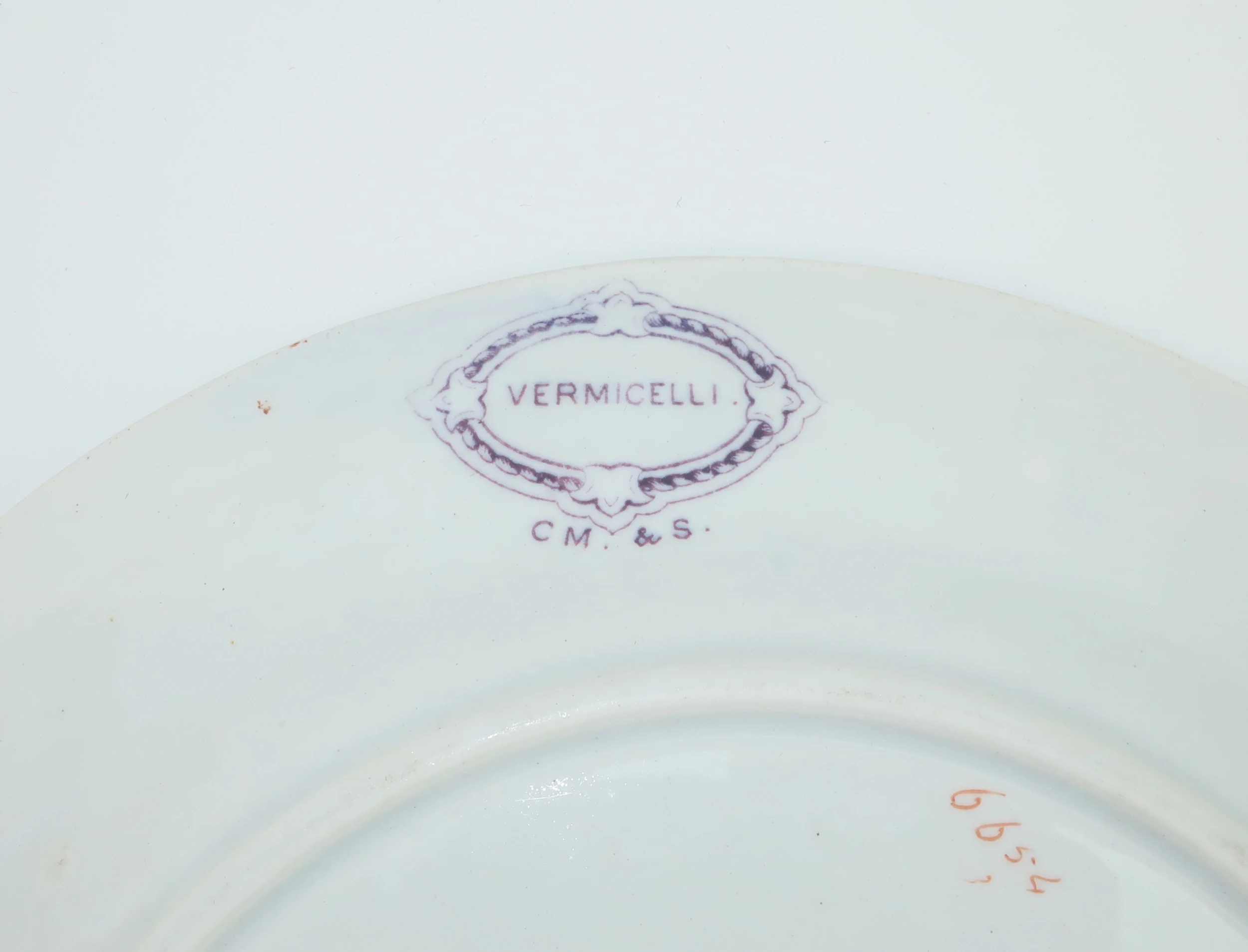 1850’s era pottery dinner plates produced in Staffordshire, England by Charles Meigh & Sons. The pattern is entitled ‘Vermicelli’ which …