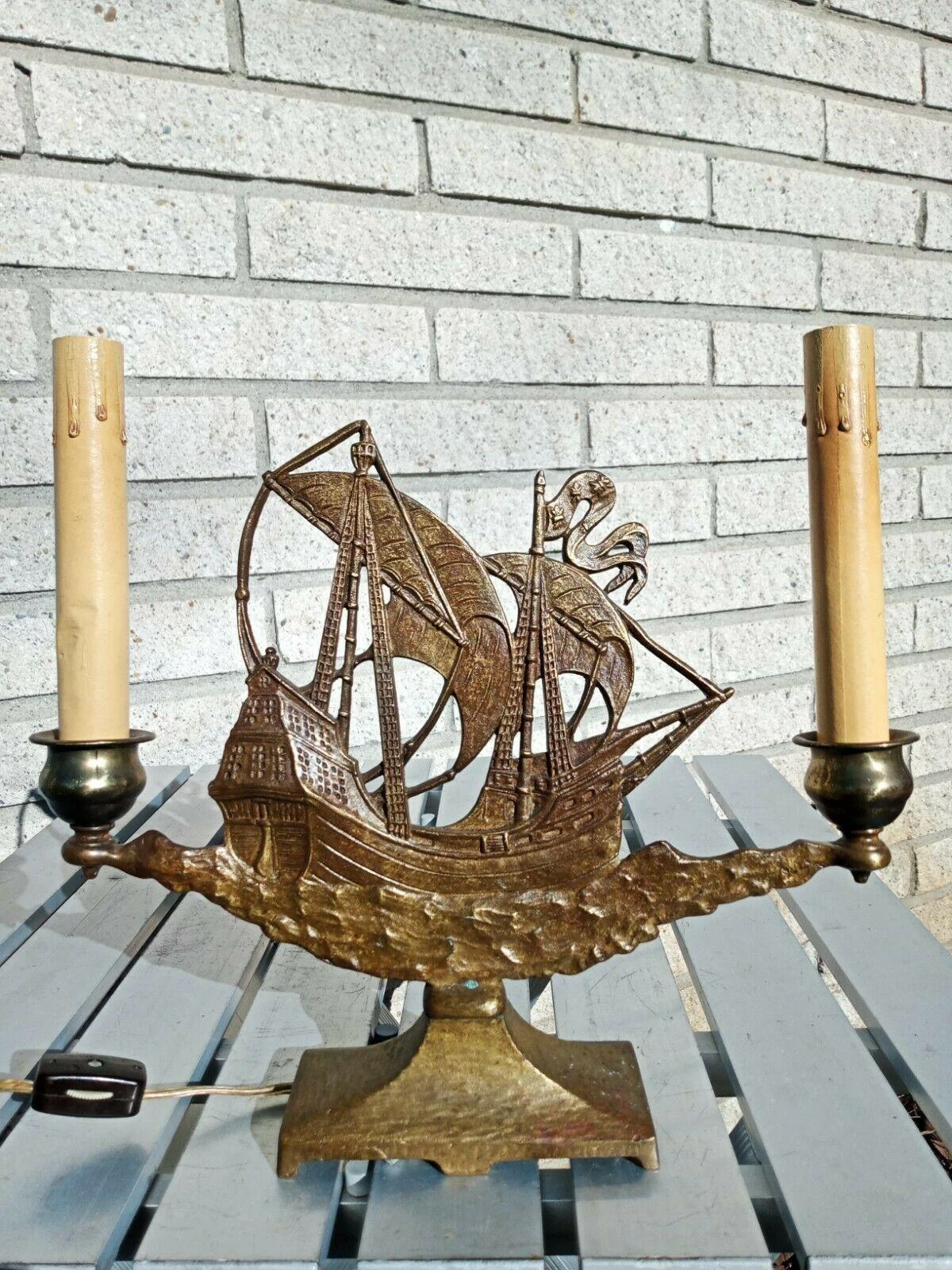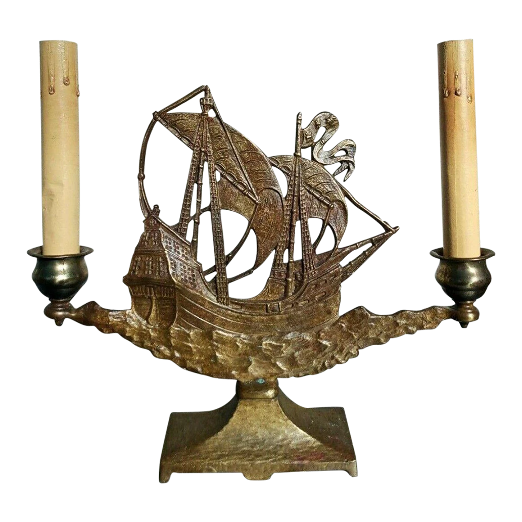 1920’s Oscar Back era Bronze Ship Table Lamp. Finely cast and numbered.