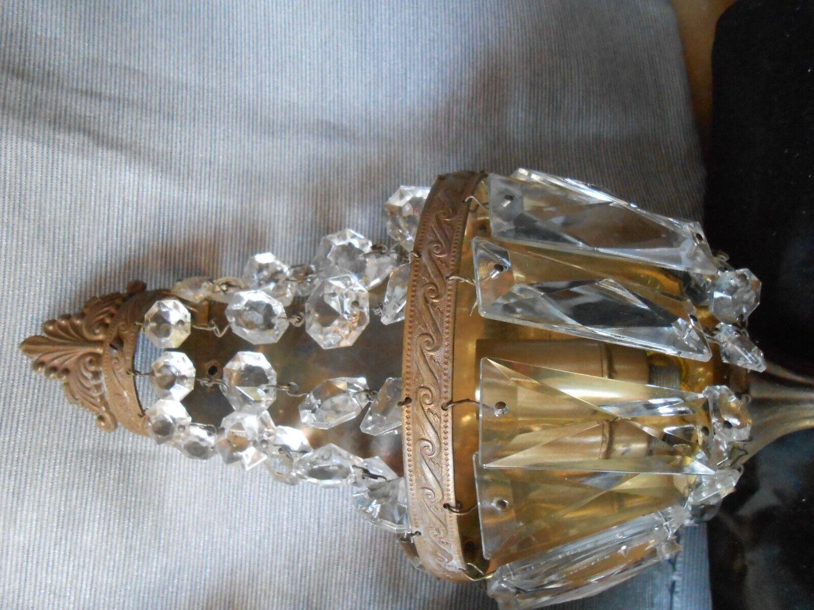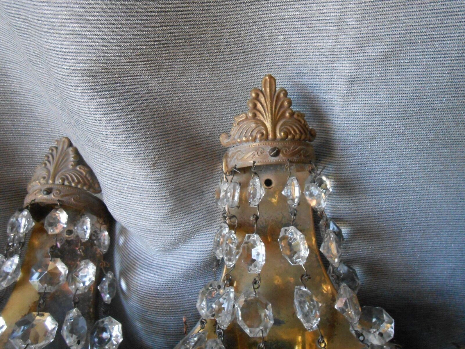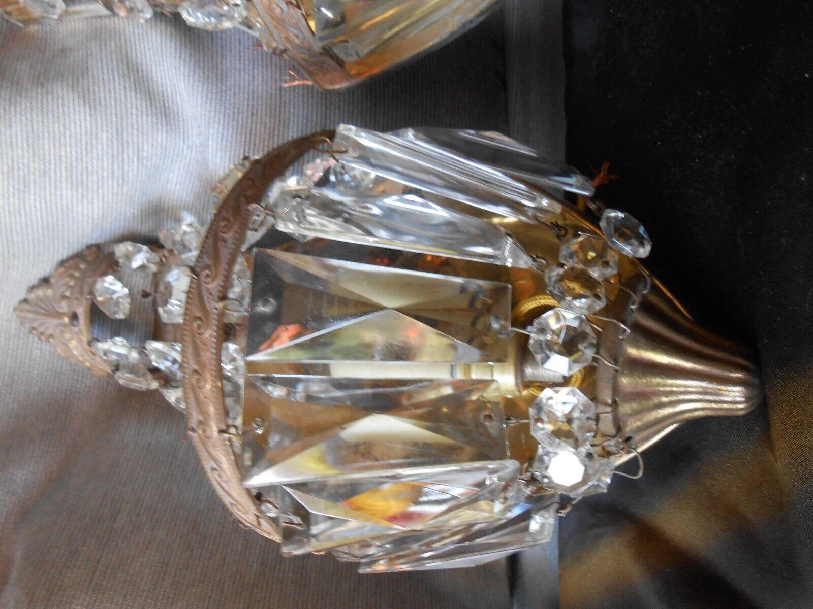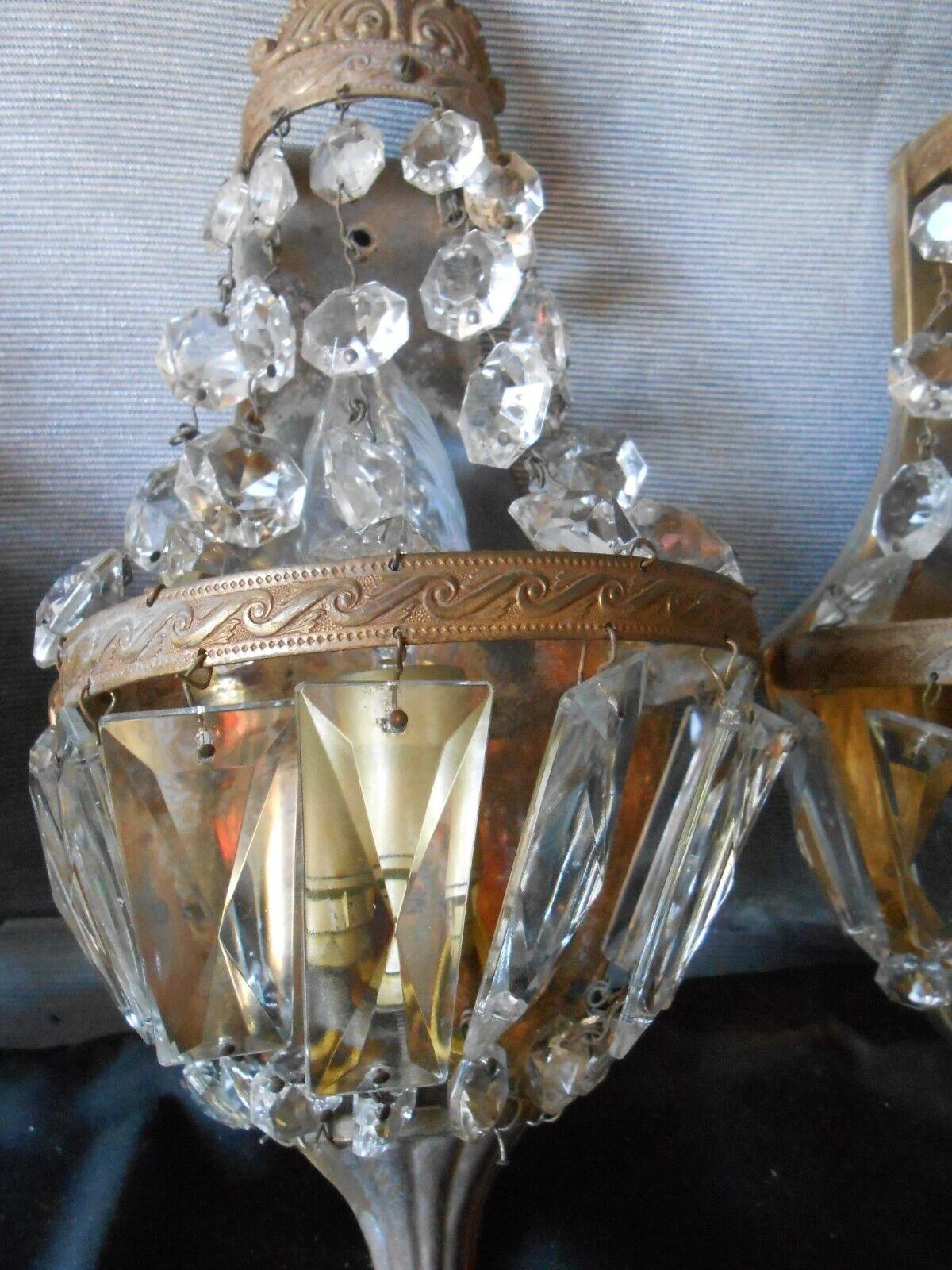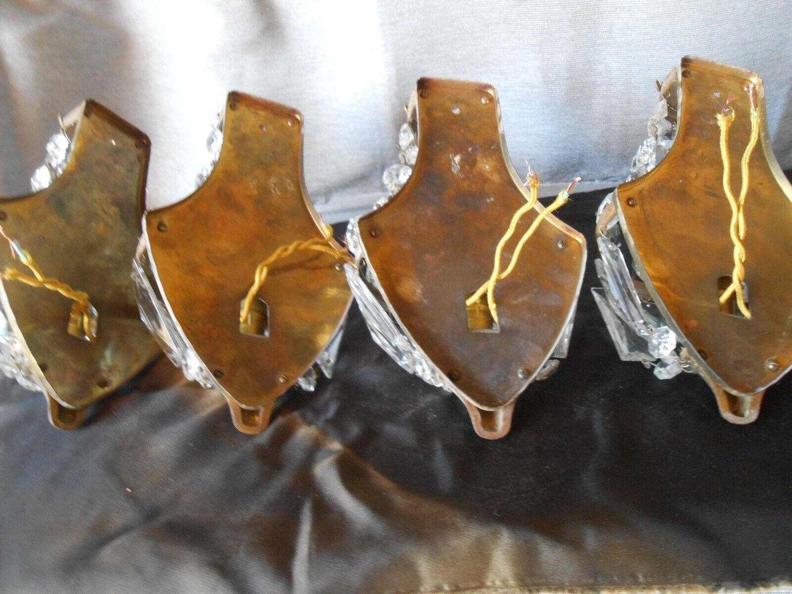 Set of 4 Matched French Louis XVI style Bronze/ Crystal Bag & Tent Wall Sconces. Cascading crystal form. c1920’s.