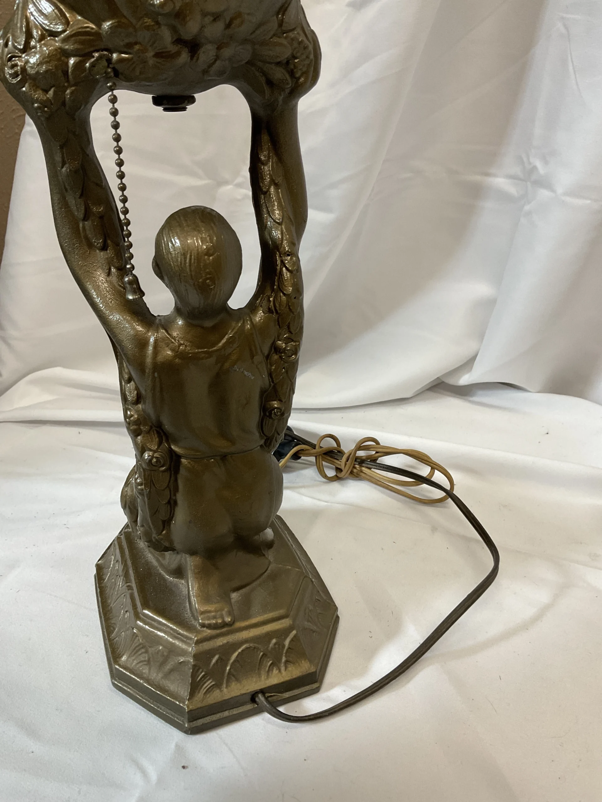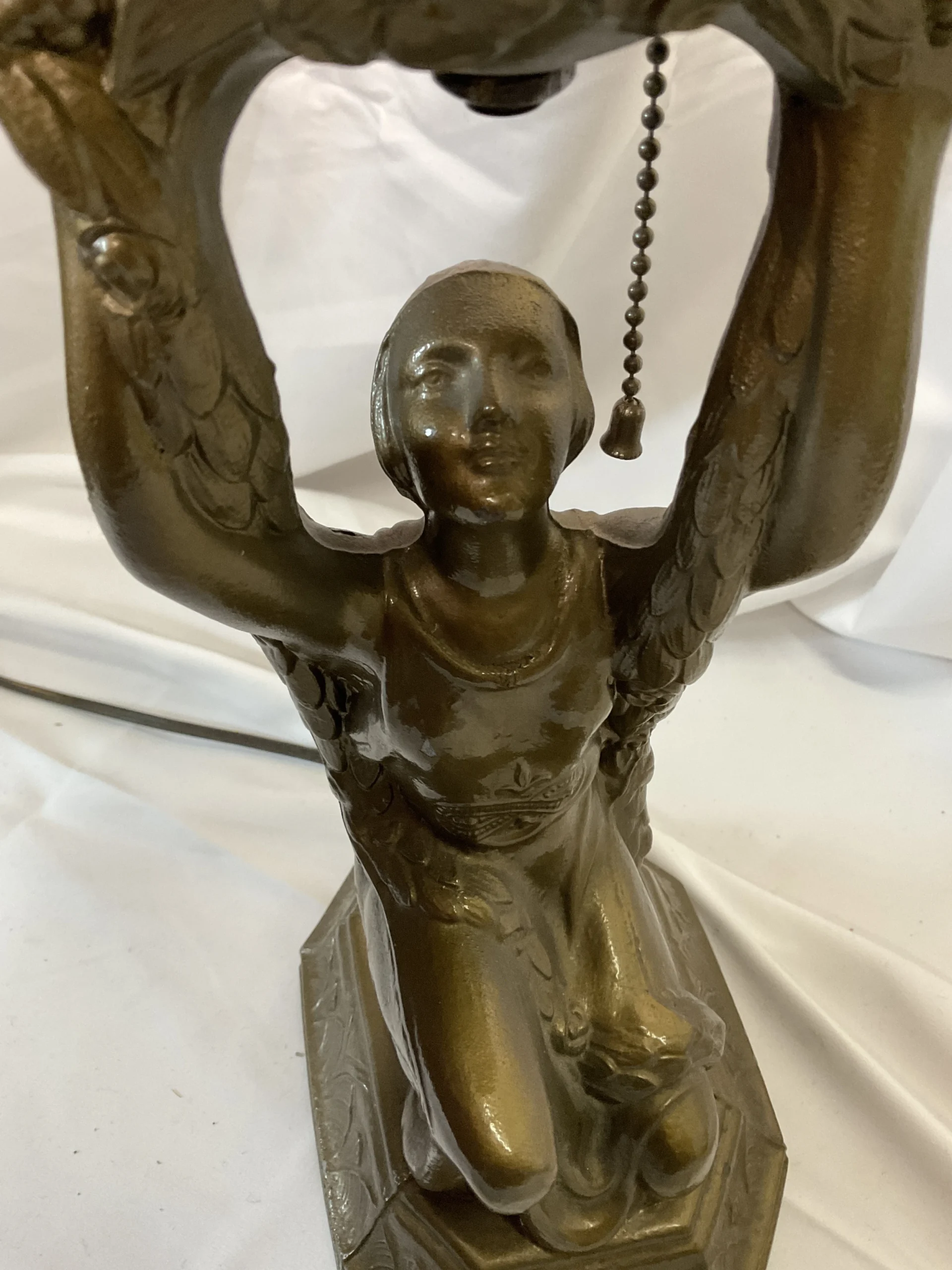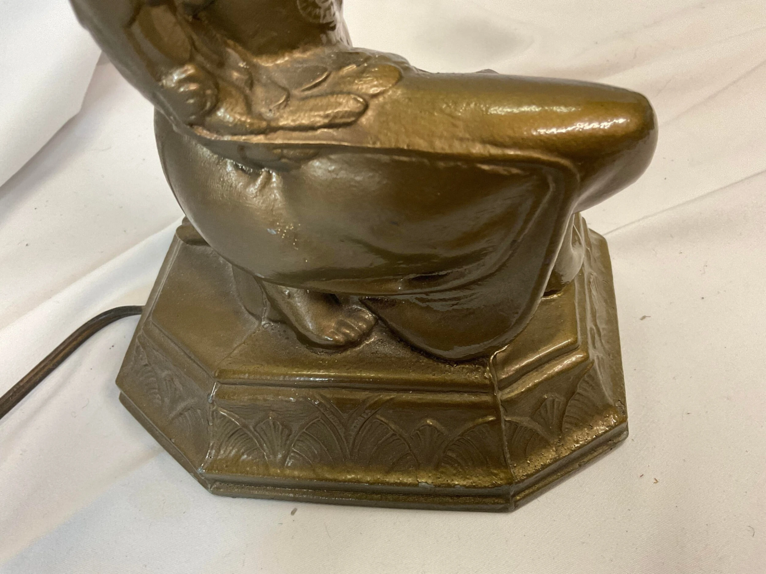 Beautiful Deco period Joan of Arc gold tone spelter table lamp from the 1920’s. The lamp is designed by LaBelle …