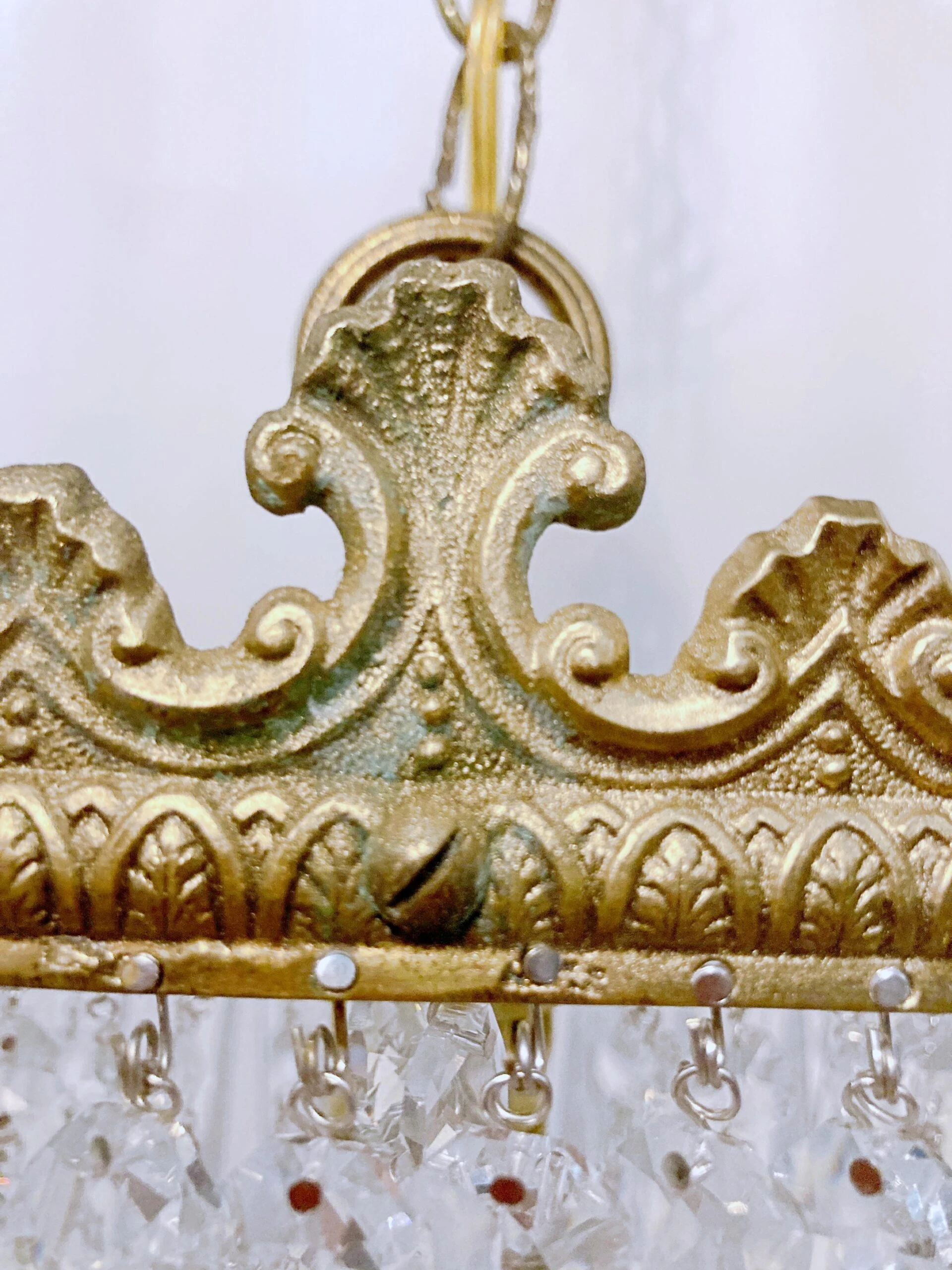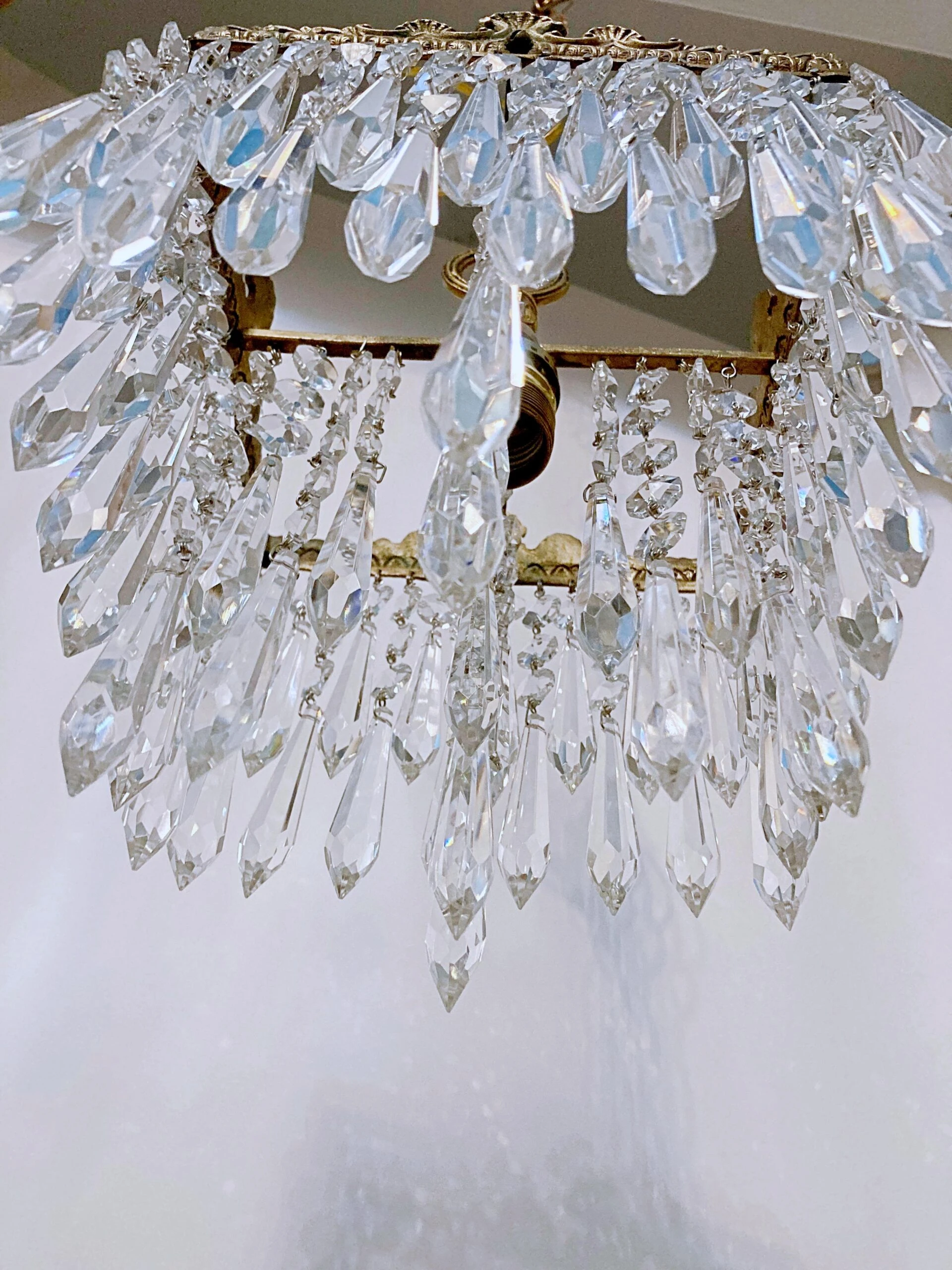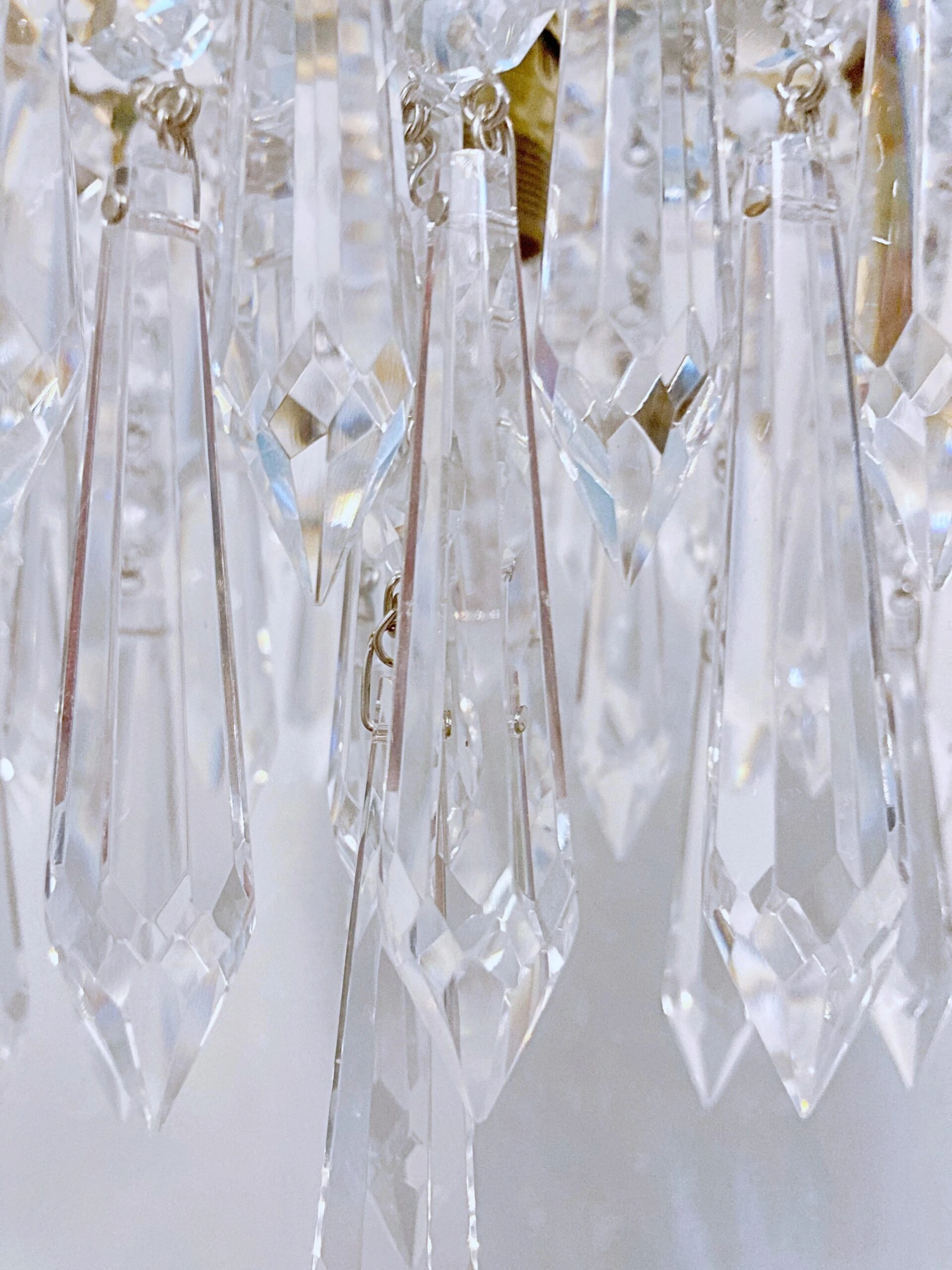 This is an Italian brass rim chandelier dressed with octagon bead and Plug cut crystals.