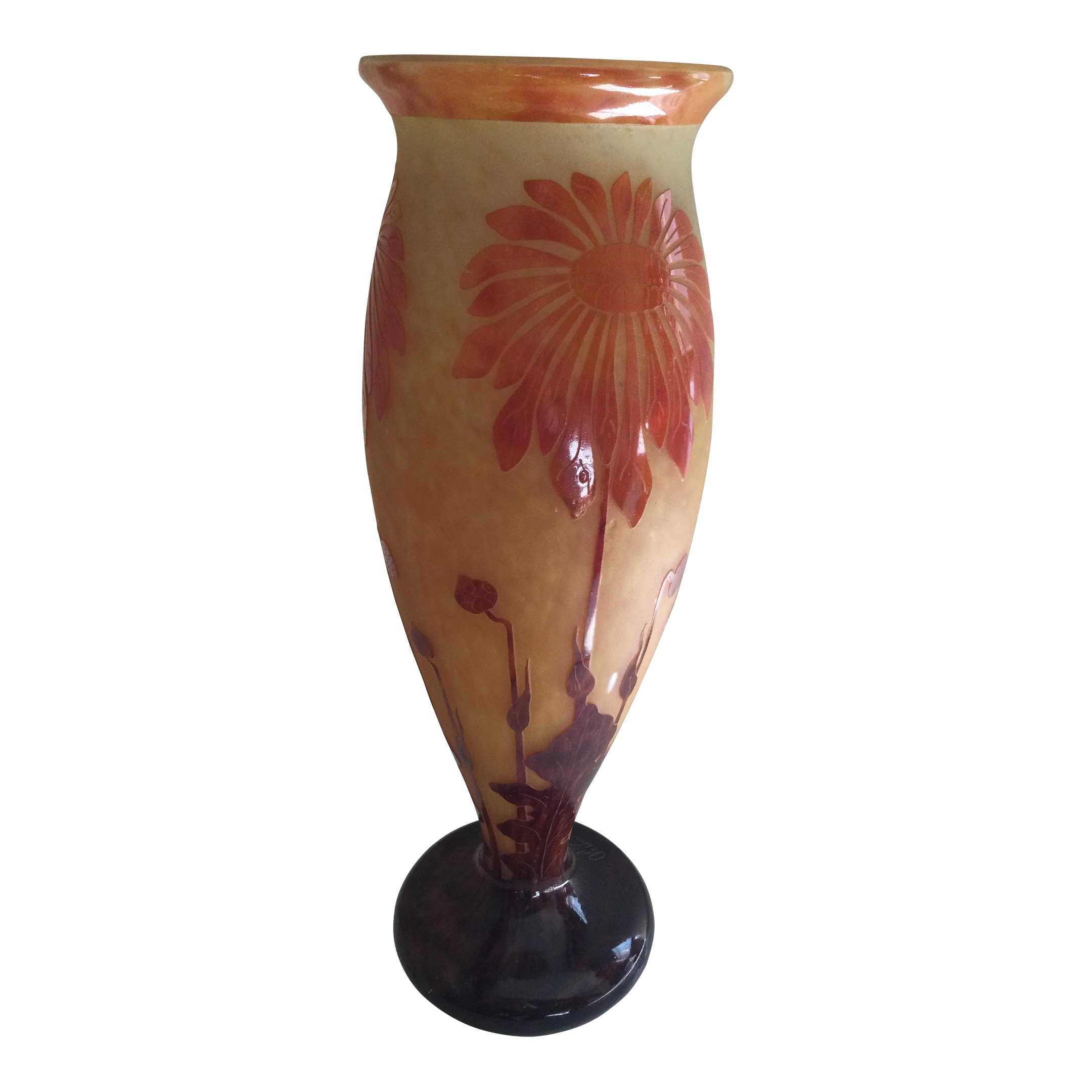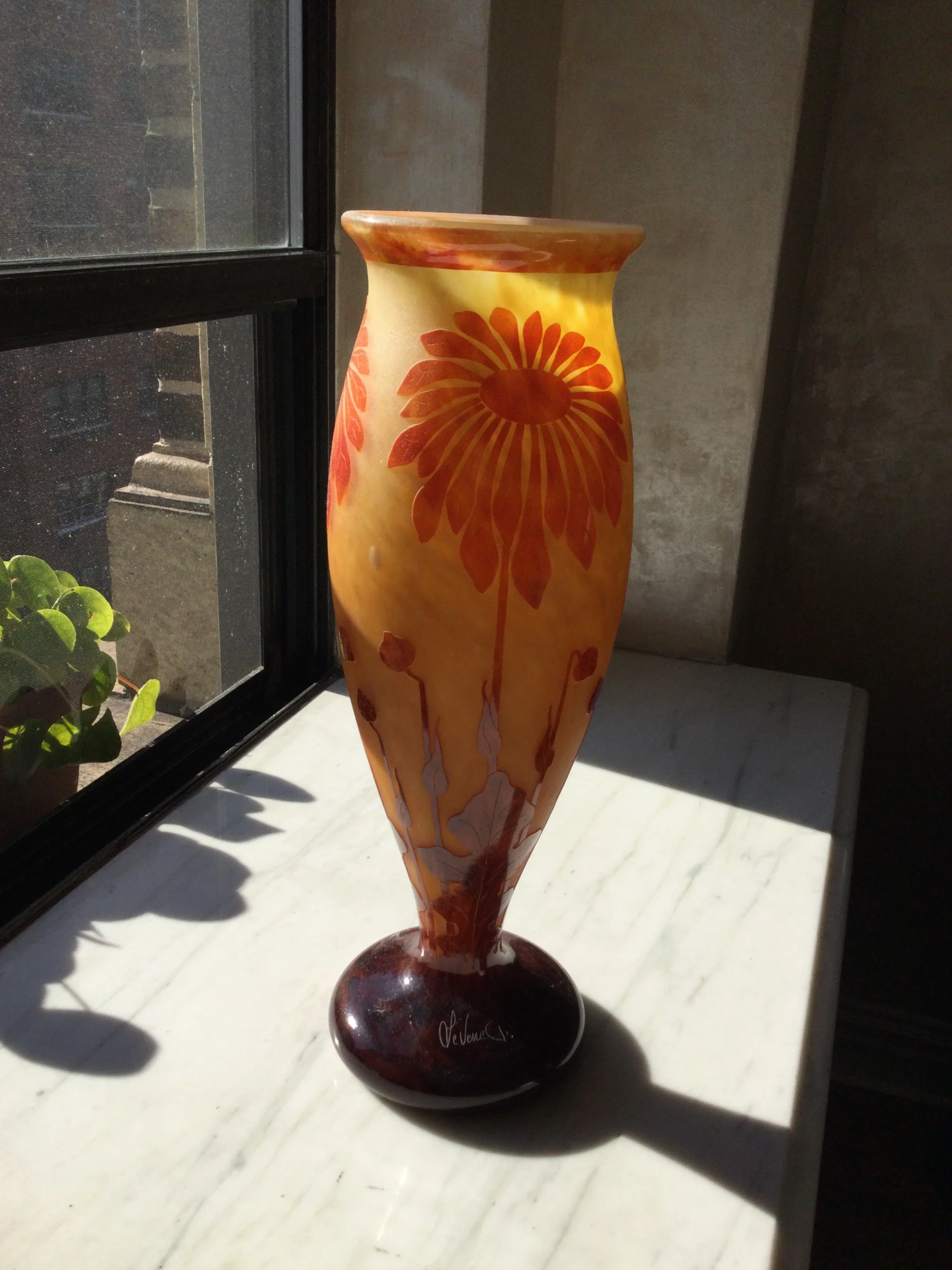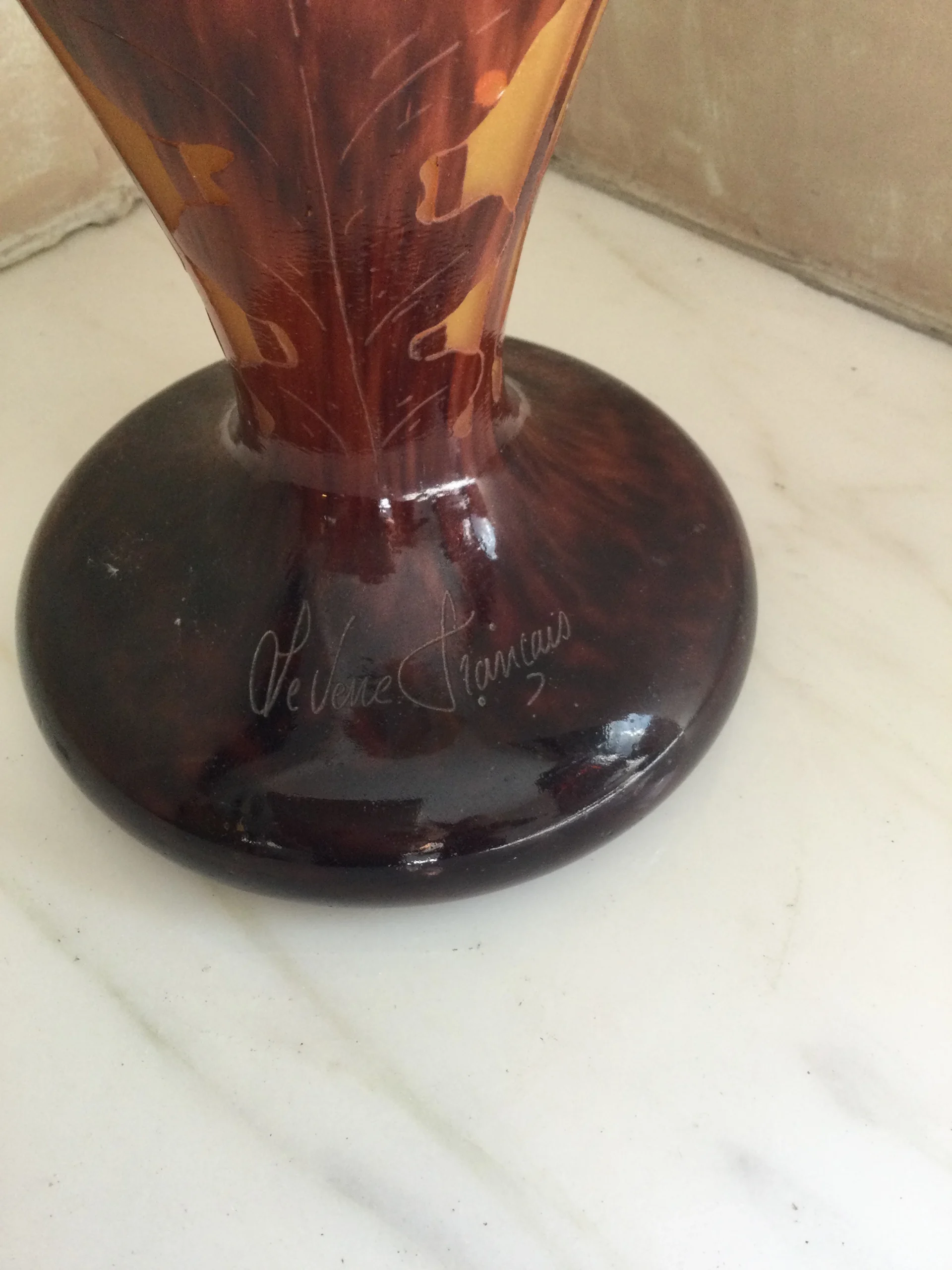Exquisite earth colors. Signed at the stem of the vase