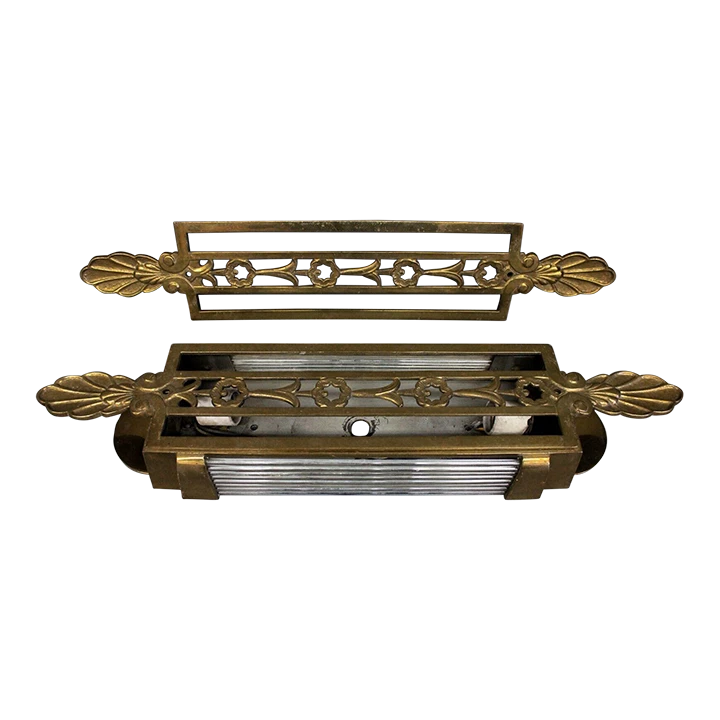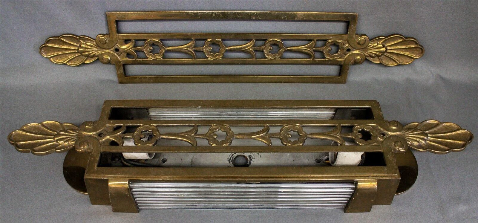 Single c1920’s Original Antique Art Deco Bronze Floral Cased Glass Rod Complete Large Theatre Wall Sconce. Plus an extra front …