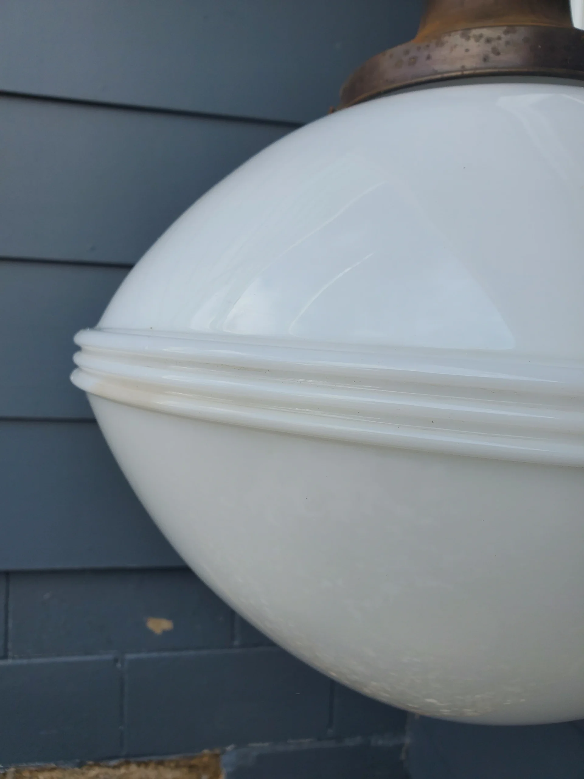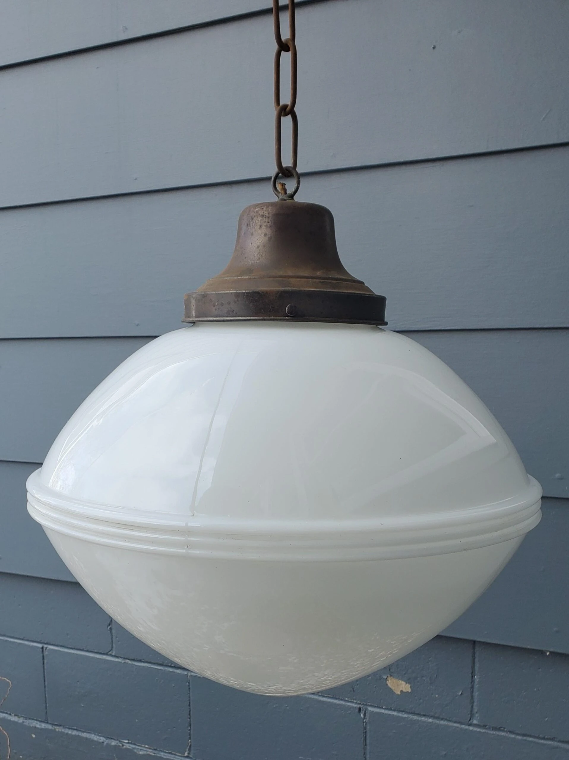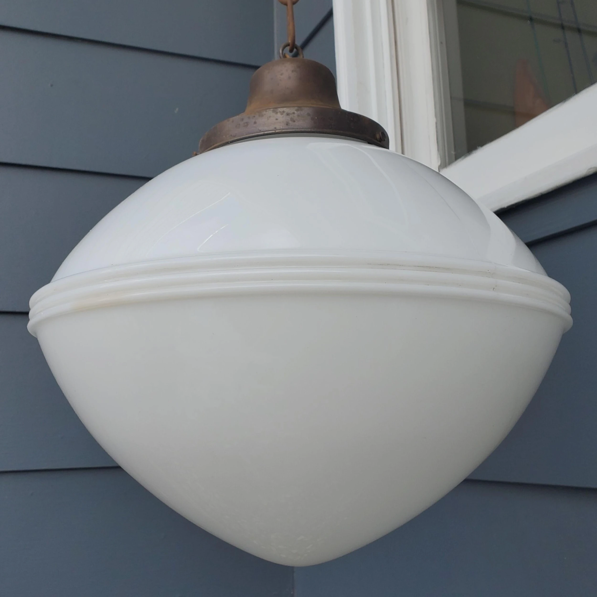 Antique 1920’s Schoolhouse Light Fixture Opal Glass Shade, Globe, School House, Vintage, Hanging, Pendant, Ceiling, Lighting, Ribbed Cone Shaped Pendant …
