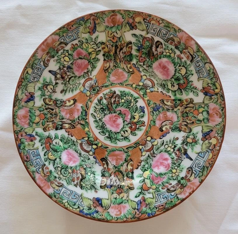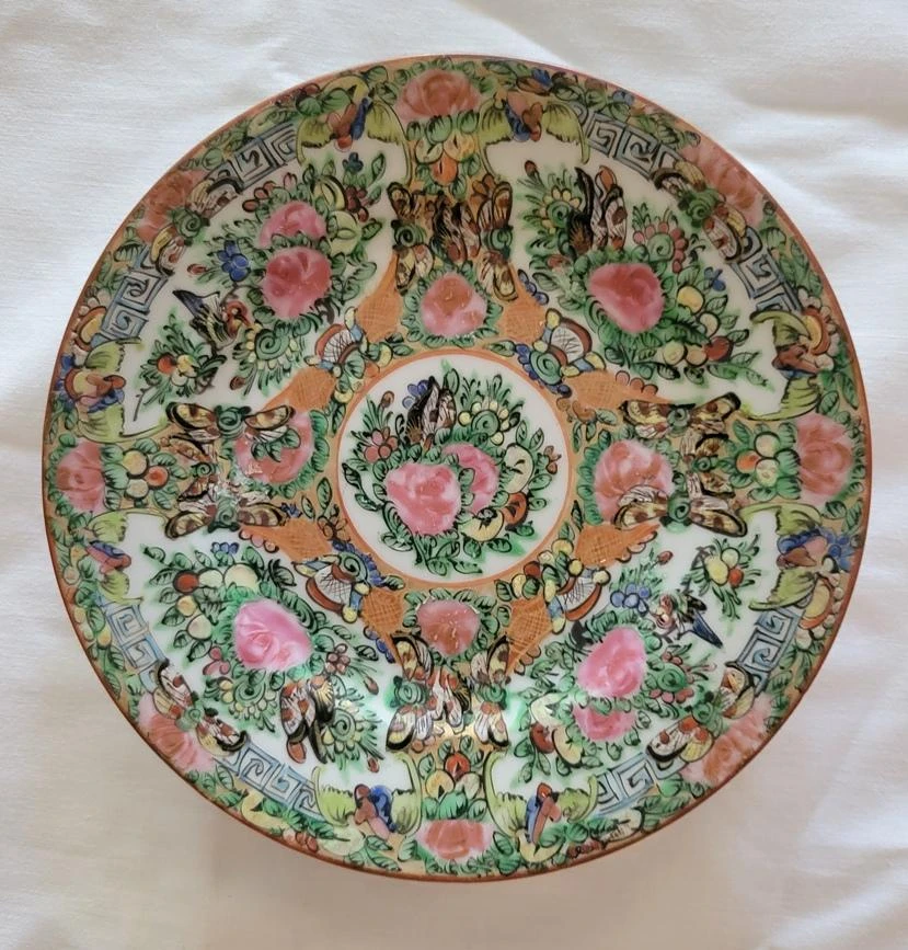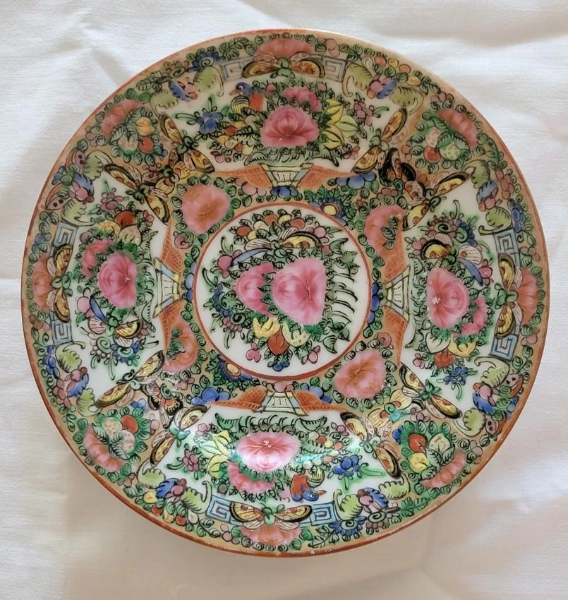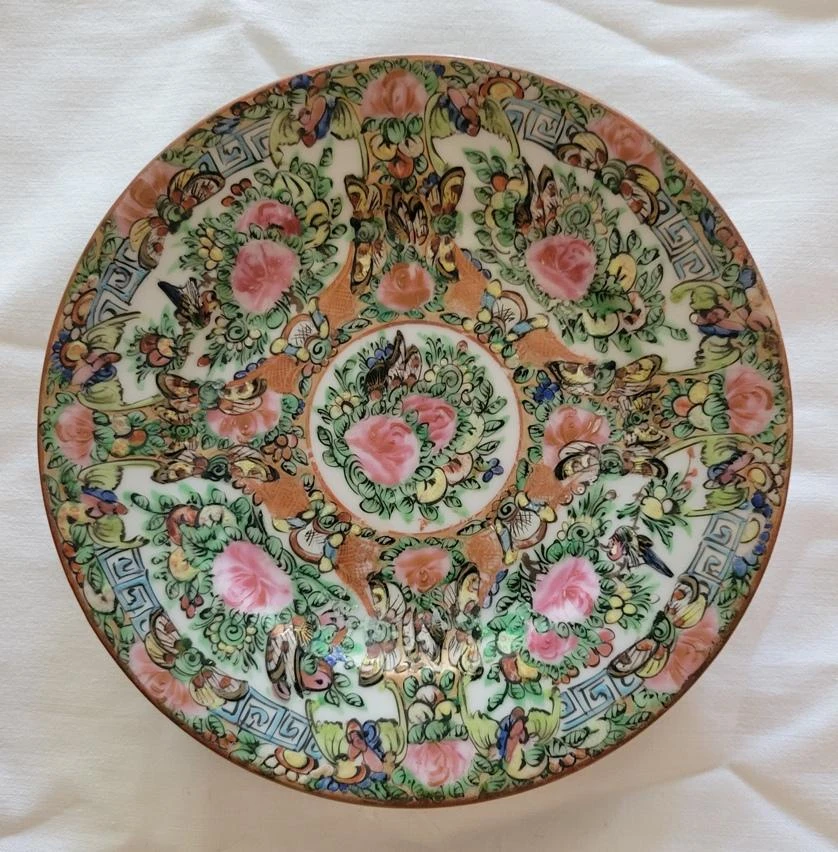Early 20th century Chinese export rose medallion porcelain plates with butterflies. They measure 6″ diameter. and are all in excellent antique condition. These are priced separately.