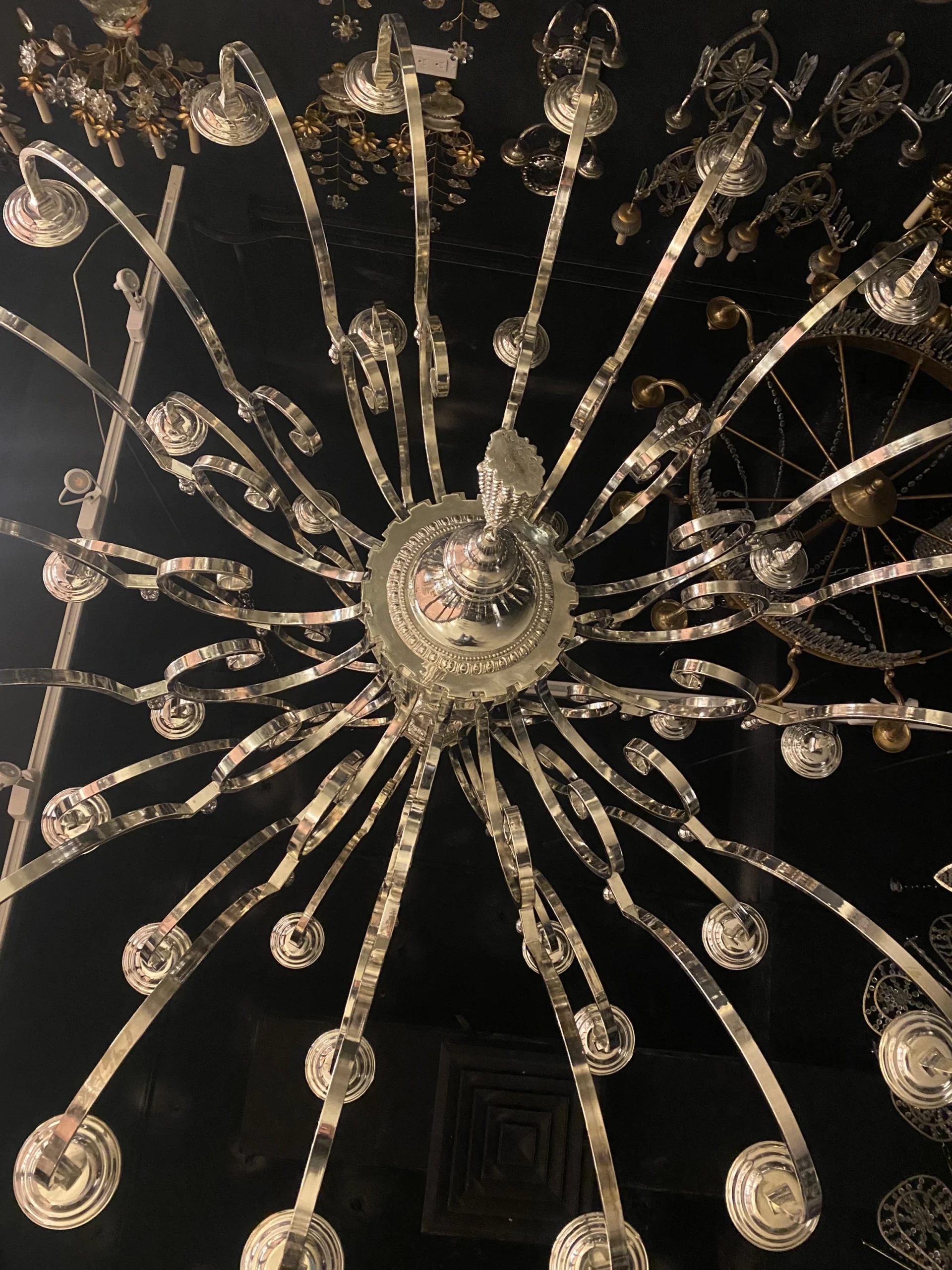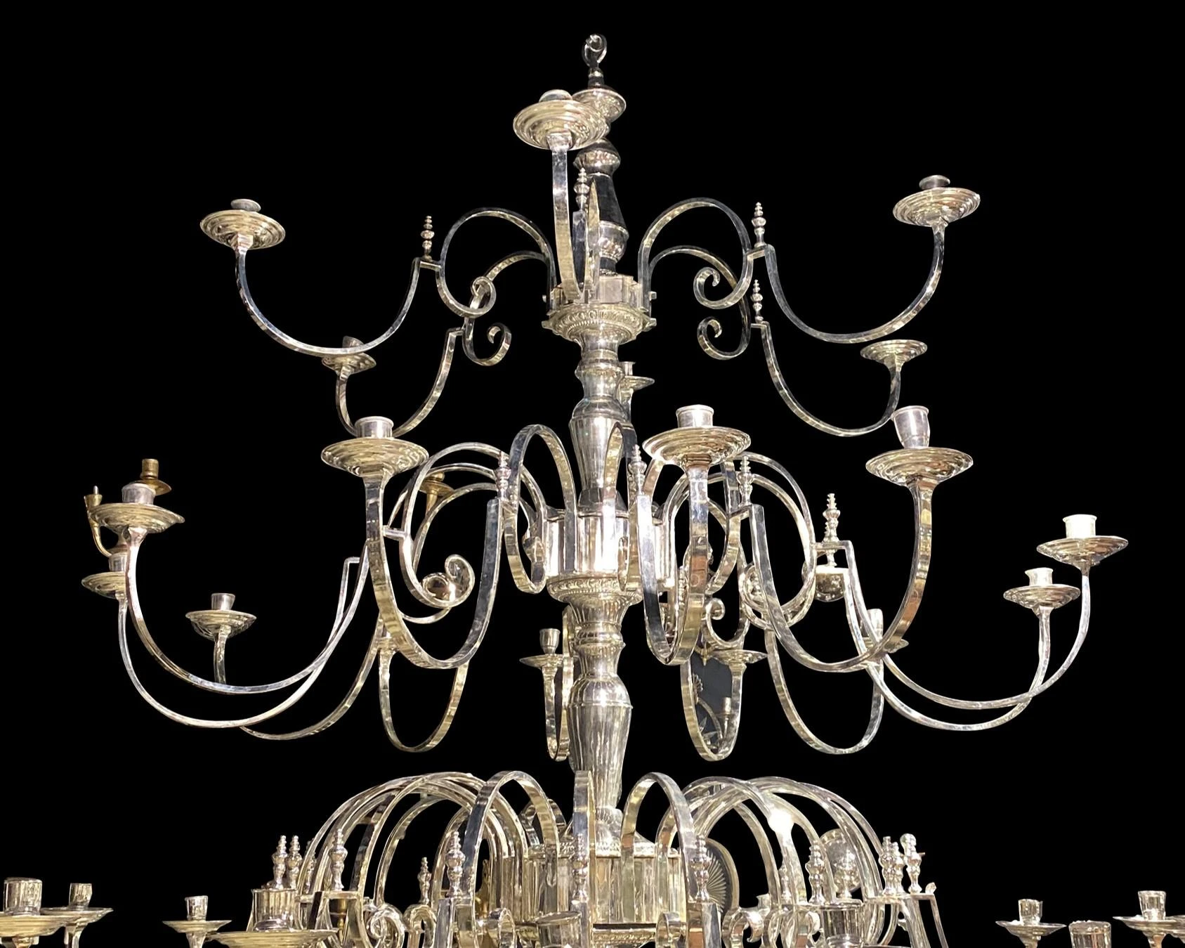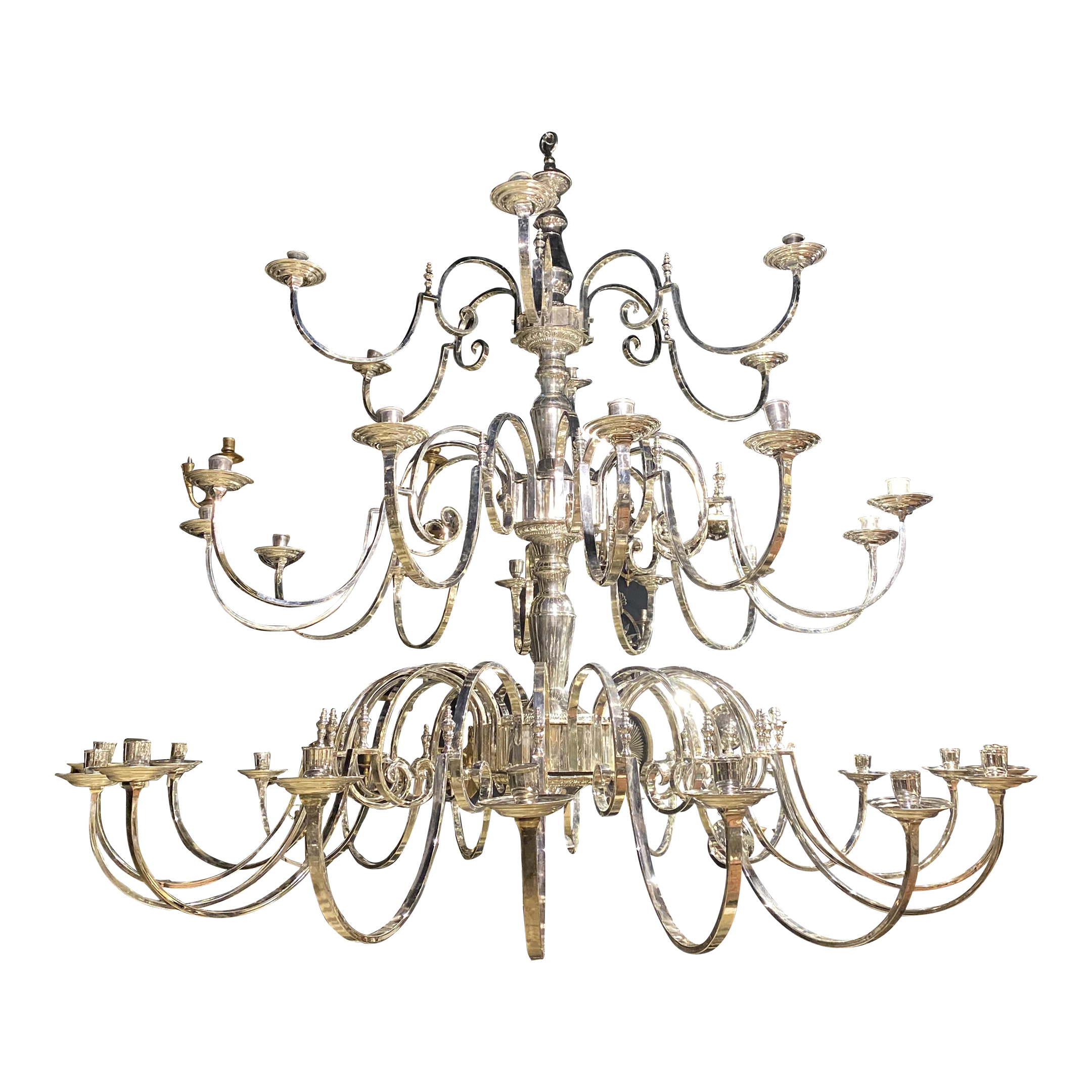 A circa 1930’s English silver plated 36 lights chandelier unusual size and design