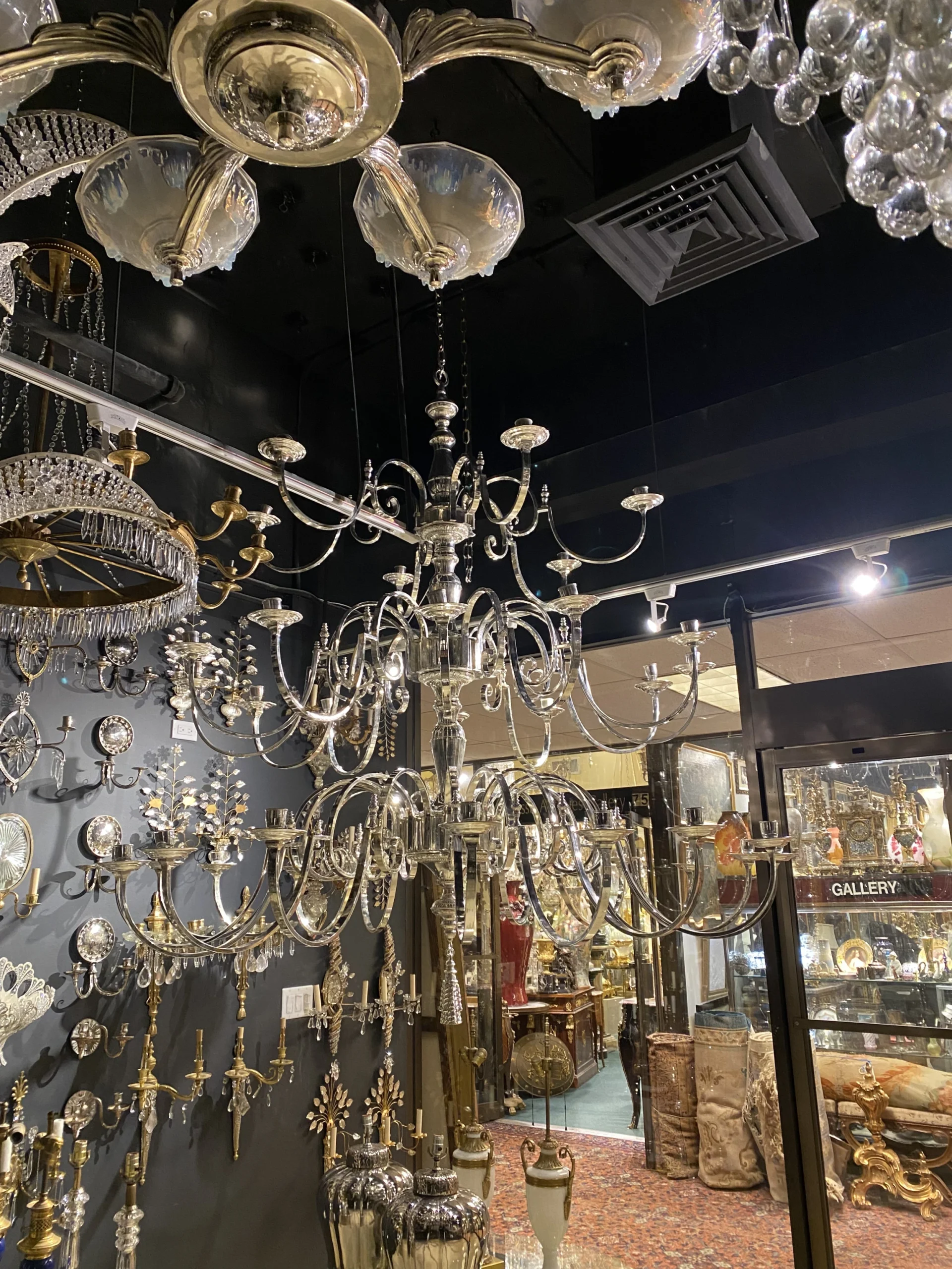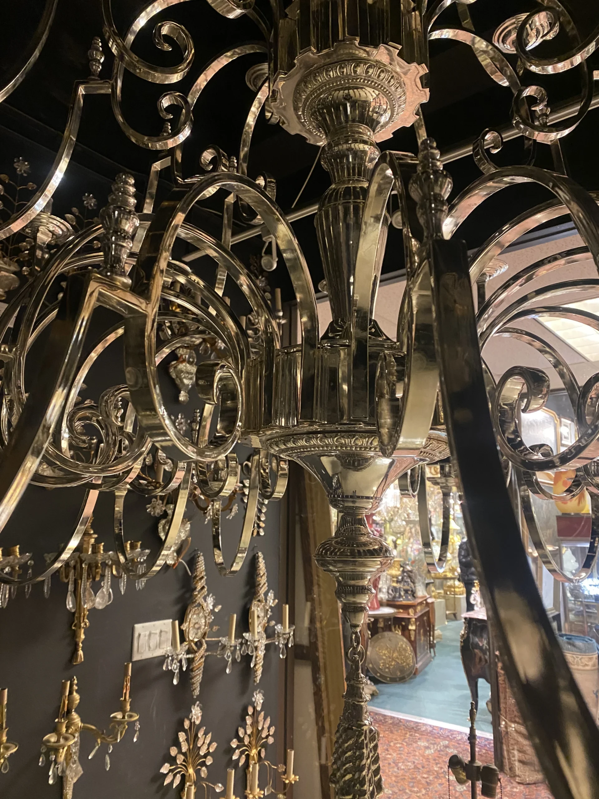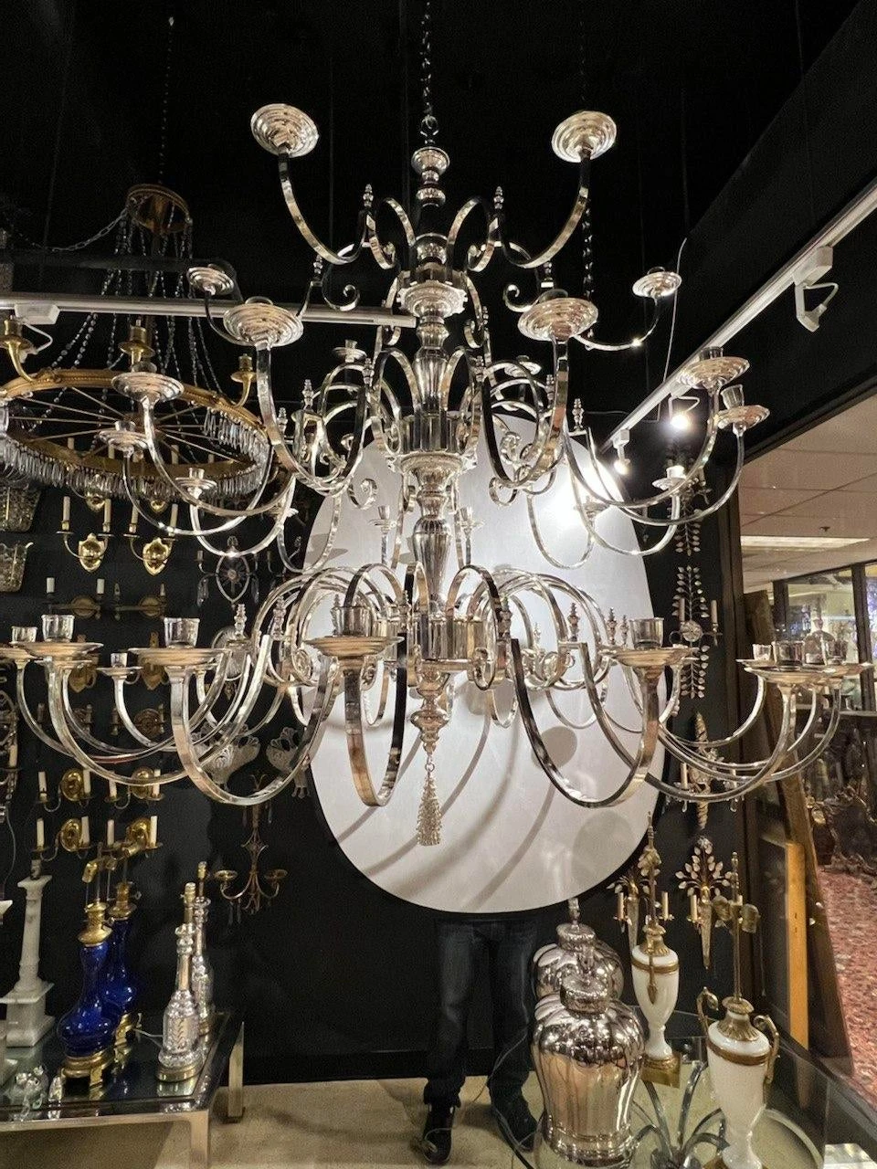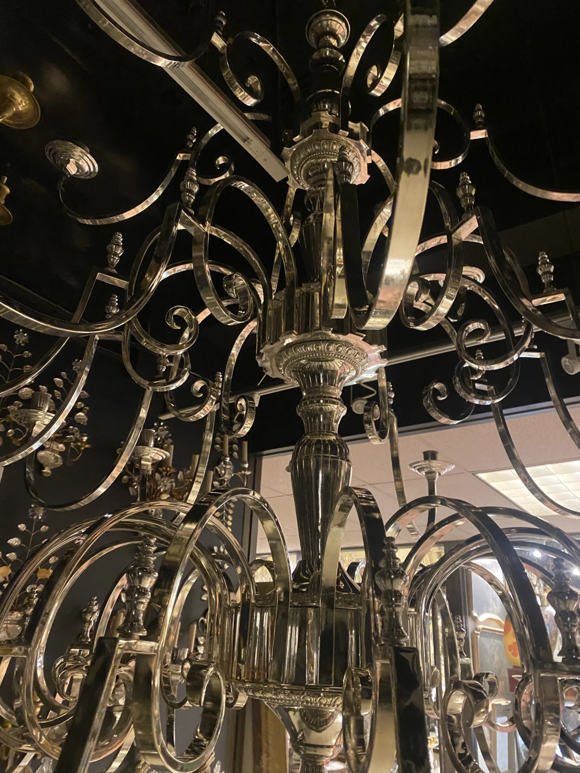 A circa 1930’s English silver plated 36 lights chandelier unusual size and design