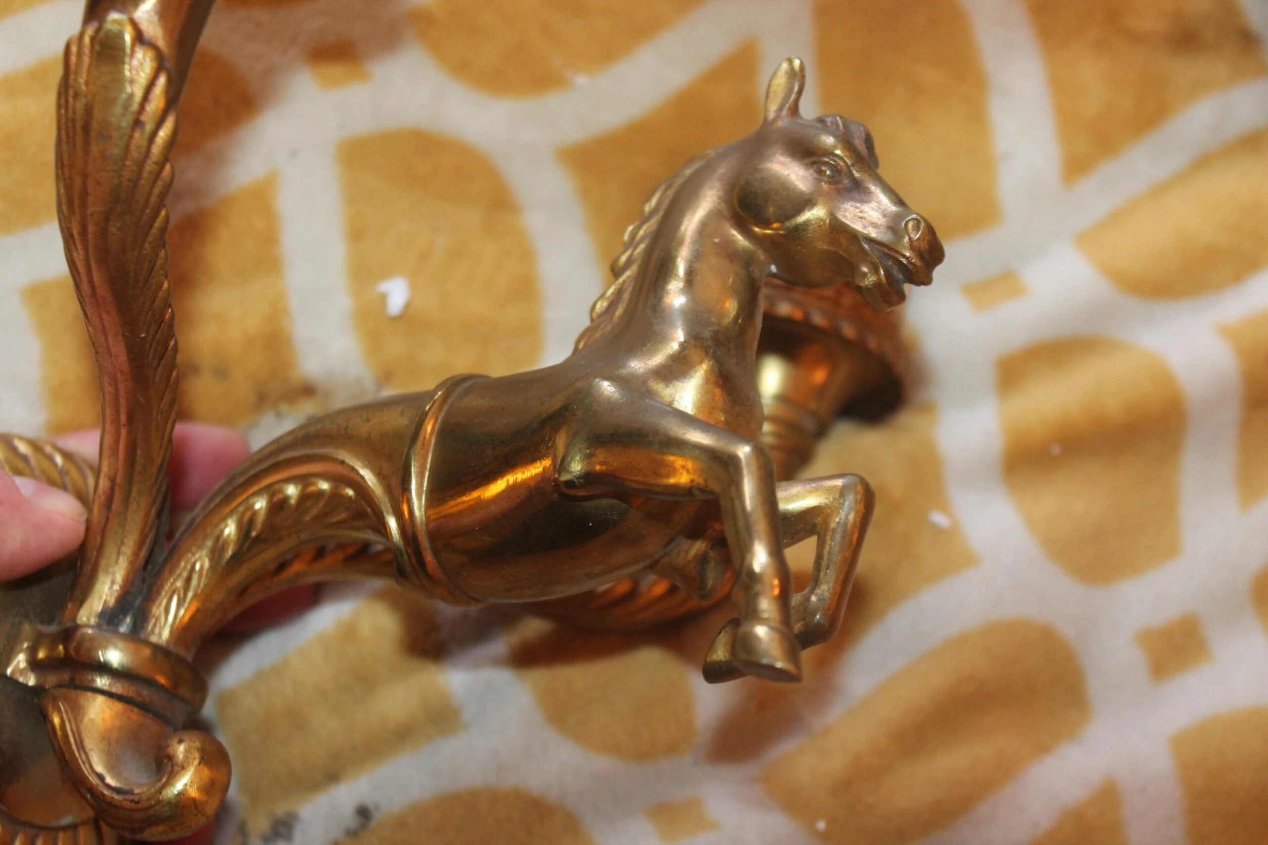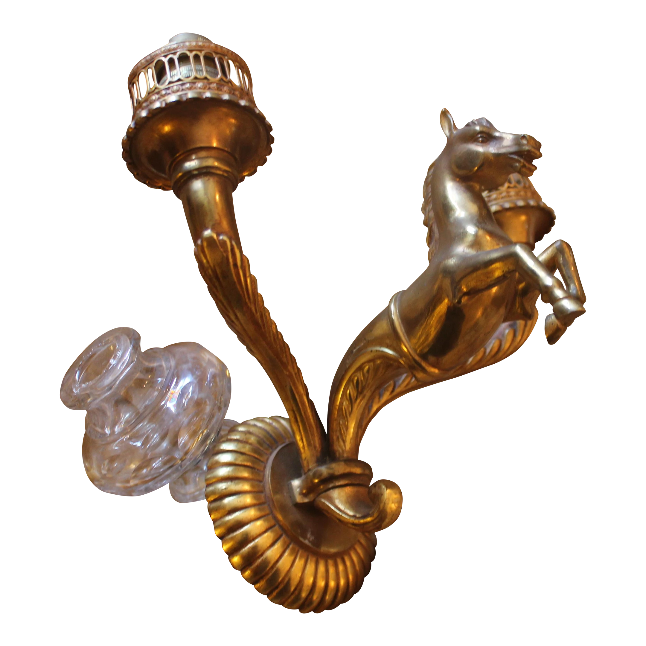 1930’s French Art Deco Gilt Bronze “Equine” Galloping Horse Figural Wall Sconce. Attributed to Maison Jansen. Heavy and beautifully detailed.