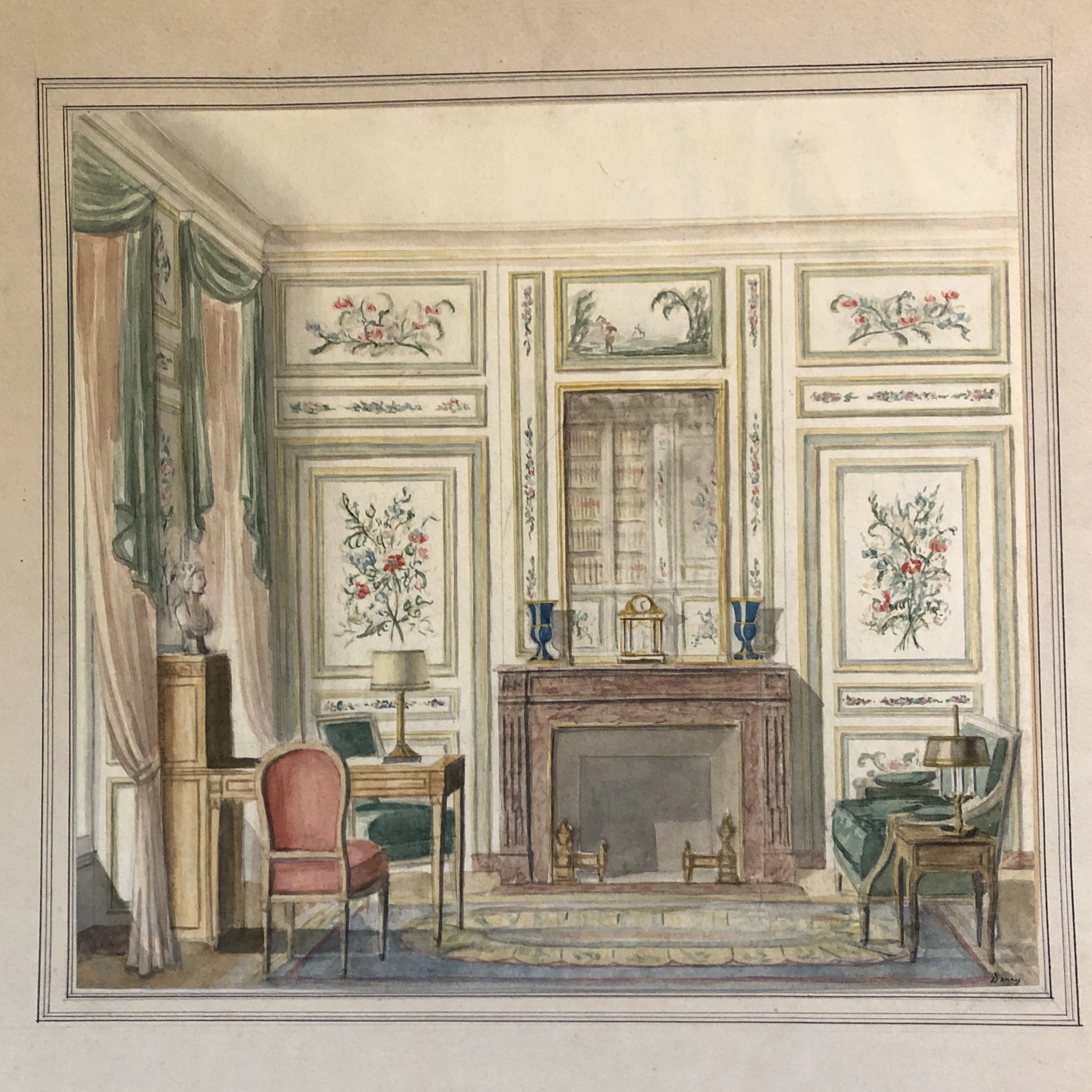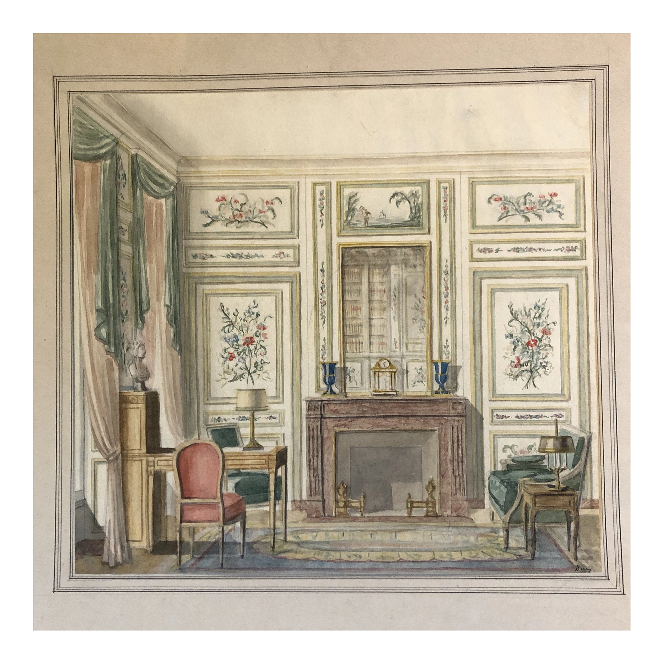 Original watercolor painting on paper signed bottom right 9.5 x 10.5 laid down on border paper (edges have some damage that would be covered by framing unframed