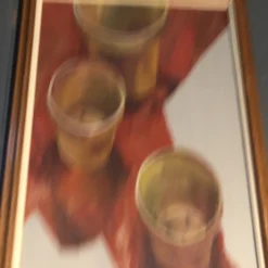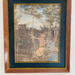 Please see all the photos for further clarification on condition and feel free to ask any questions that aren’t answered here. Vintage items have been previously owned and loved, and will show some level of wear consistent with this prior use. The original frame has some separation where the corners meet and natural wear, that has happened over time. There are small areas of wear on the canvas. There is a wire across the back, so this piece is ready to be displayed. The photos serve as an additional description.