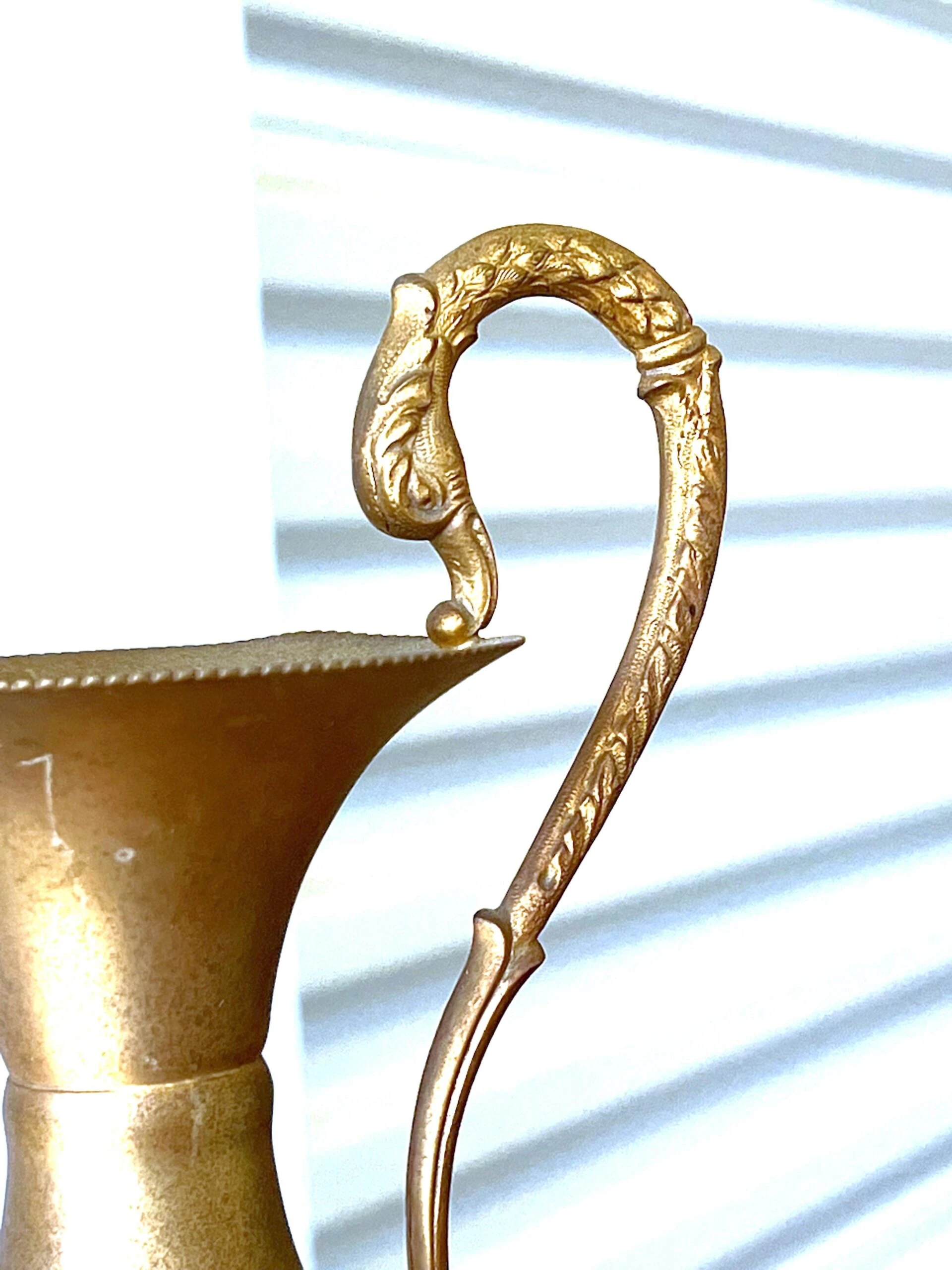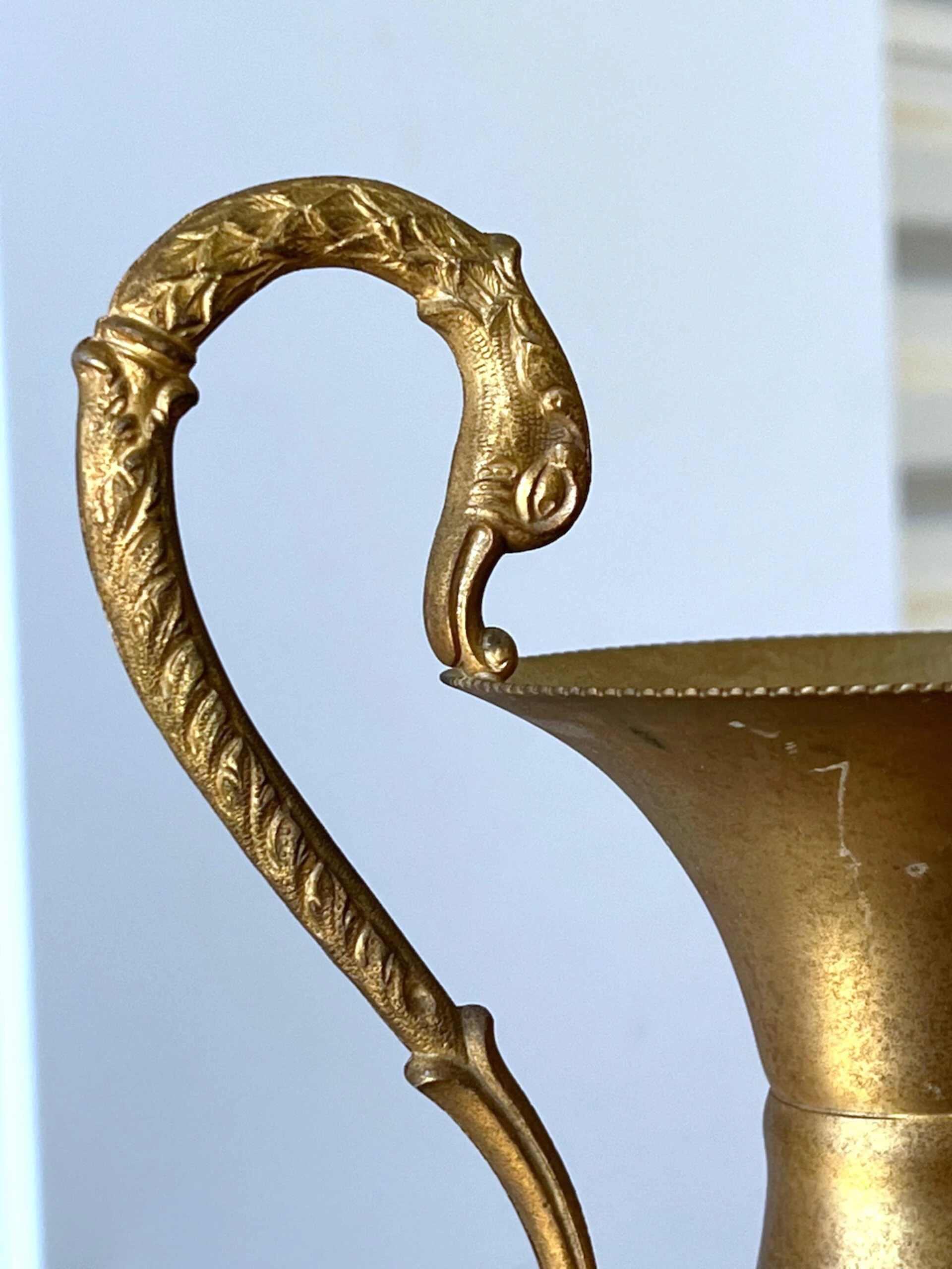 For sale I have this elegant double handle urn vase. This vase, made in Italy, features ornate brass sculpted double …
