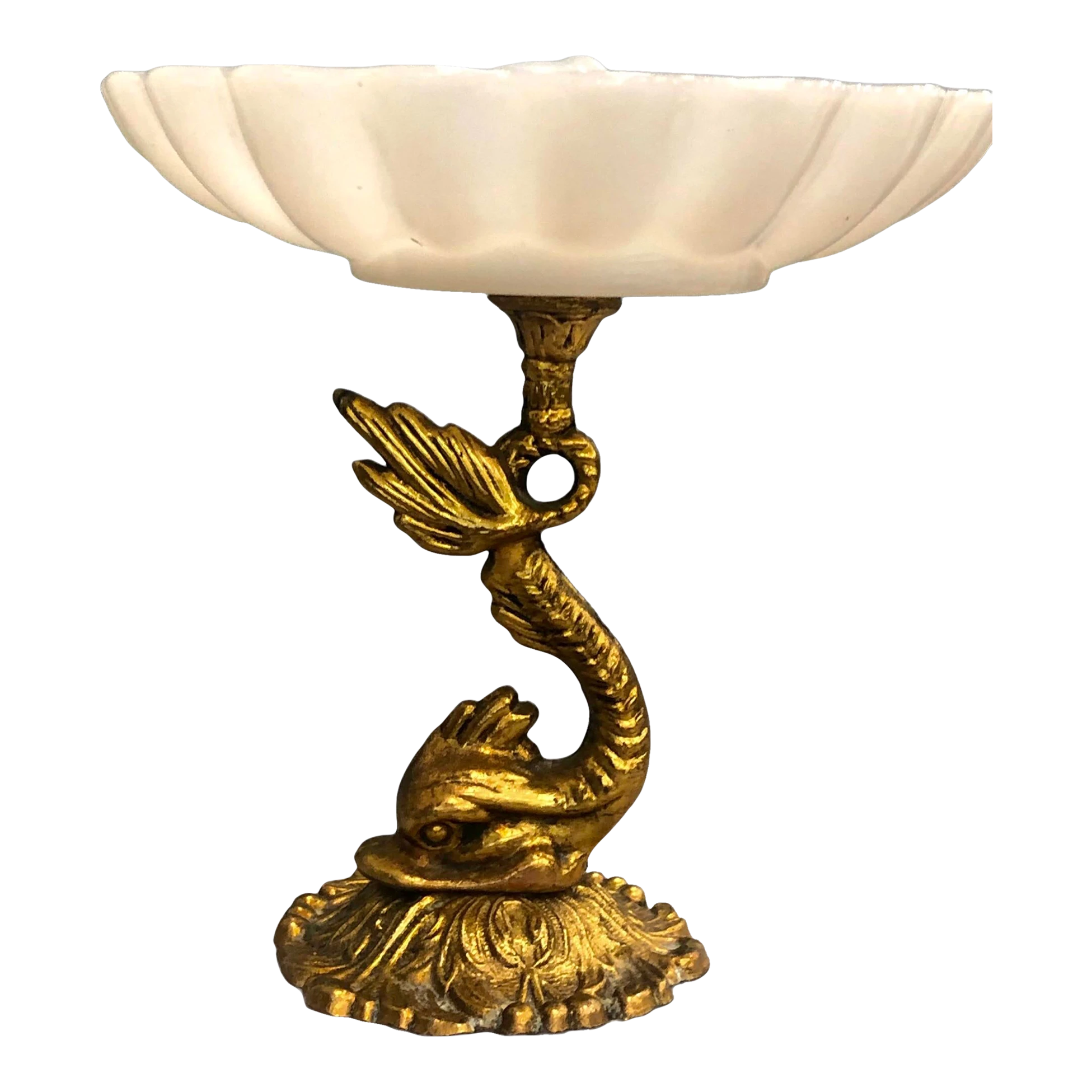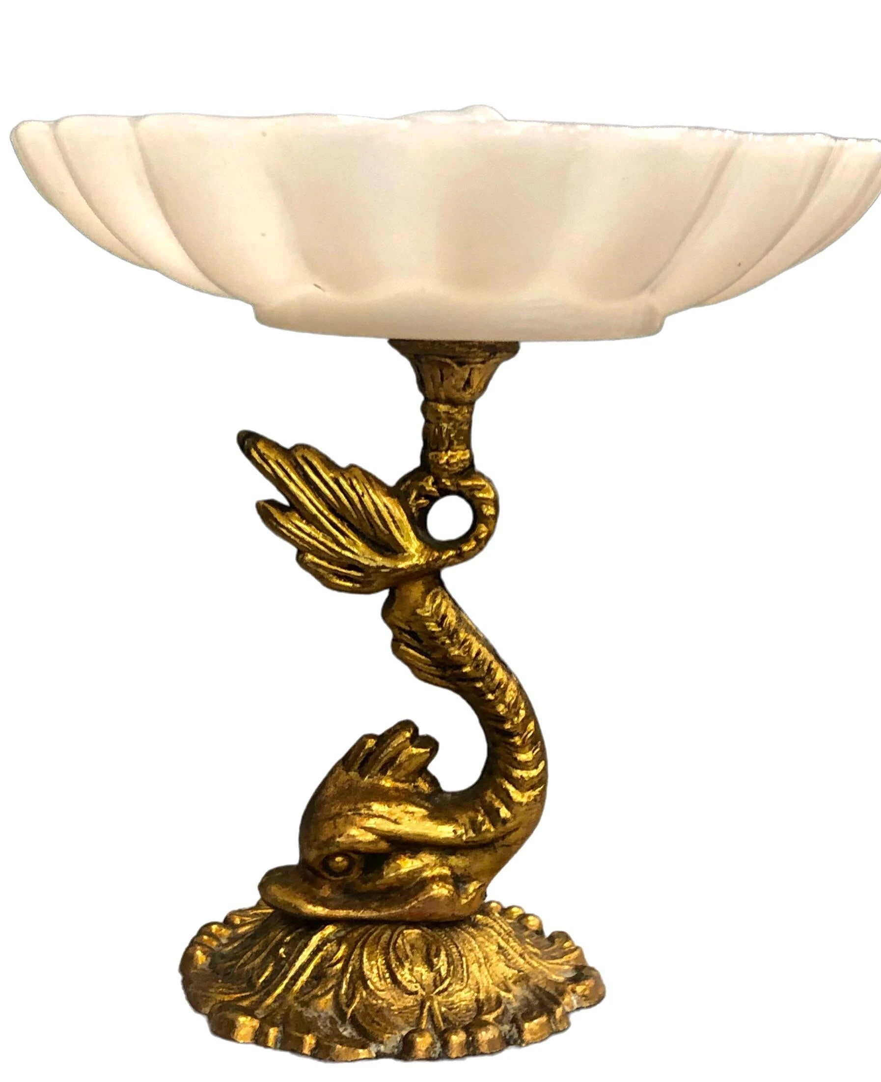 1950’s Art Deco Brass Koi Fish Marble Milk Glass Pedestal Tray. Heavy marble base and milk glass dish on top. …