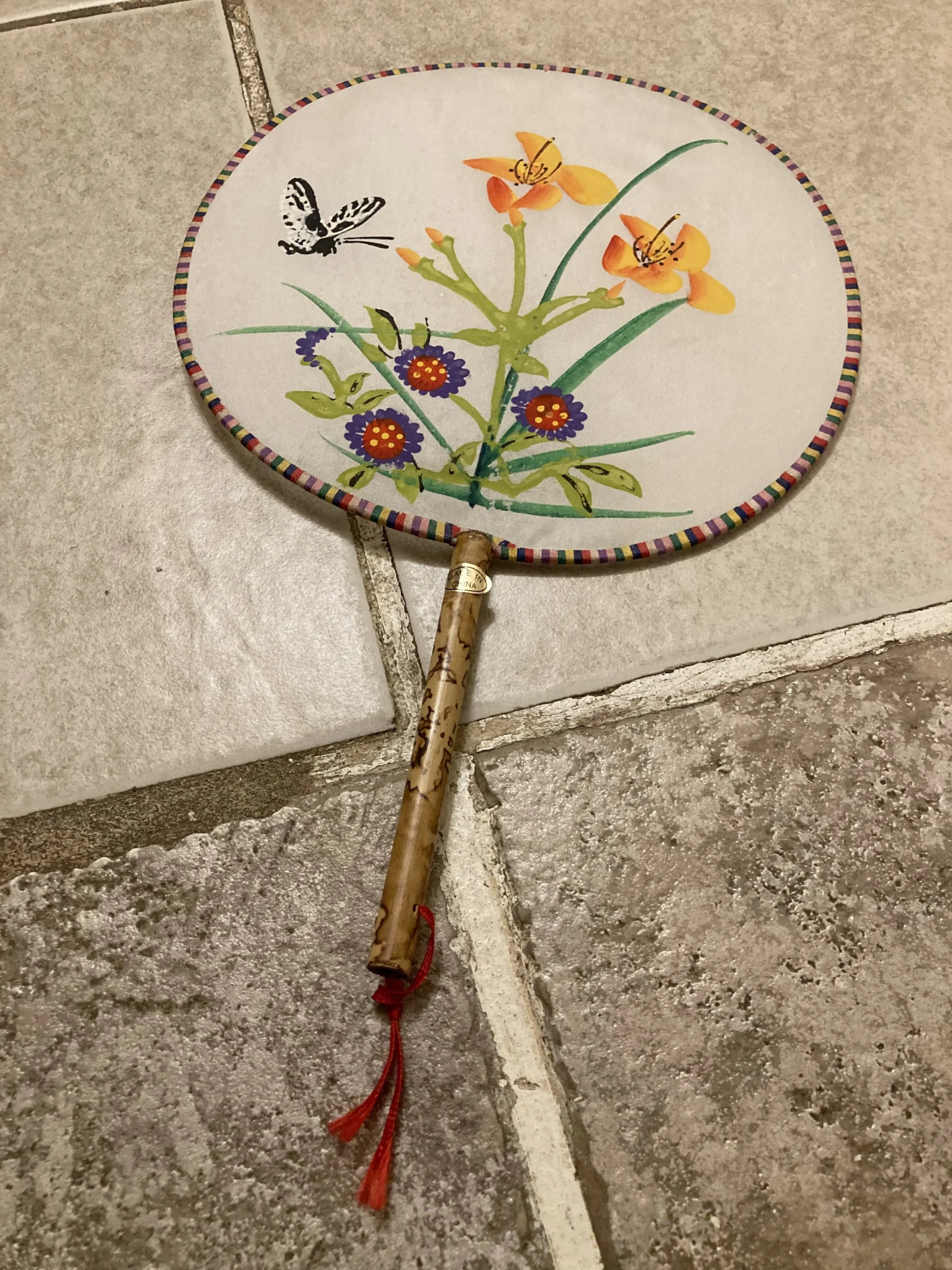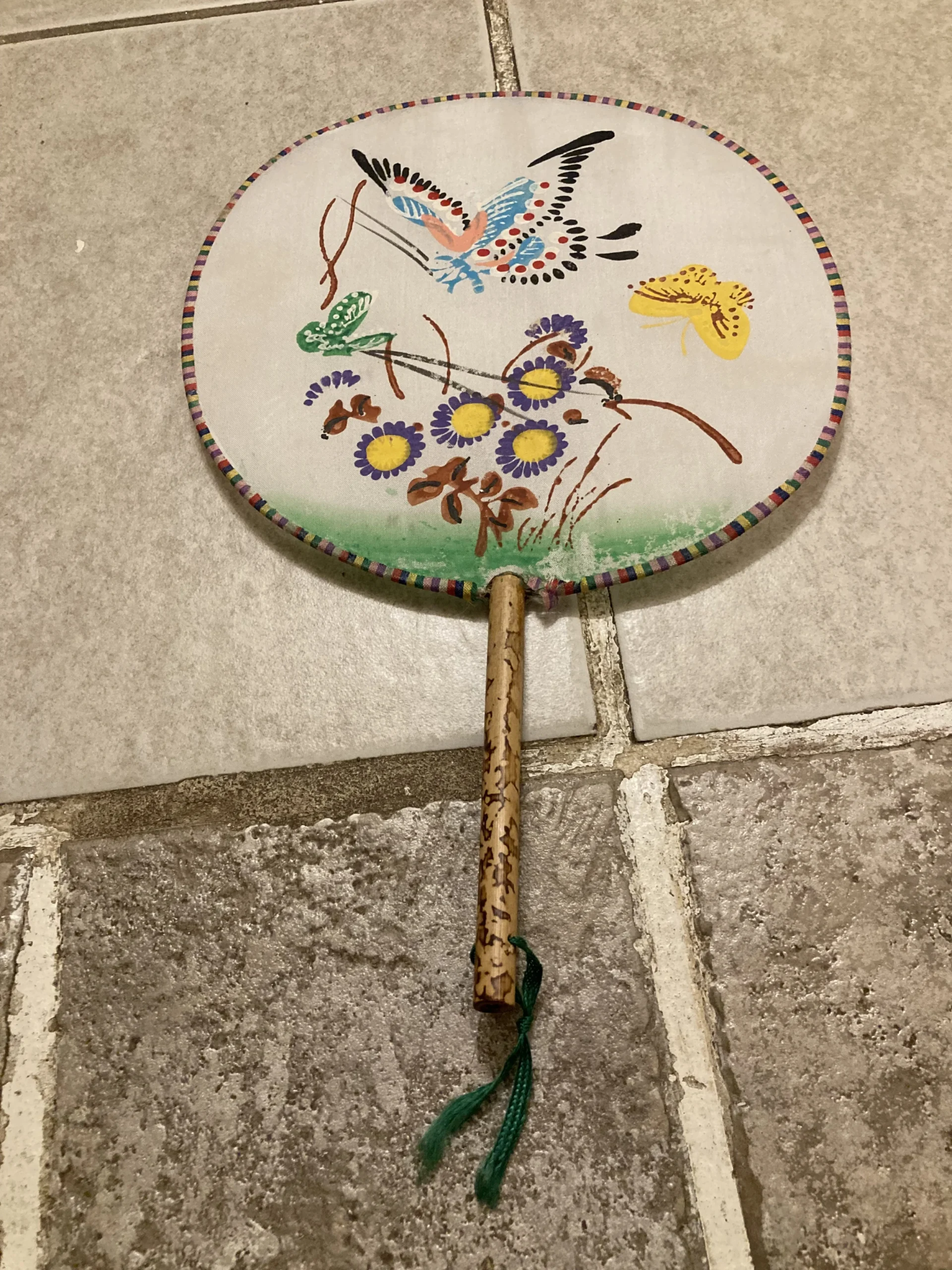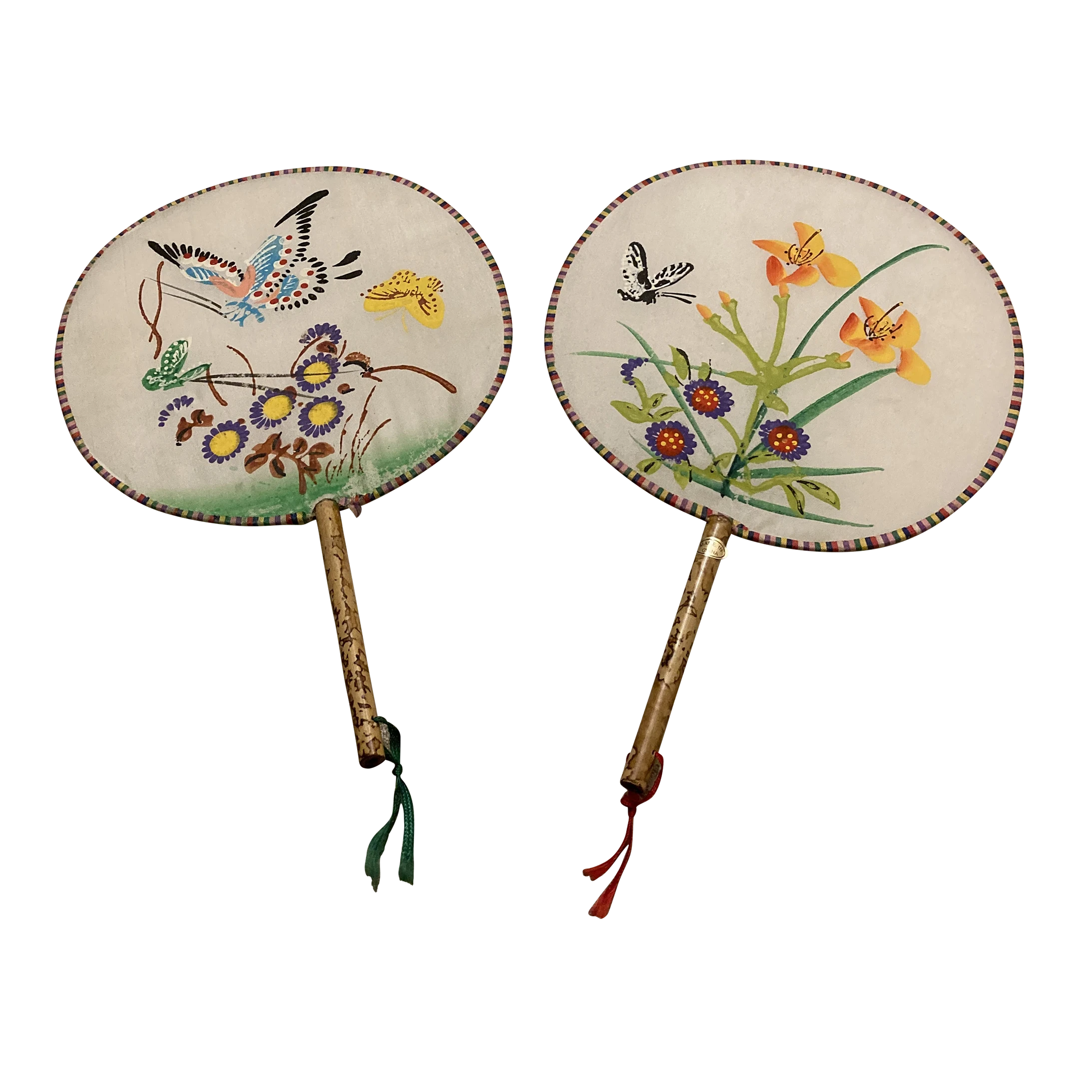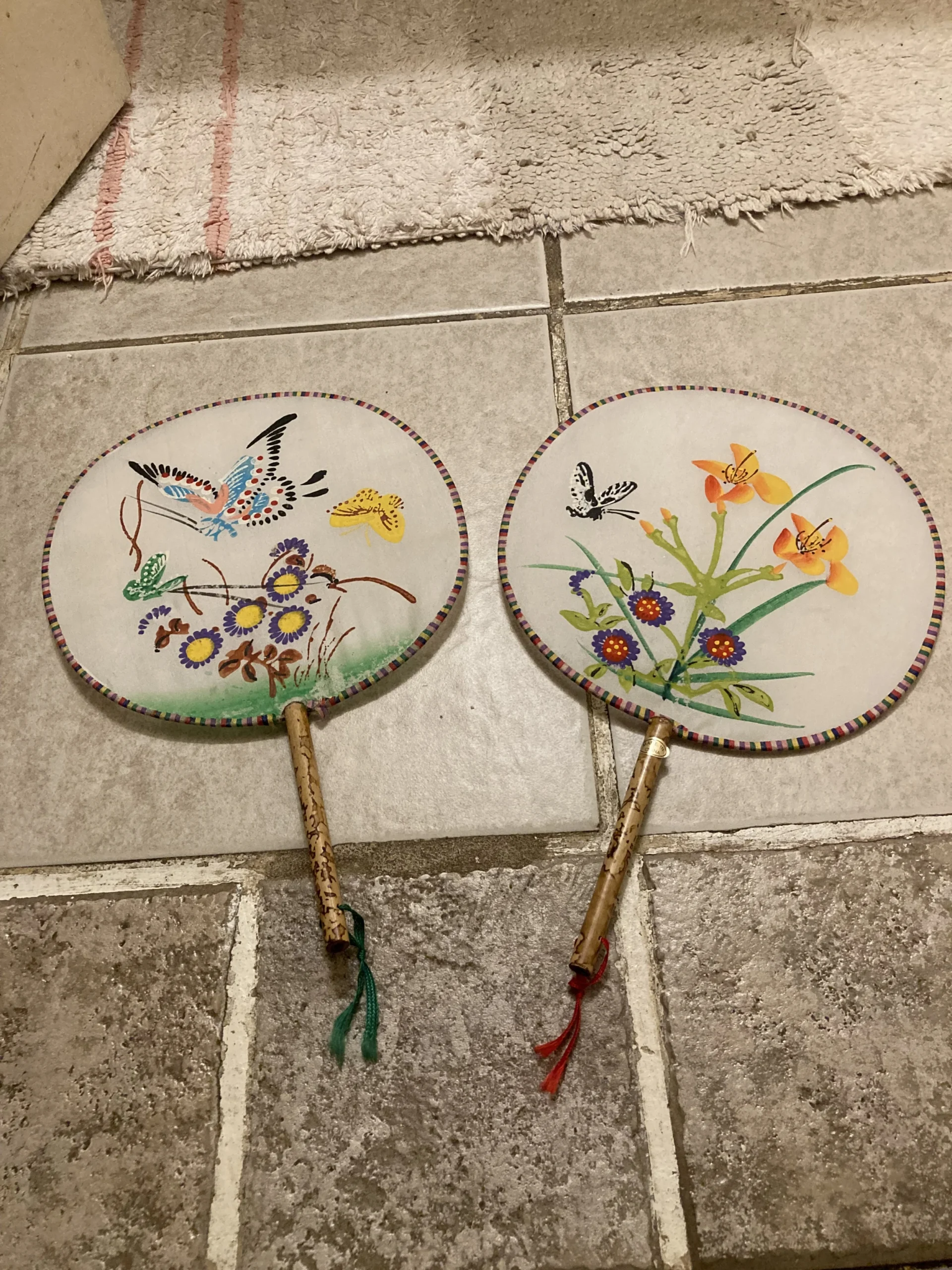 Hand painted Chinese silk fans from 1950’s with bamboo