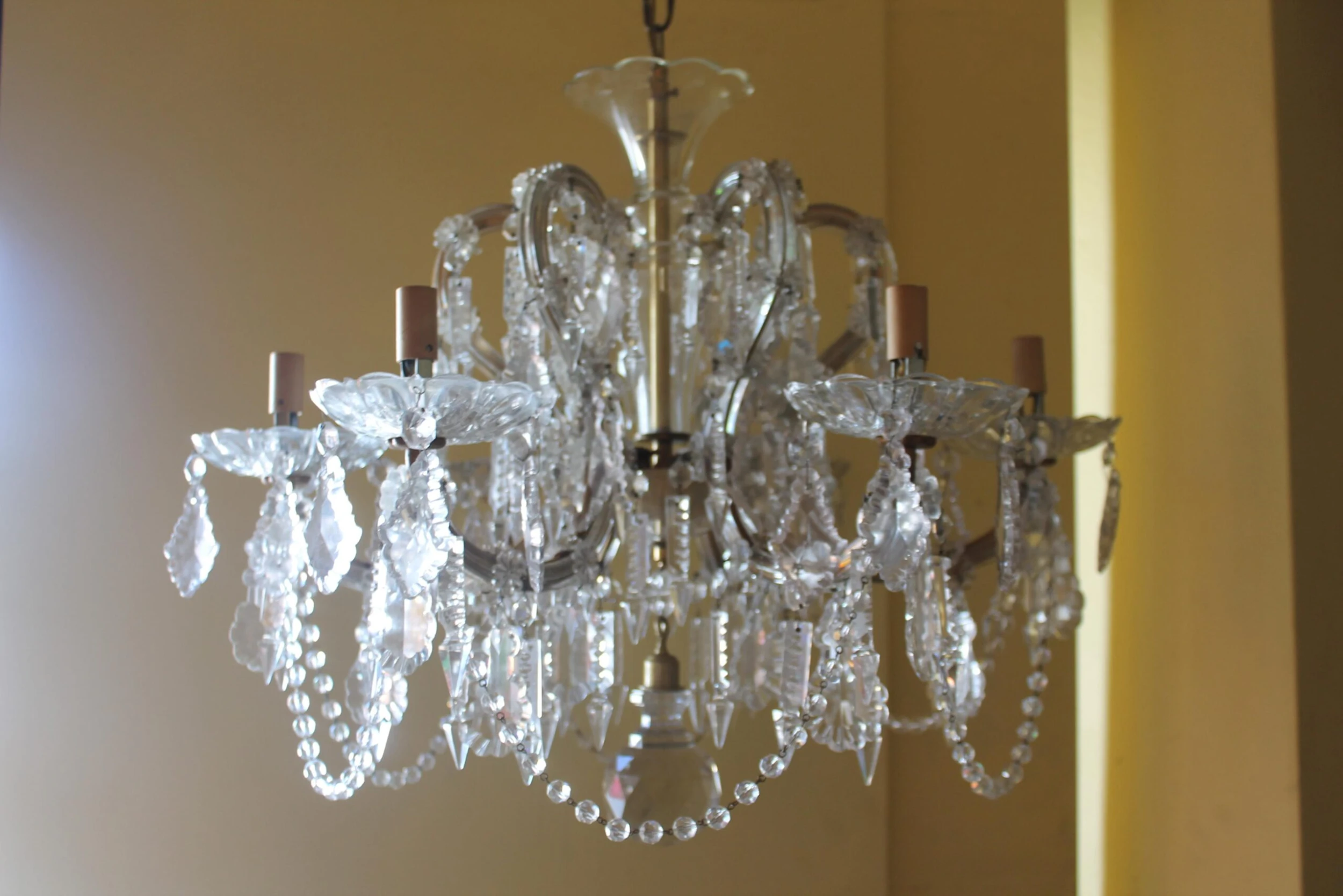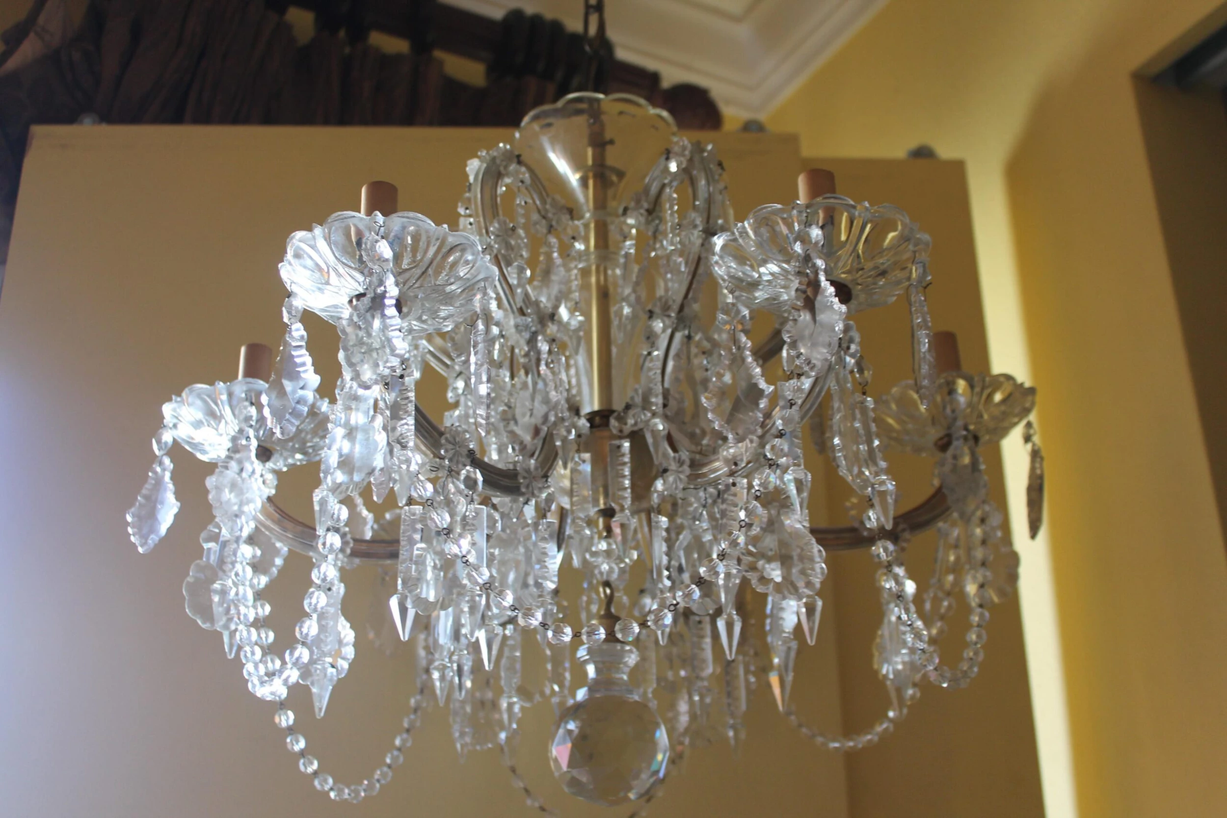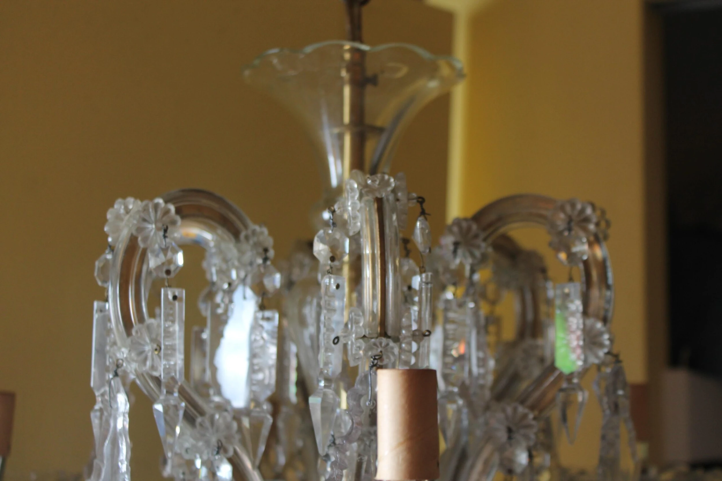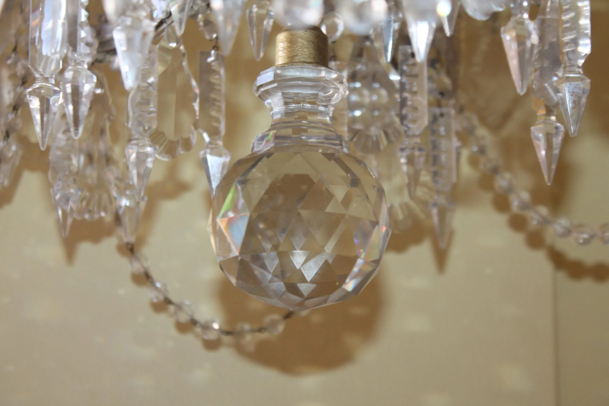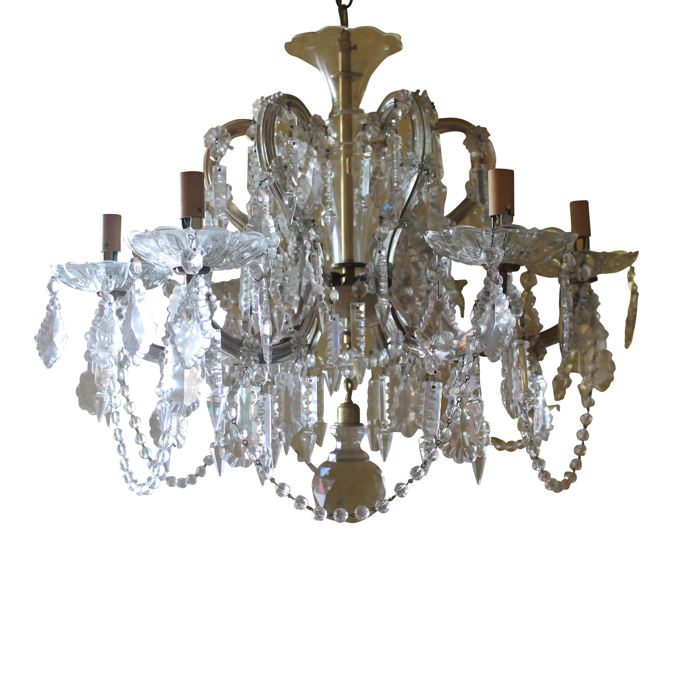 Fabulous 1950’s Italian Regency Crystal Crown Form Maria Therese Chandelier. Loaded with cut crystal. This showpiece is in very fine condition and ready to hang in your amazing interior.