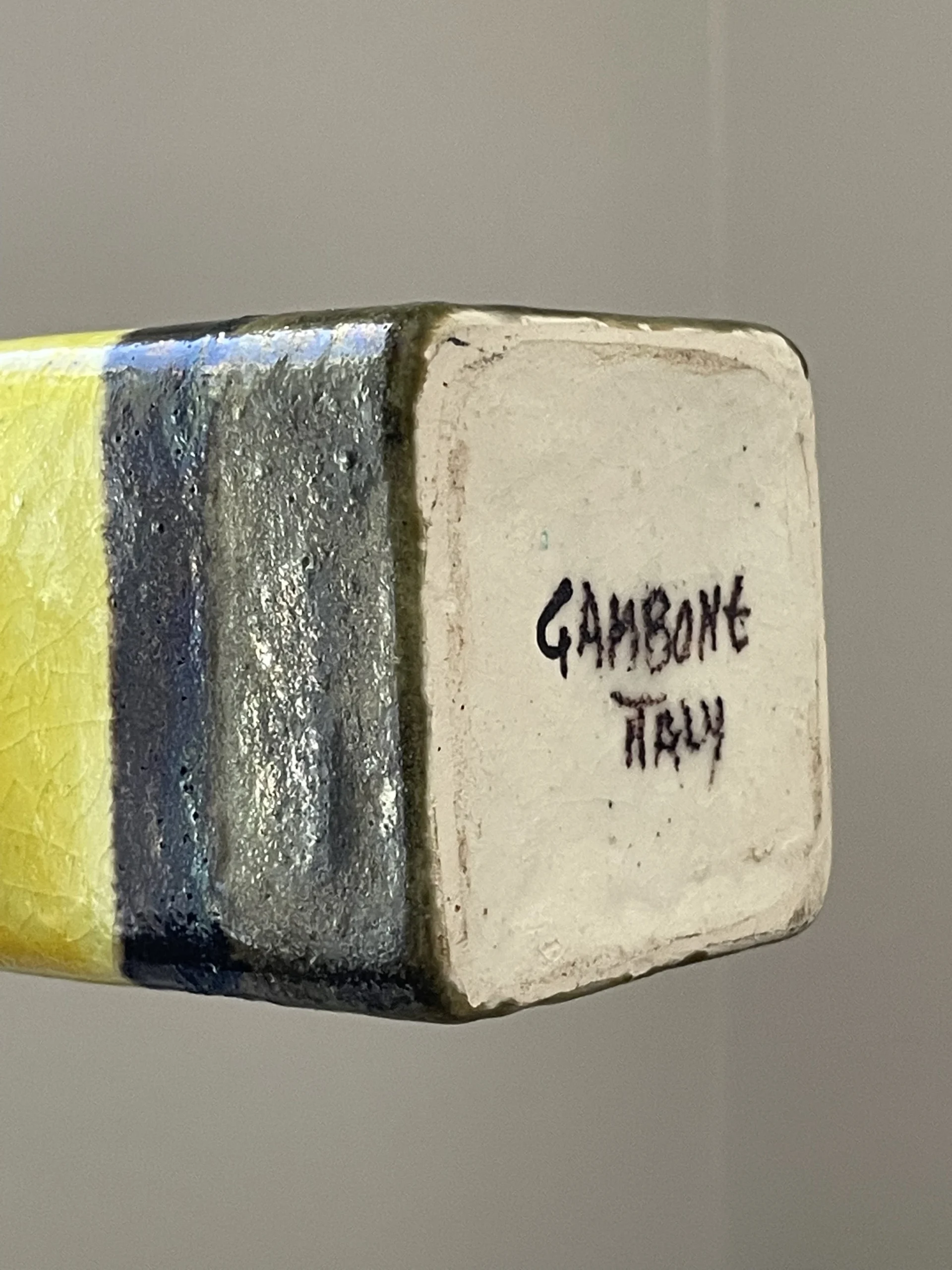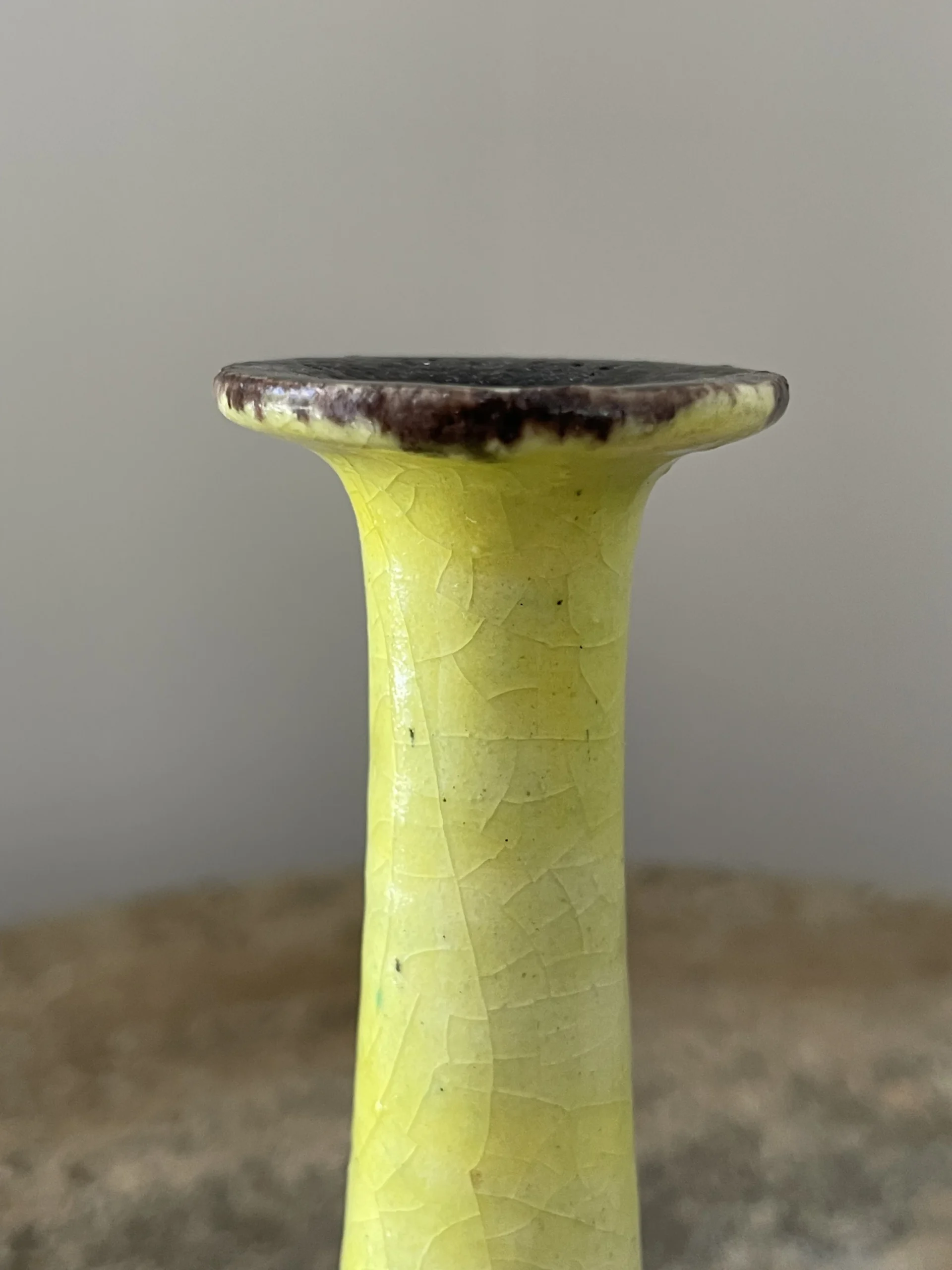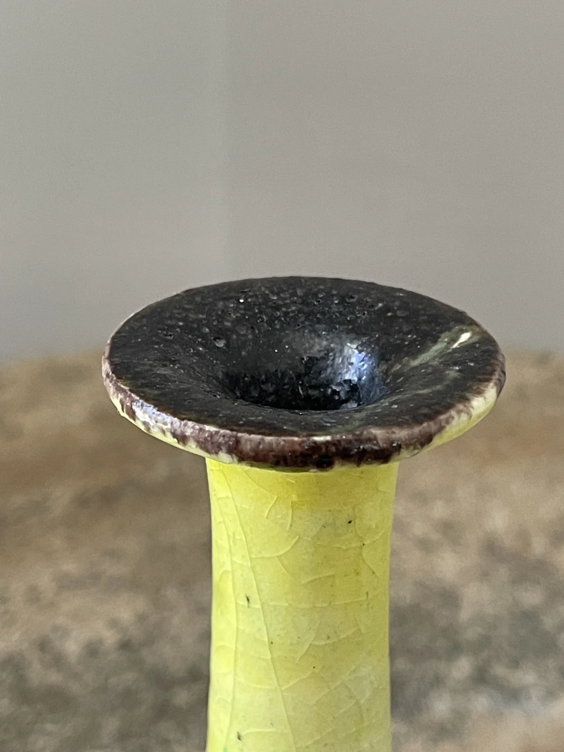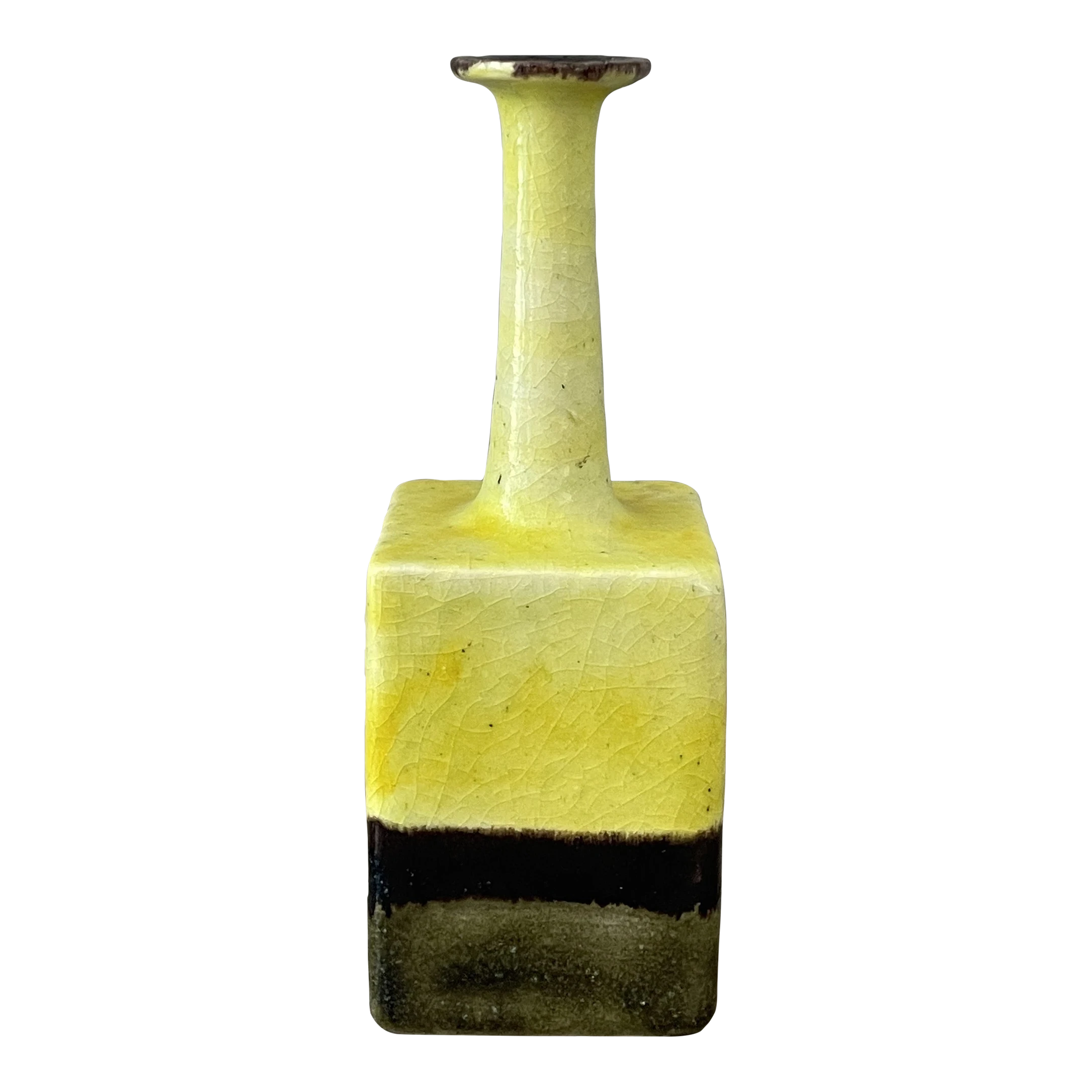 An unusual vase designed by Bruno Gambone. Features a vibrant yellow color which is different from his typical use of …
