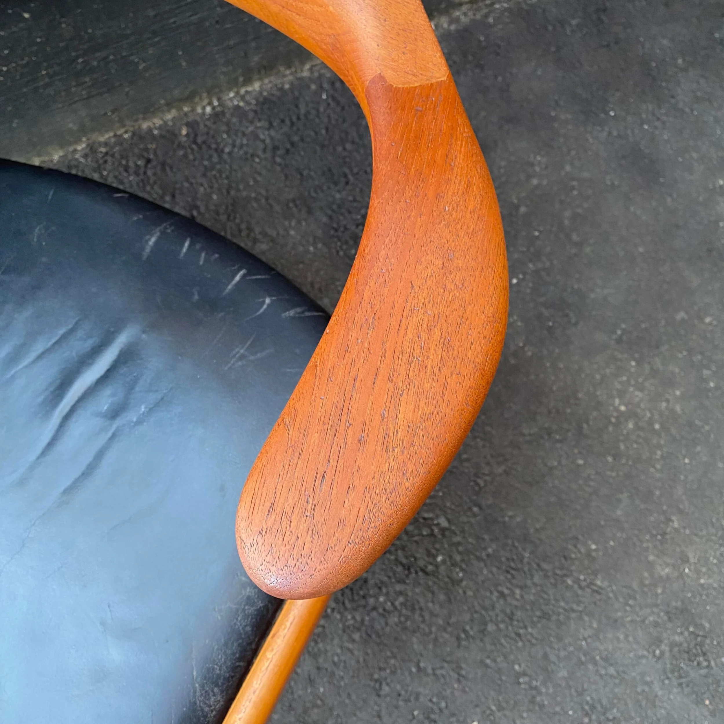 This is an excellent vintage 1960’s Danish Modern Teak with black leather Desk Armchair by Erik Kirkegaard for Høng Stolefabrik, …