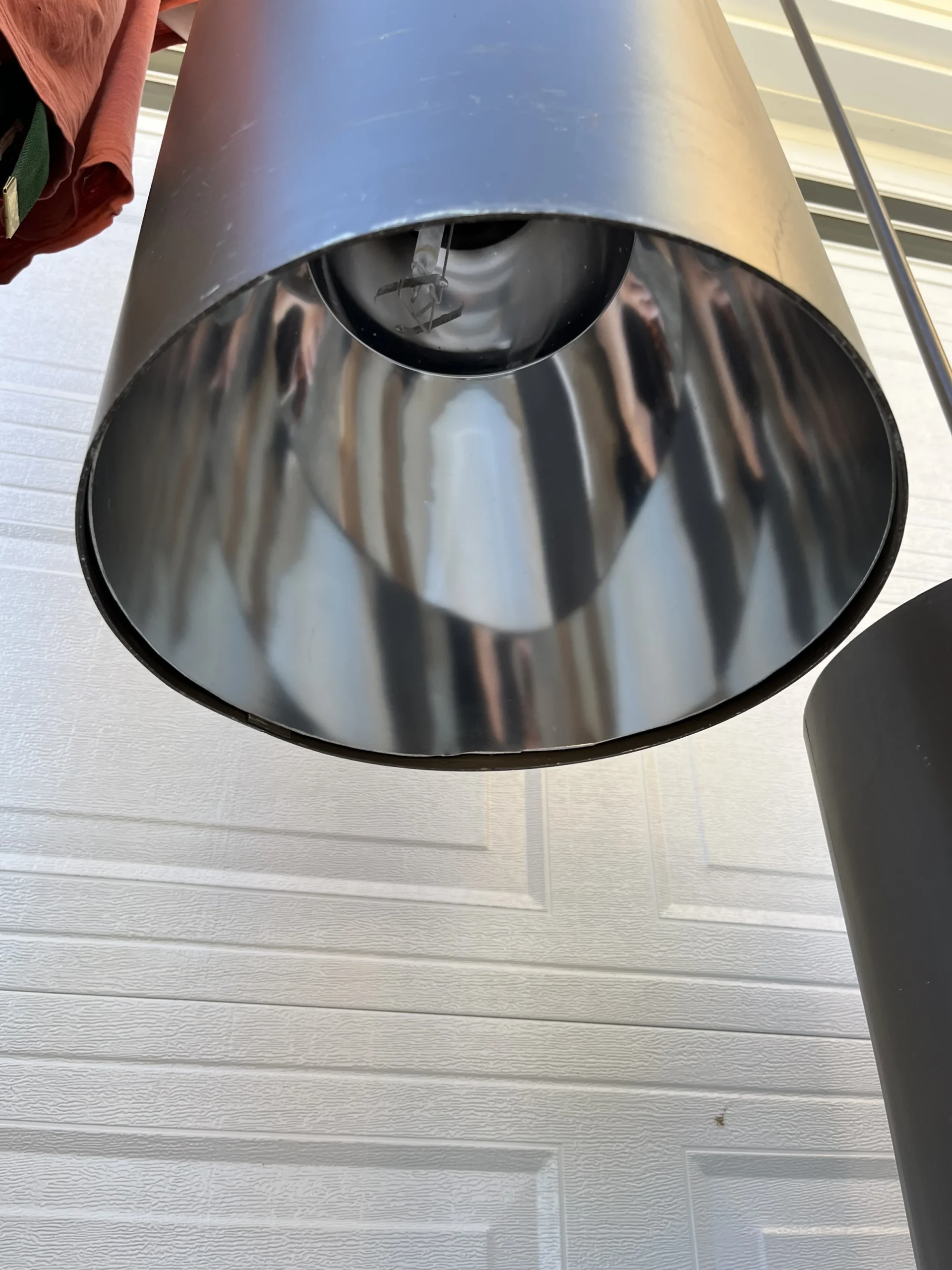 Gargantuan in scale these 1960’s minimalist pendants are made of brown metal with a reflective inside. The ceiling cap measures …