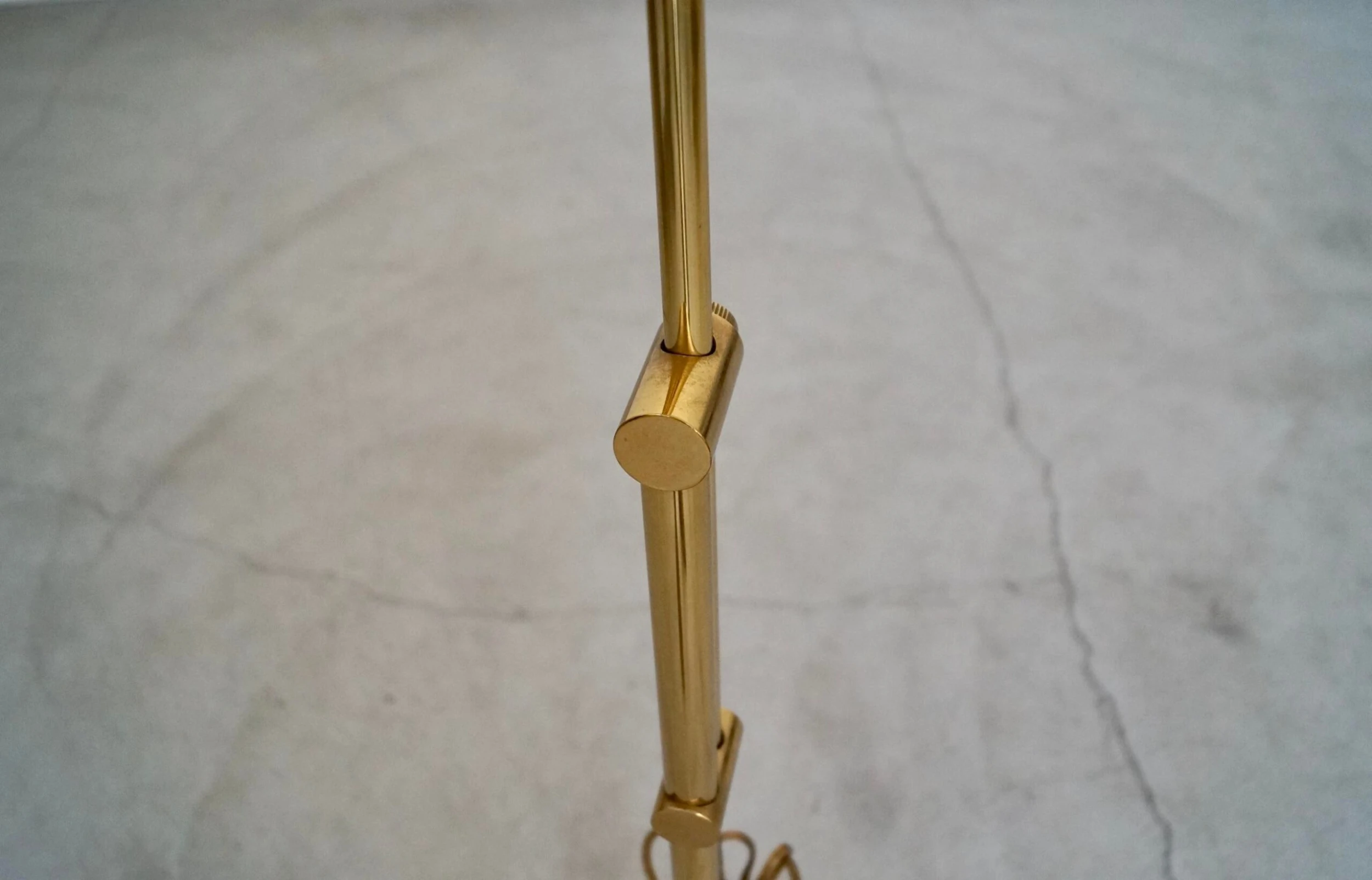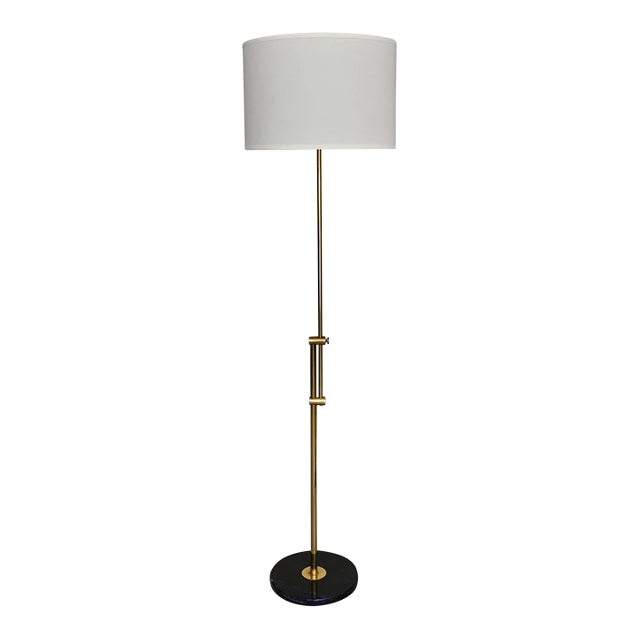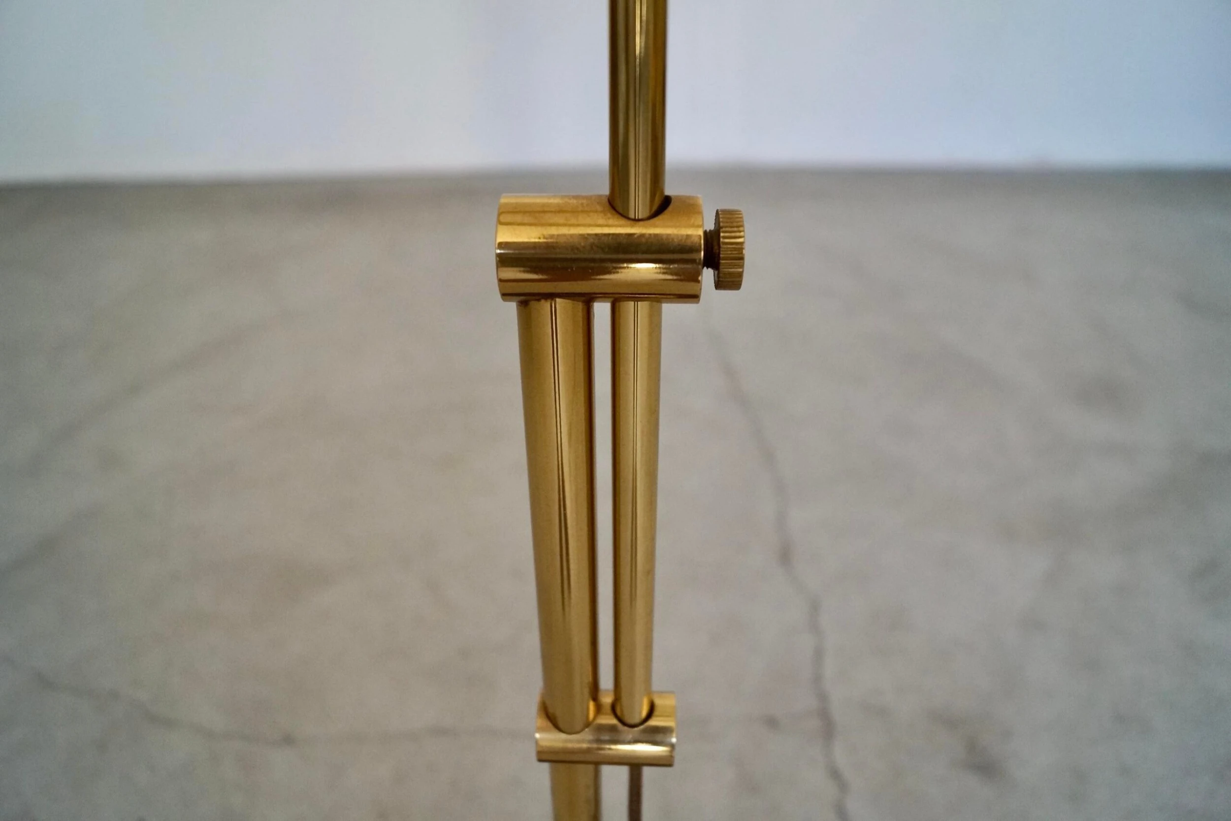 Vintage 1960’s Mid century Modern floor lamp for sale. It’s an incredible lamp with a solid marble base and brass poles and accents. The height is adjustable and the mechanism works smoothly. It’s really solid and well made, and in the manner of Robert Sonneman designs. The first image is the lamp at its’ tallest and the second image is of the lamp at its’ lowest point.