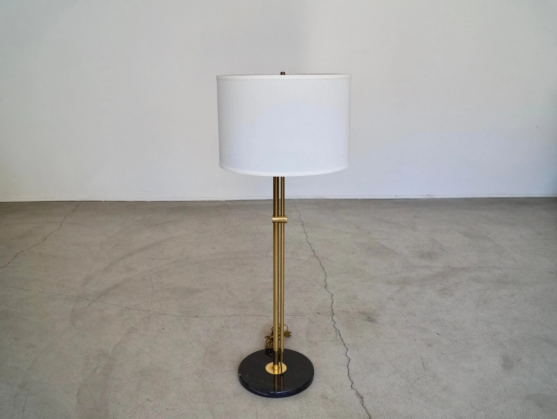 Vintage 1960’s Mid century Modern floor lamp for sale. It’s an incredible lamp with a solid marble base and brass …