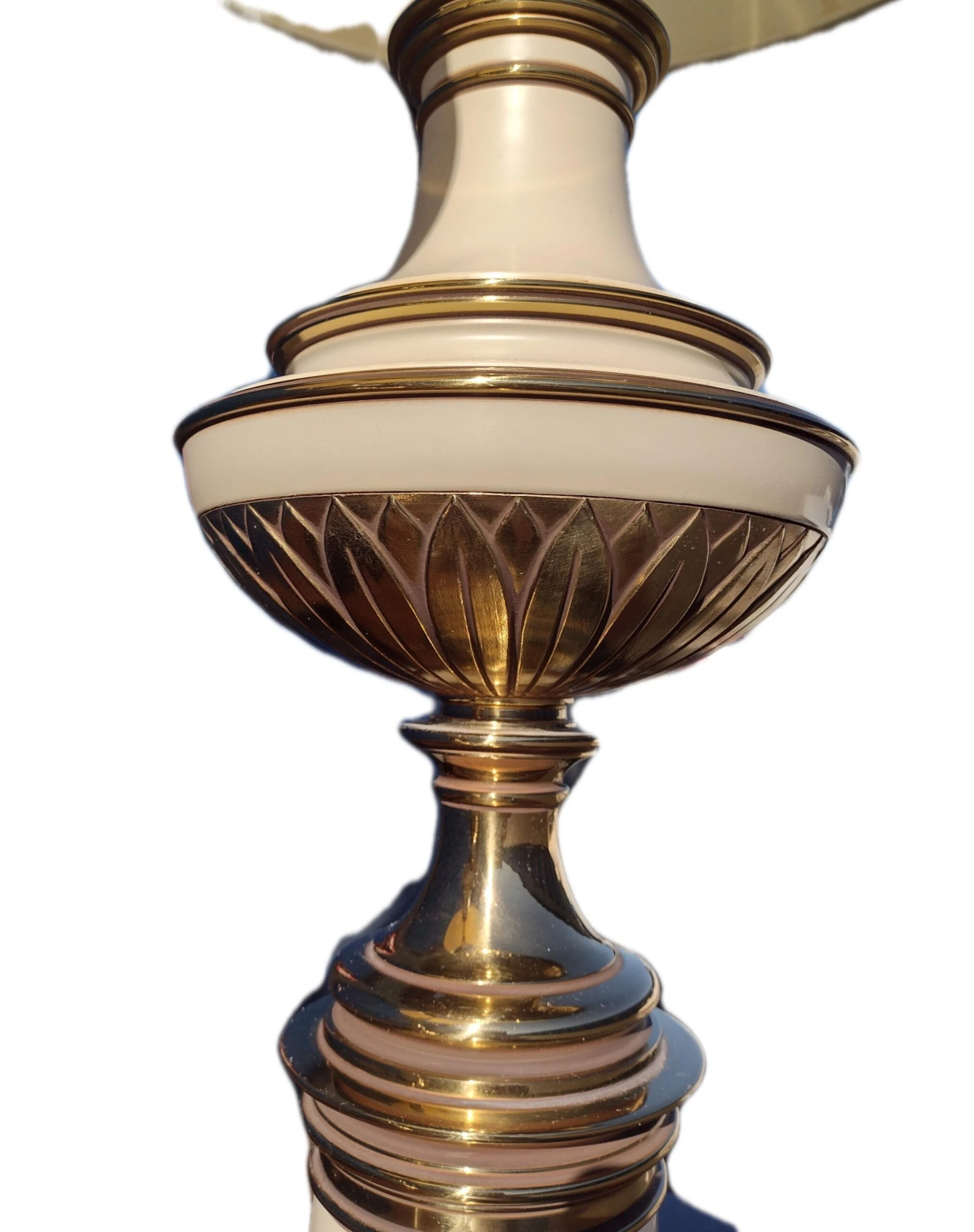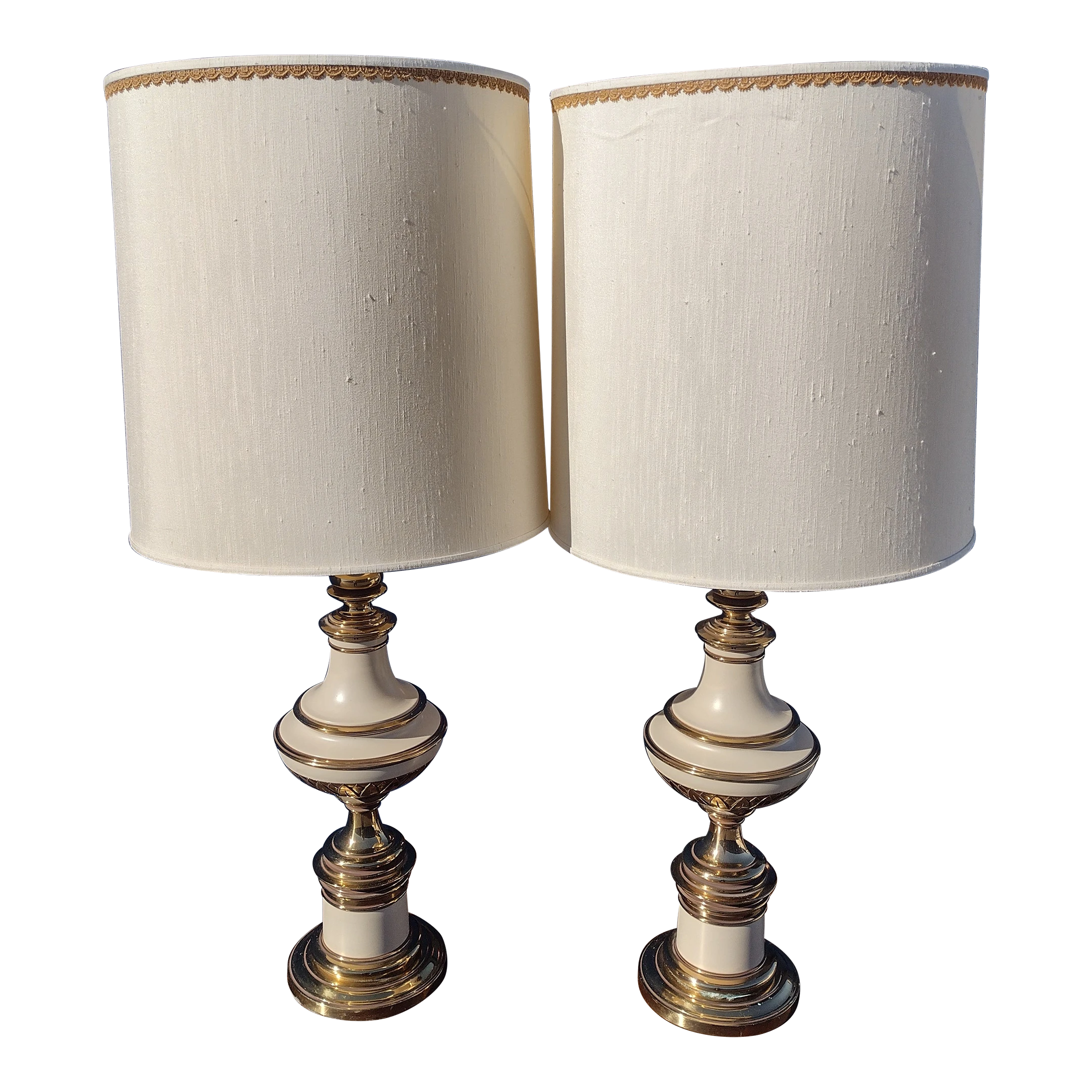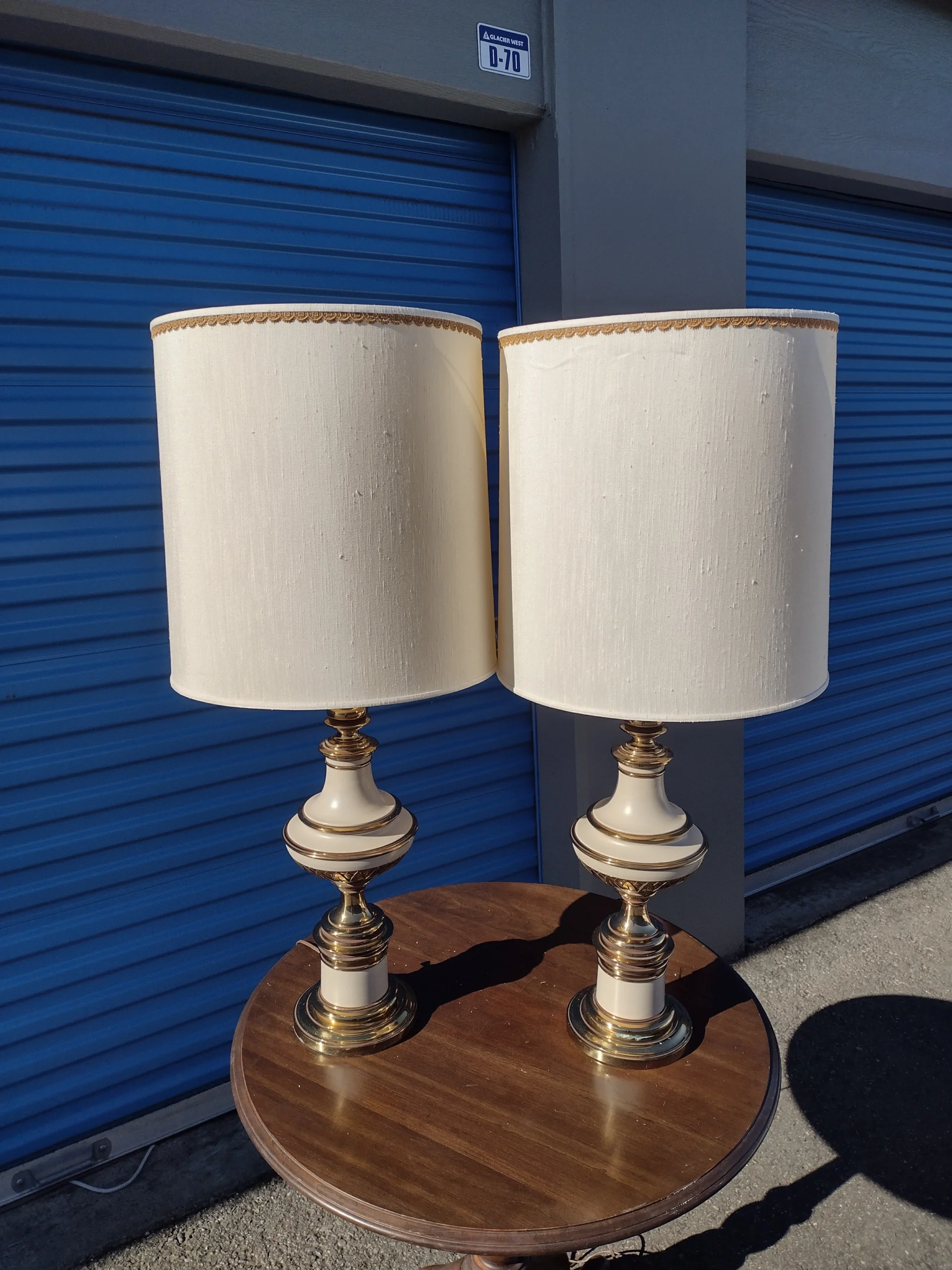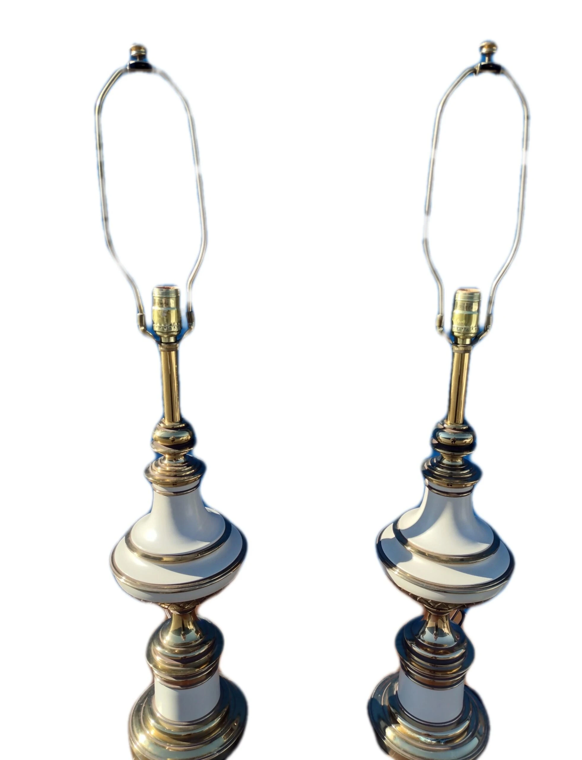 Very well cared for Stiffle Lamps with original finial. Very heavy and solid.