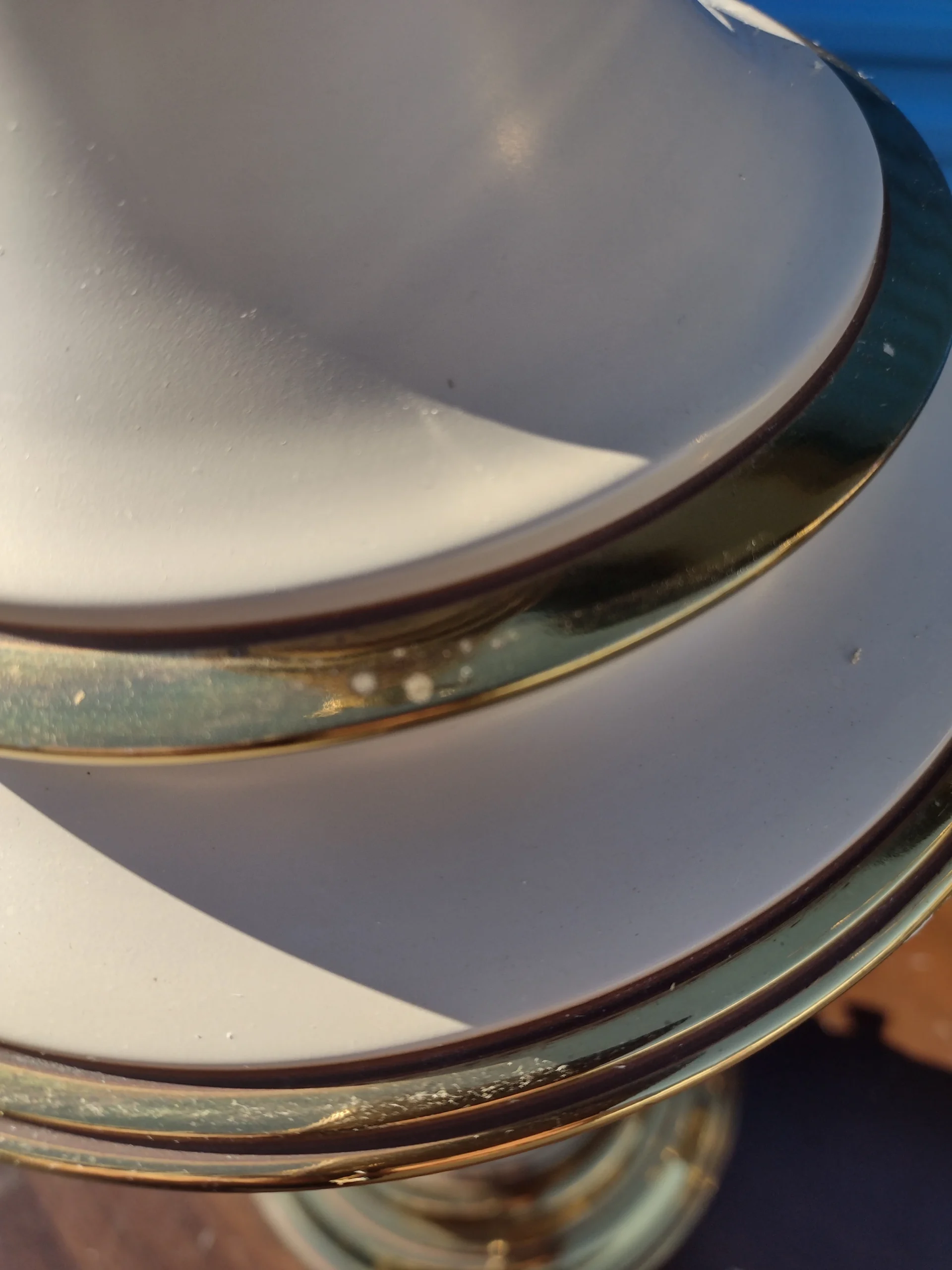 A few small discoloration of the brass. They are in good to excellent vintage condition.