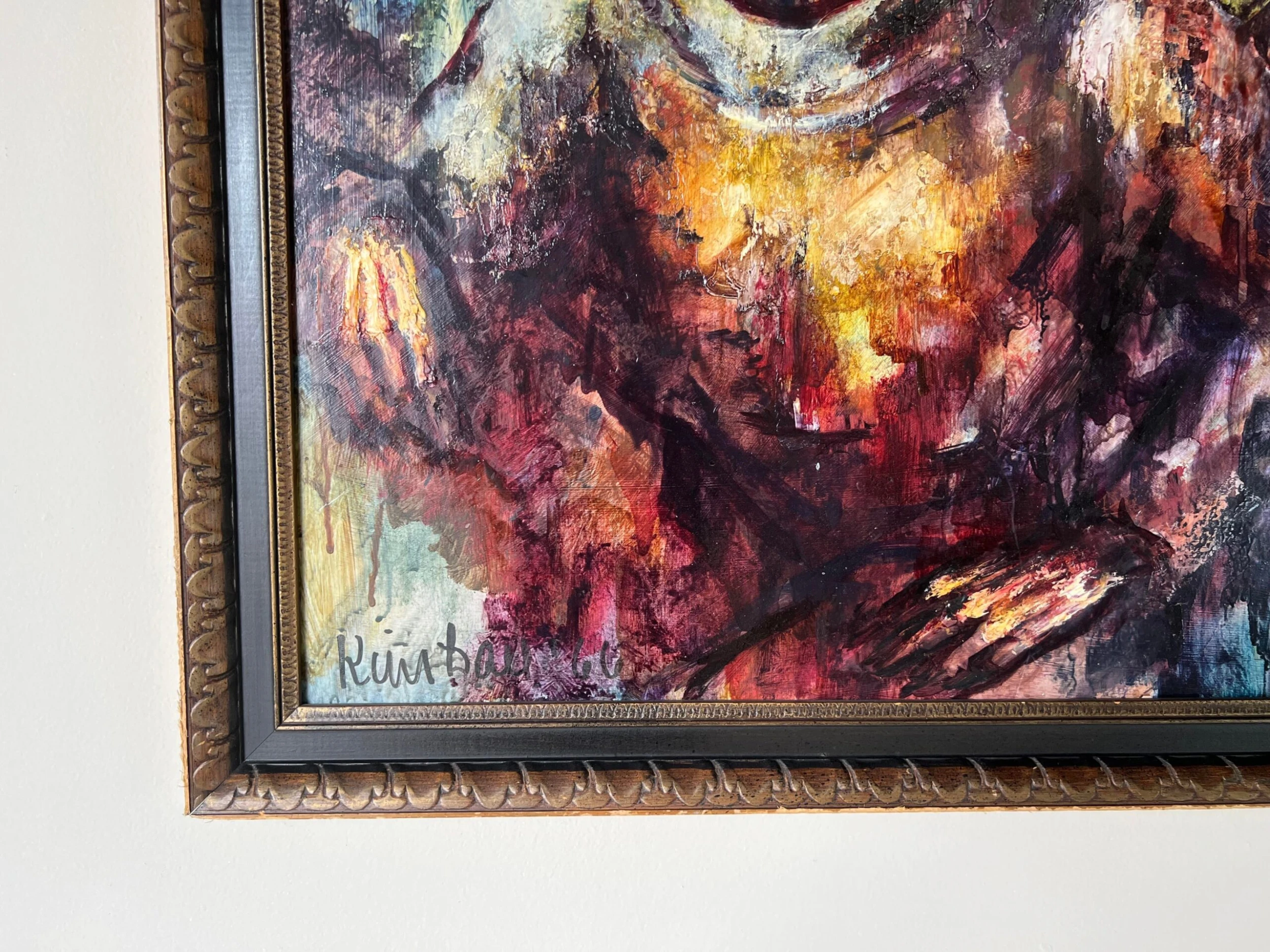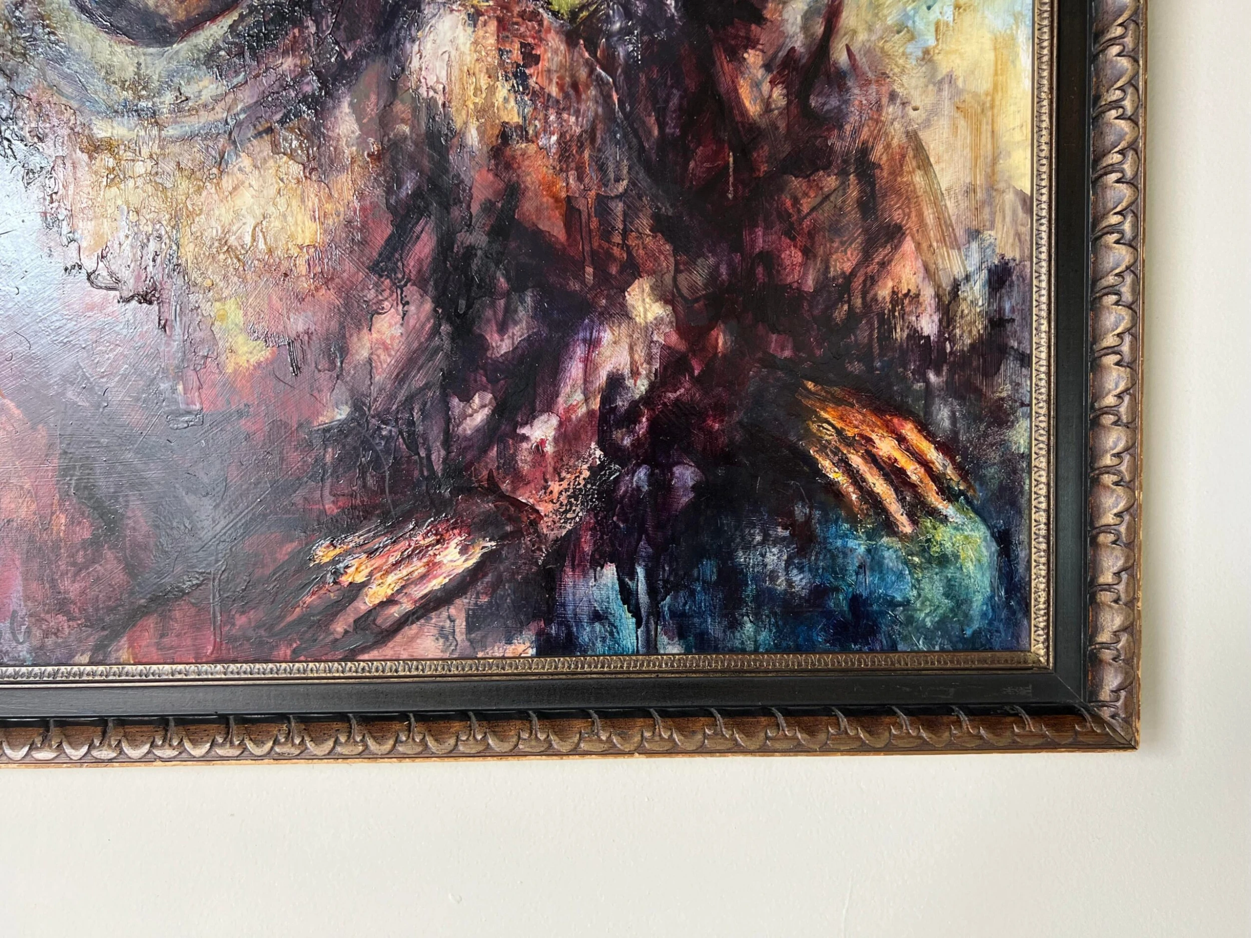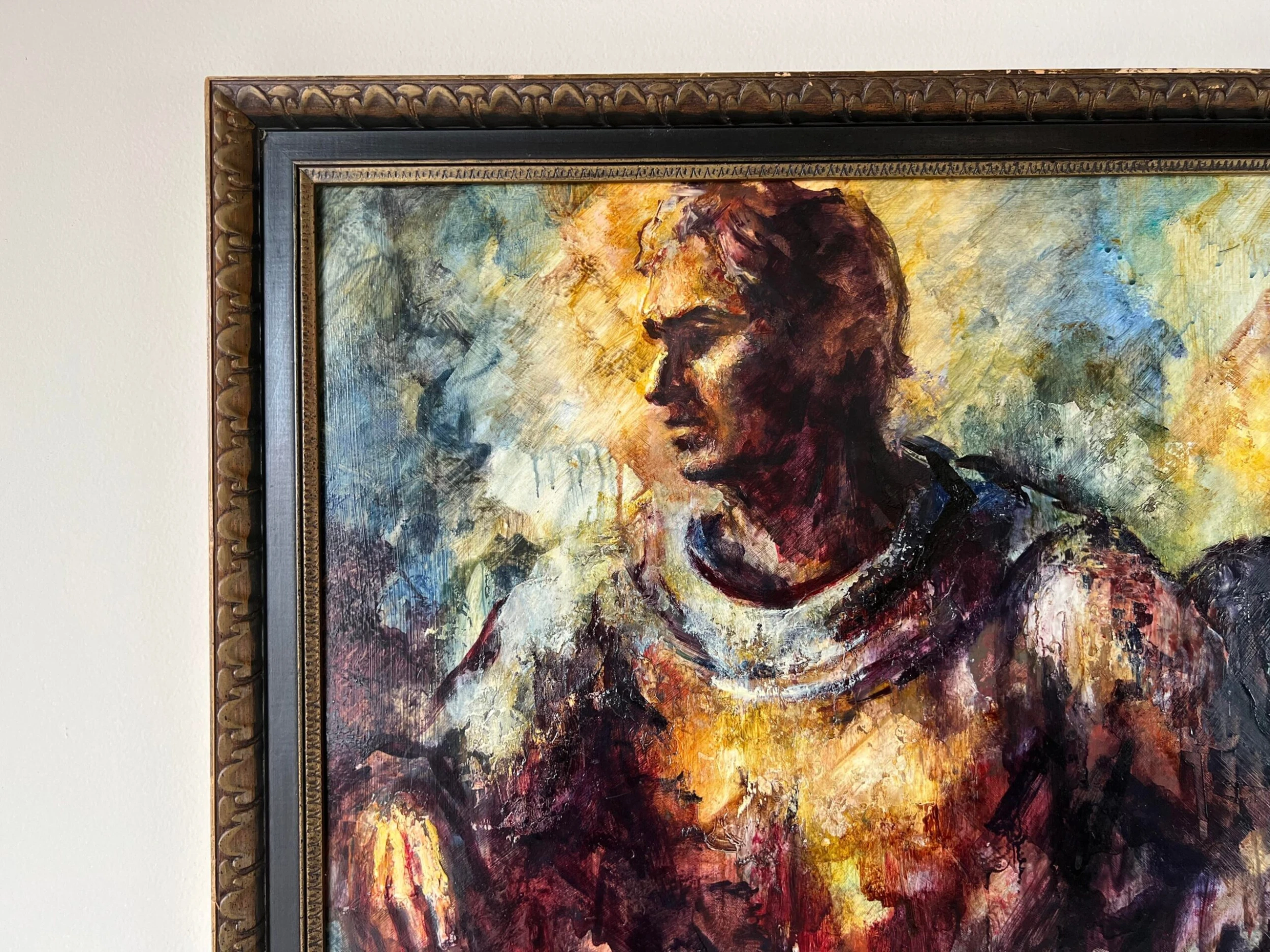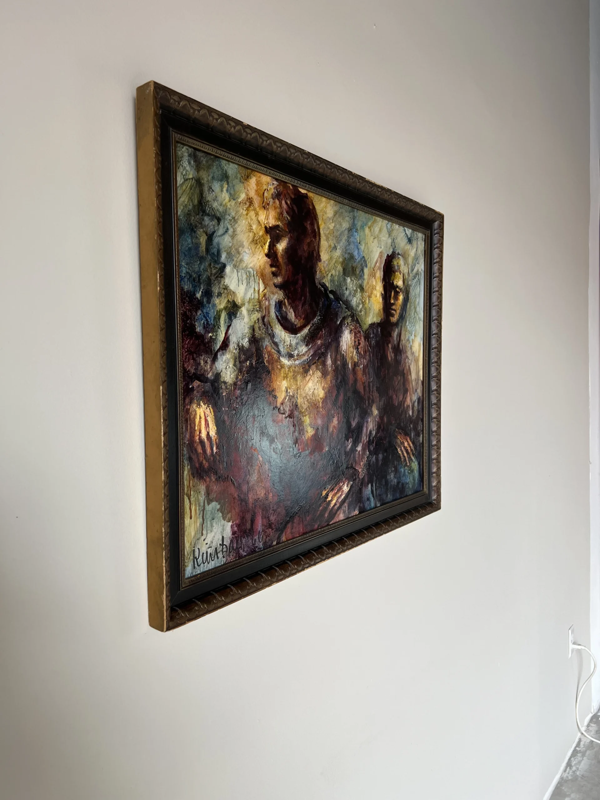 An incredibly well executed impressionist abstract figurative oil composition, painted in 1966 by the Swedish artist Kimball. Titled ” Hamlet + Horatto” Made In Sweden – mark on the back