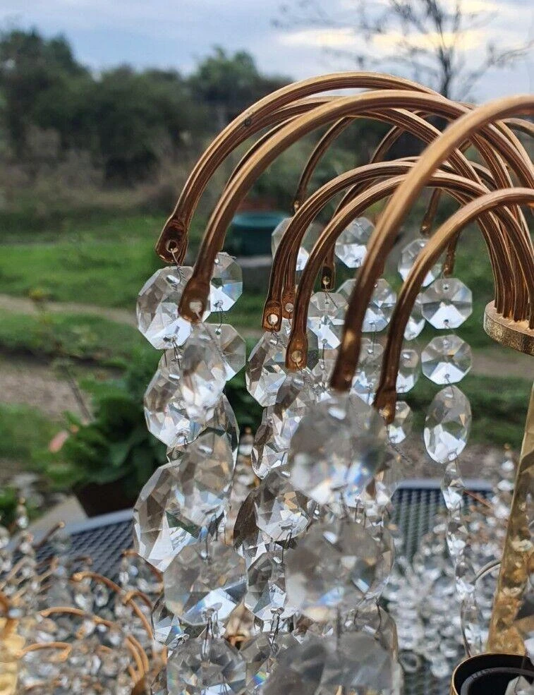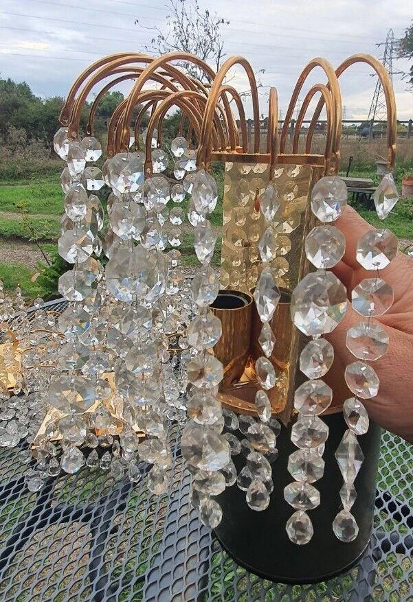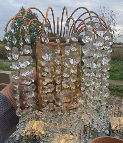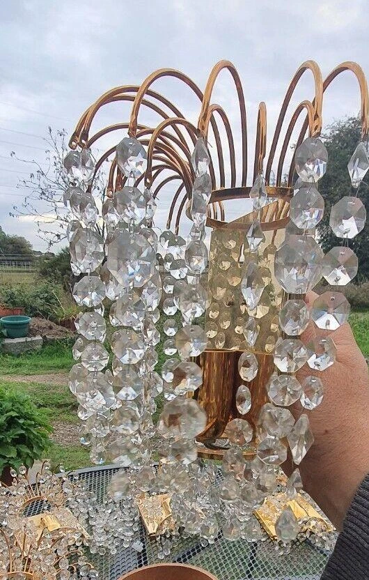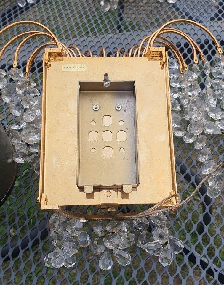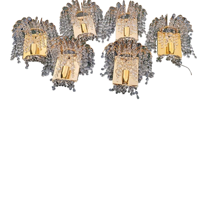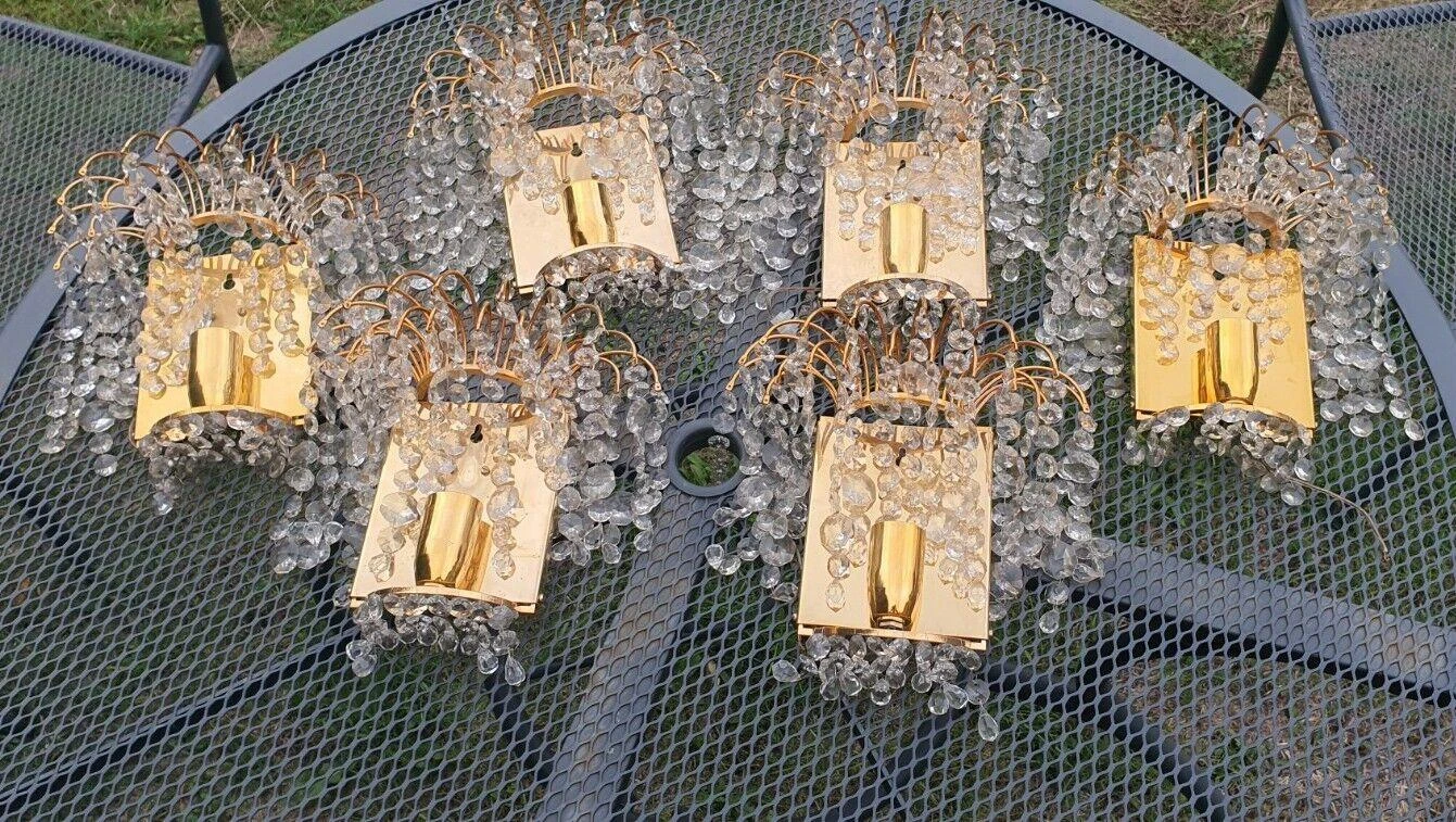 Set of 6 Swedish Regency MCM Cut Crystal Waterfall Wall Sconces by Palwa. 24K gold plate framed. Very, very high …
