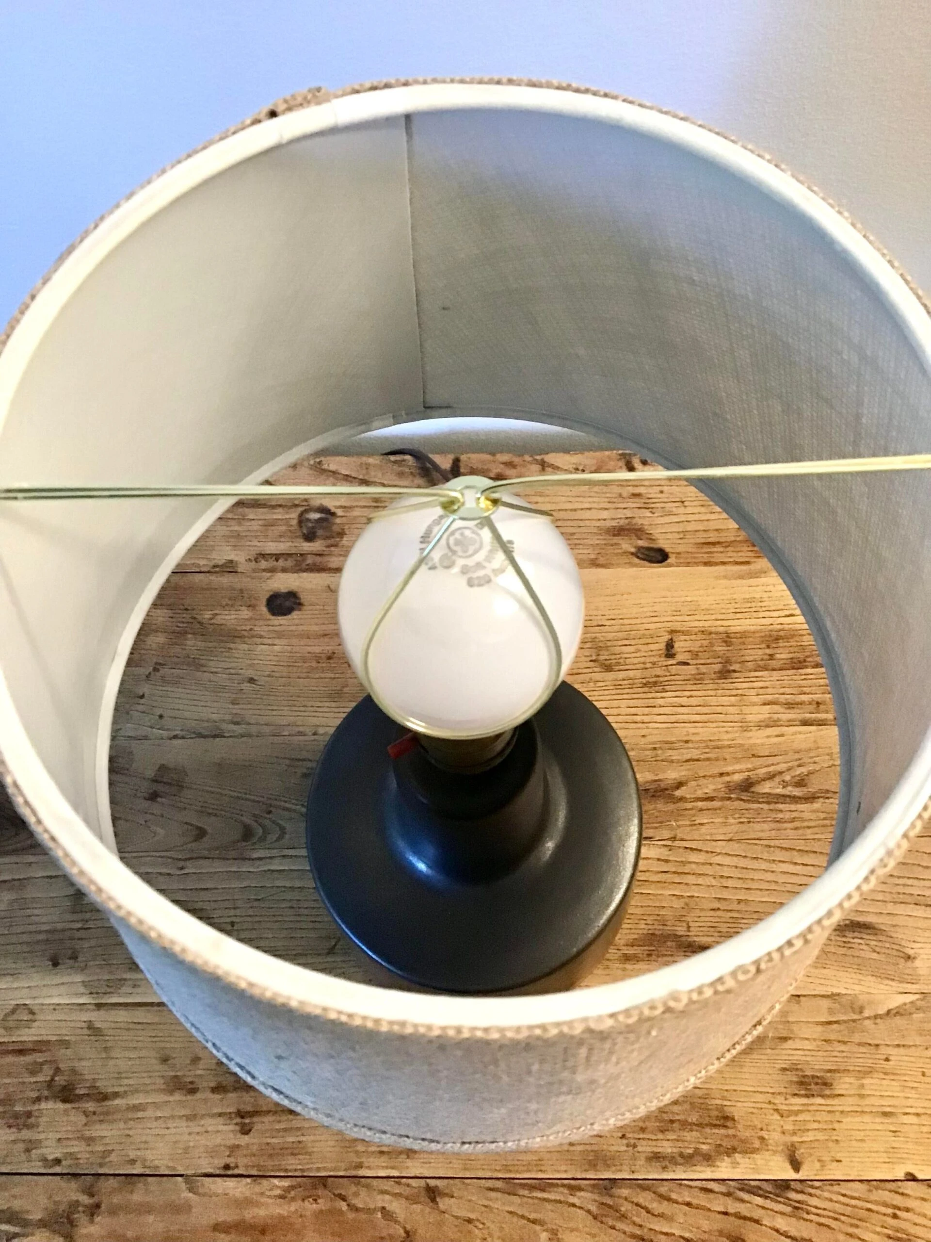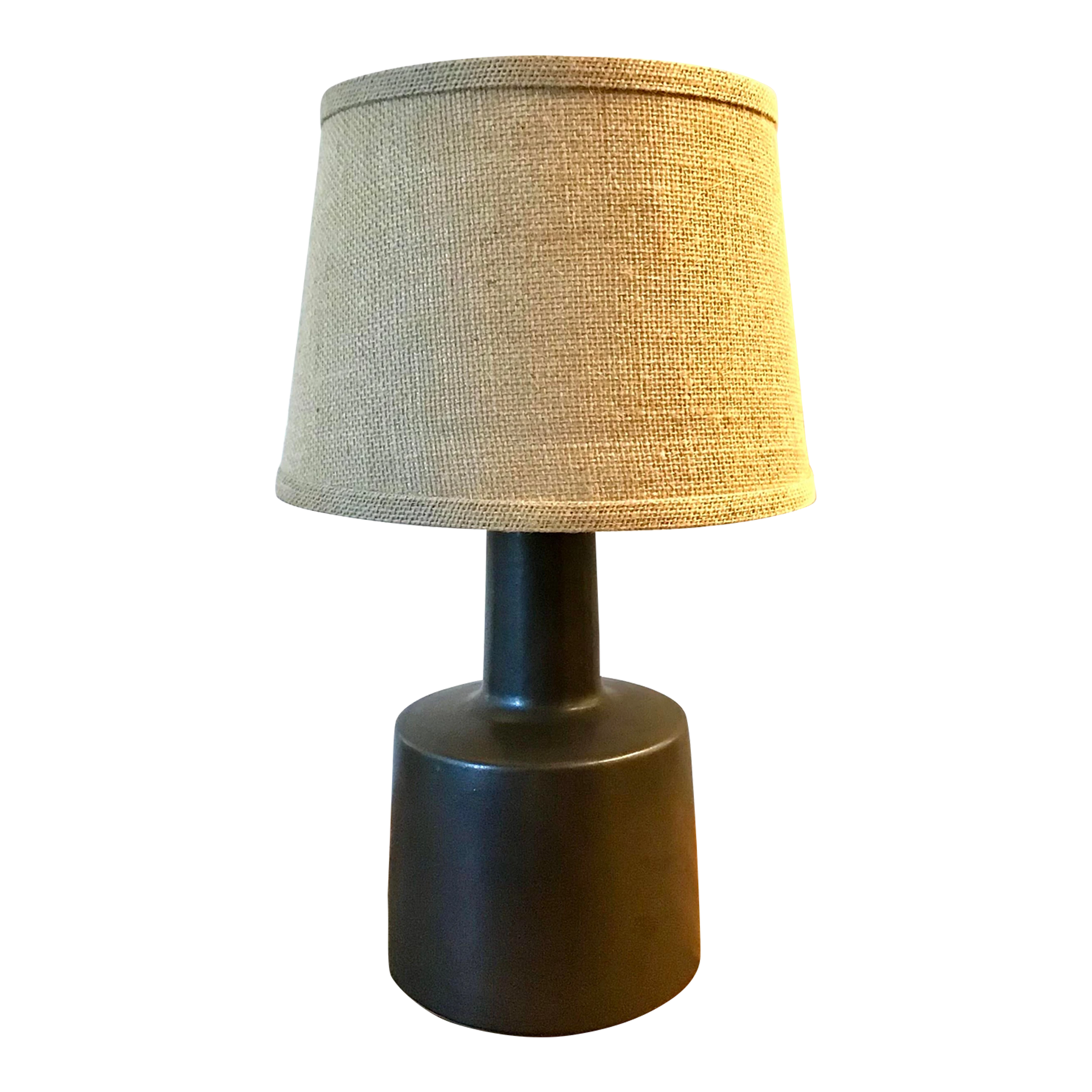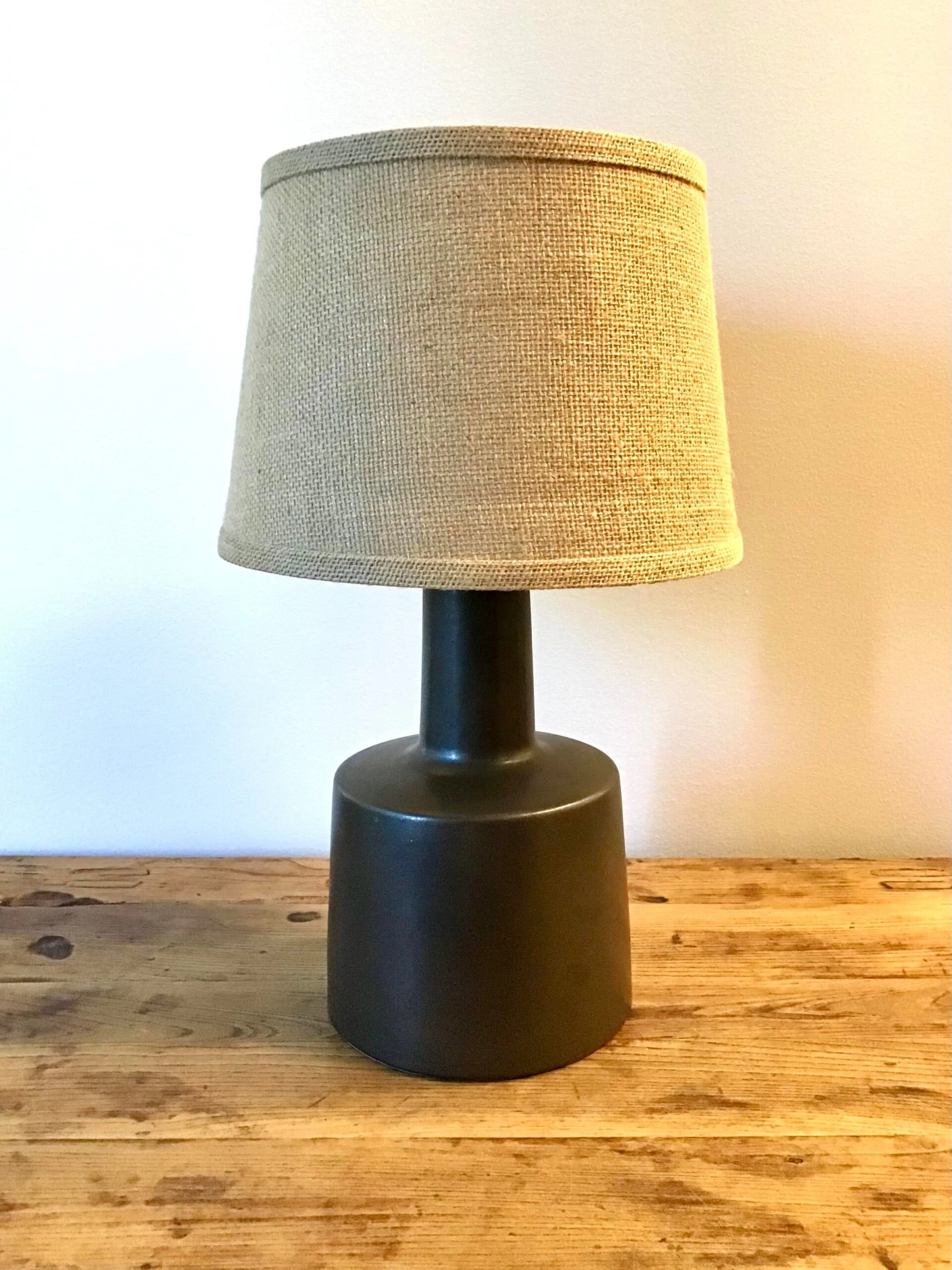 With a rich darkest Brown Matte Glaze & a brand new Original Burlap Lamp Shade.
