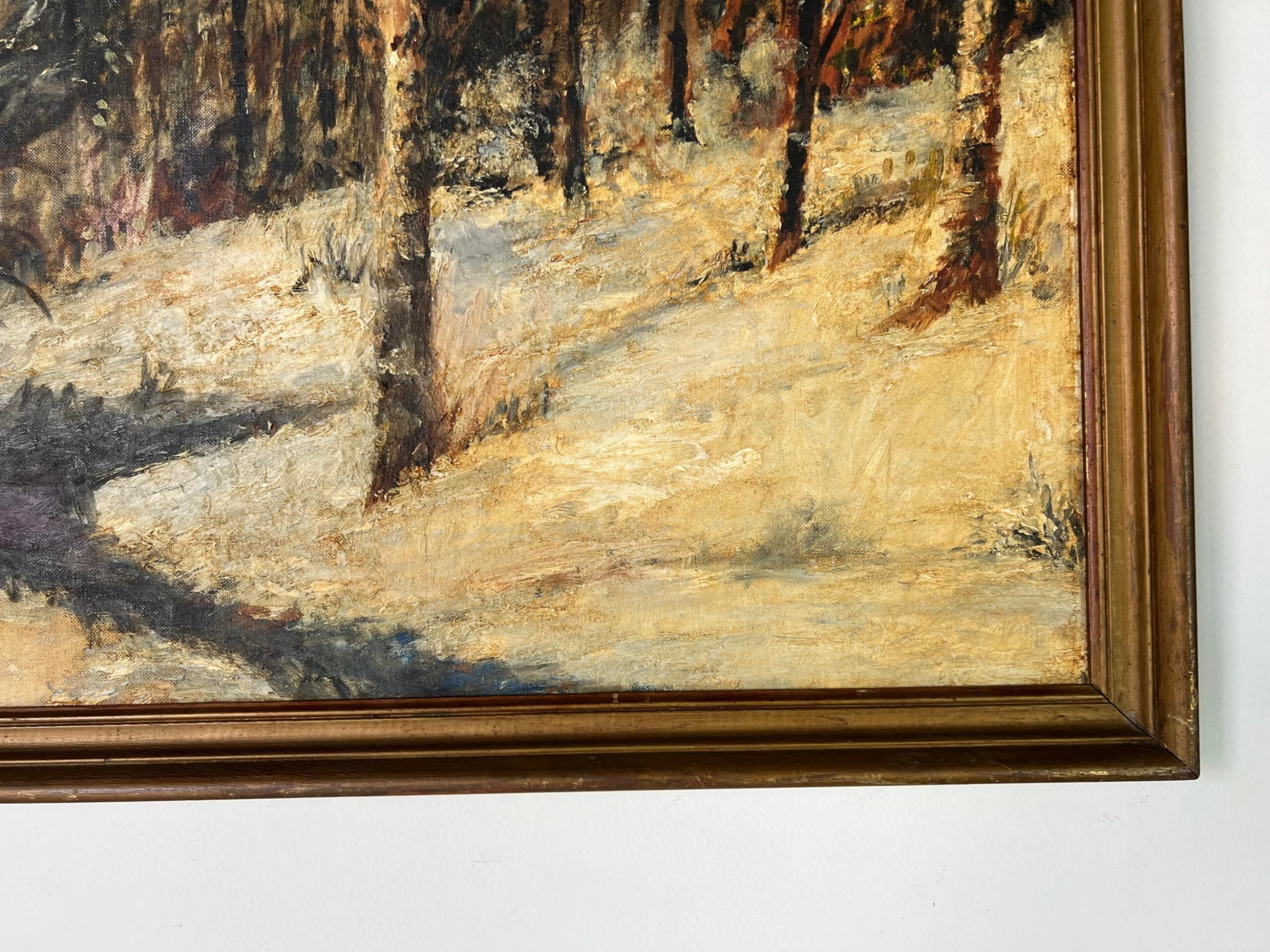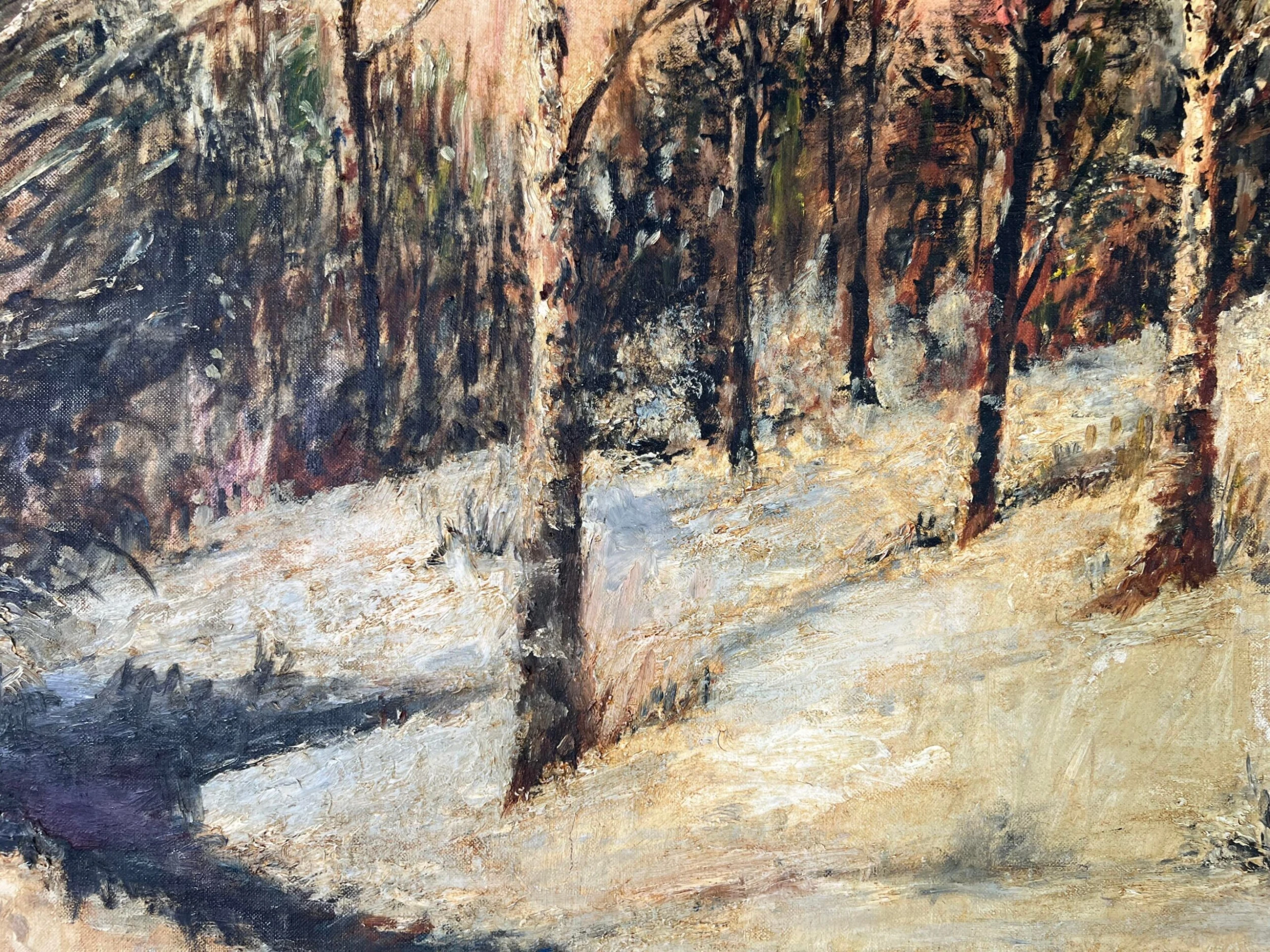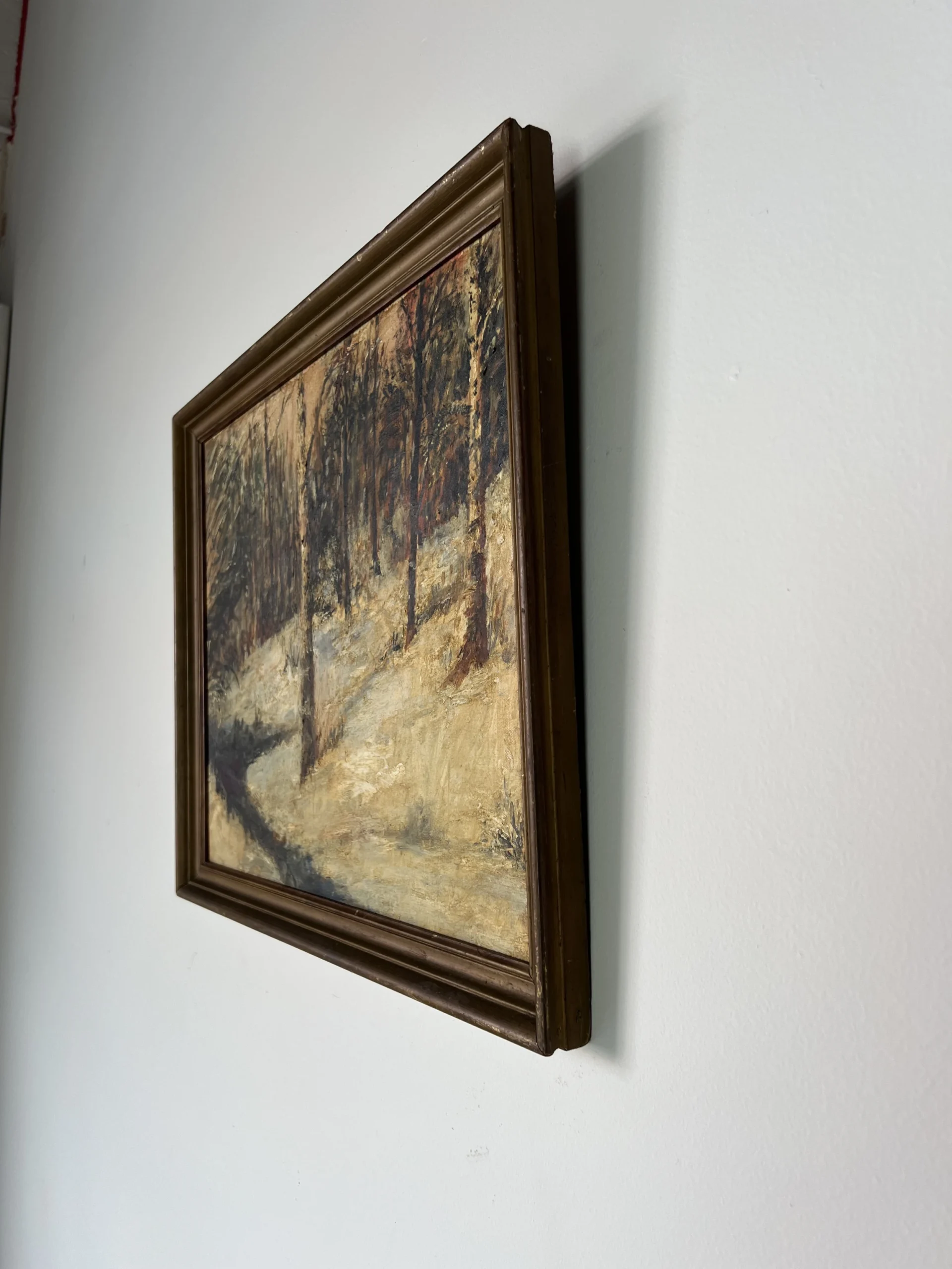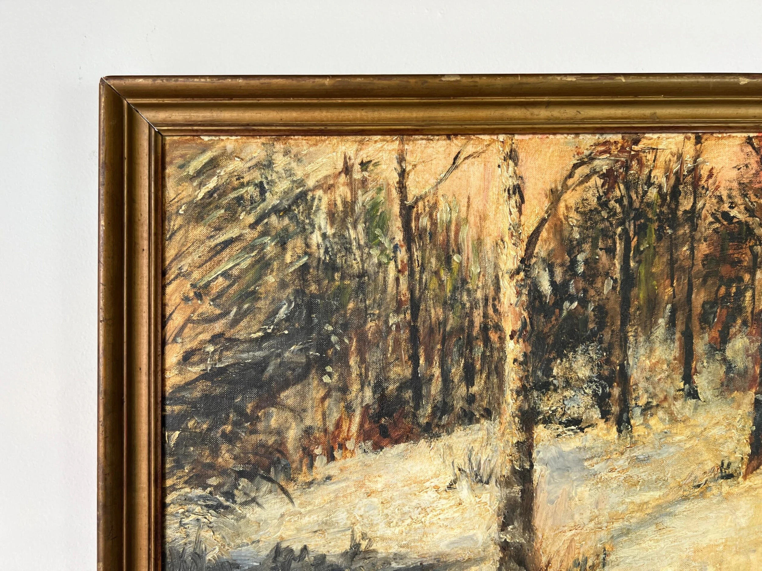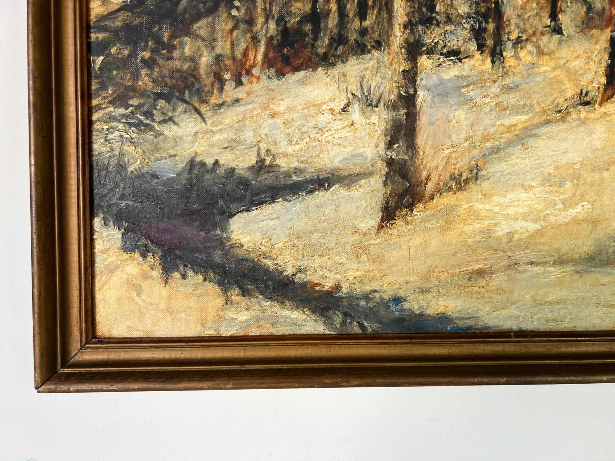 A beautiful vintage American Impressionist abstract oil painting of a winter landscape. Oil on artistic board. It has been mounted …
