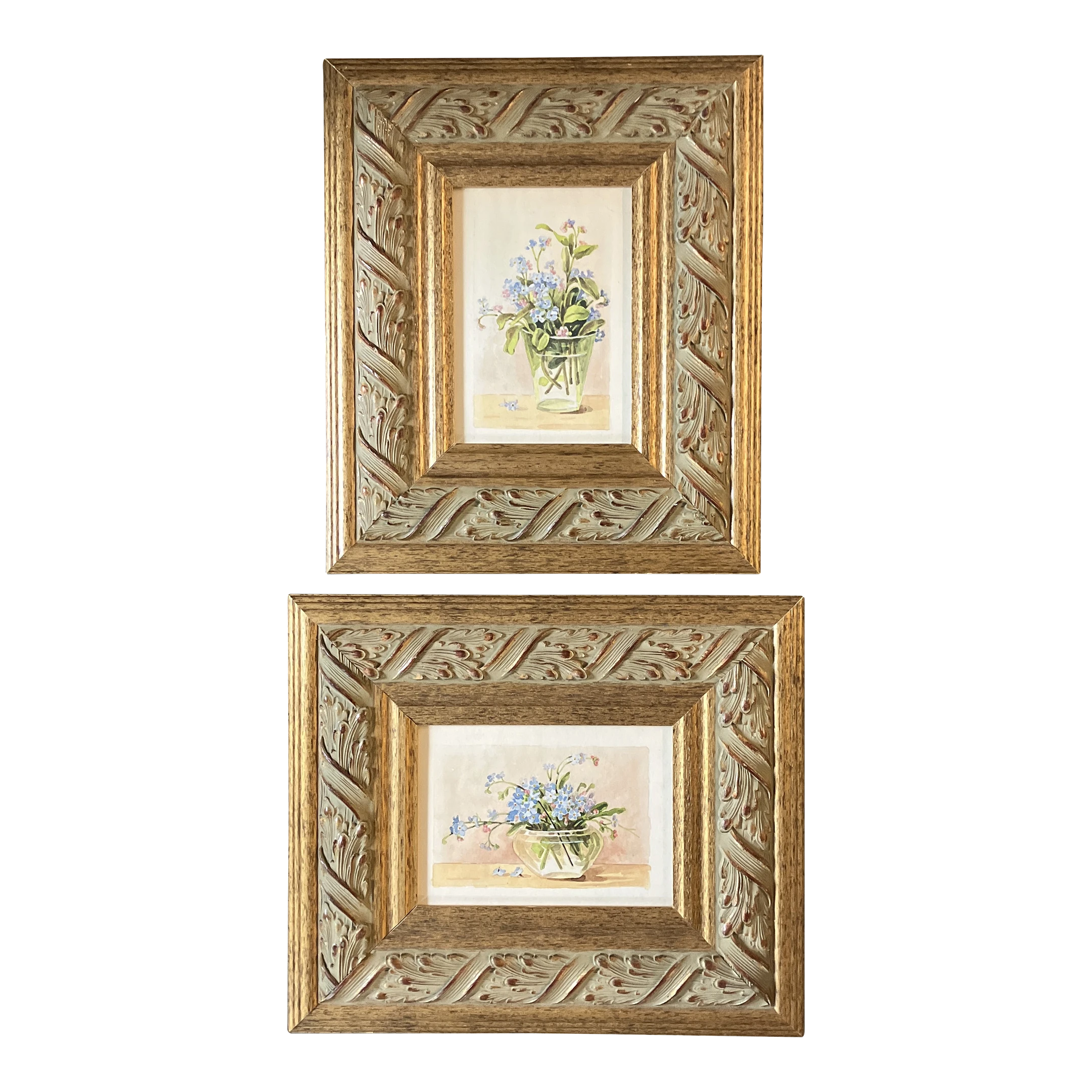 2 5 x 7 original watercolor paintings on paper unsigned Overall size with frame is 11.5 x 13.5