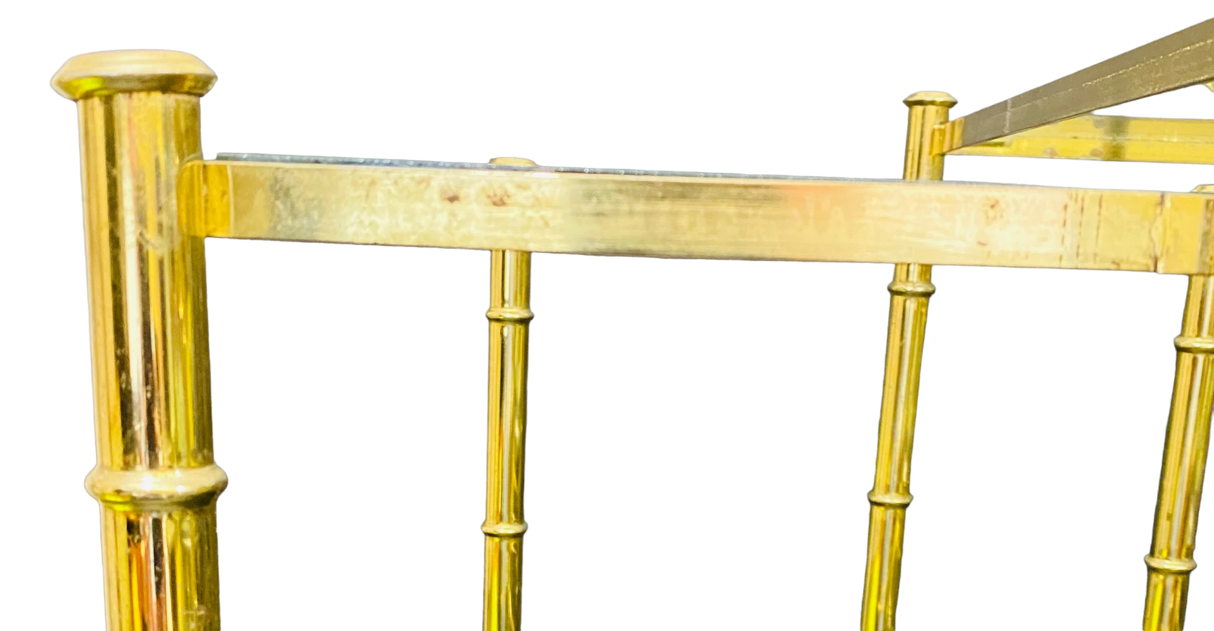 1970’s Brass Faux Bamboo Nesting Tables with Glass a Set of 3. Glass is NOT tinted – it is clear glass, as they look in some of the pictures.