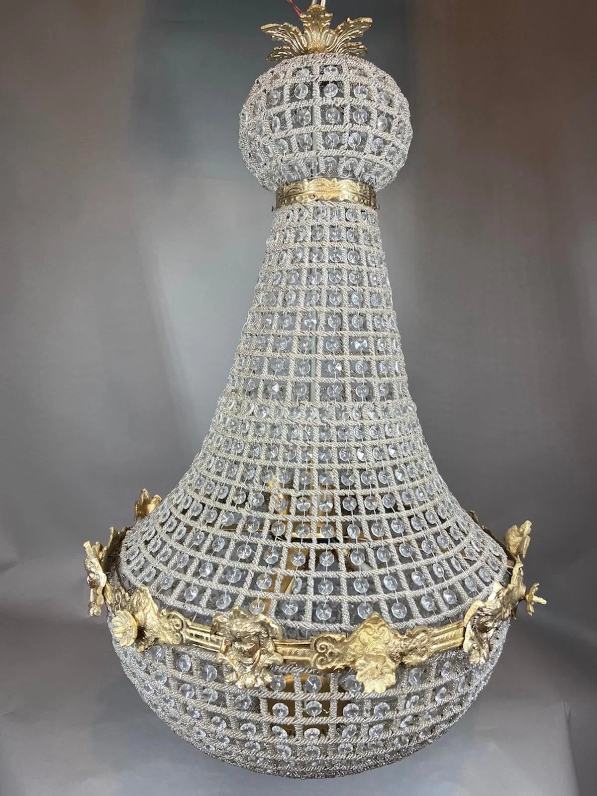 The chandelier is beautifully decorated with woman’s faces on the bronze.