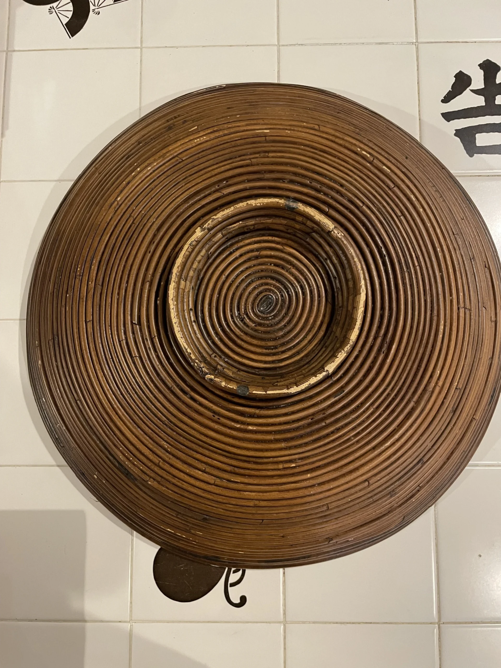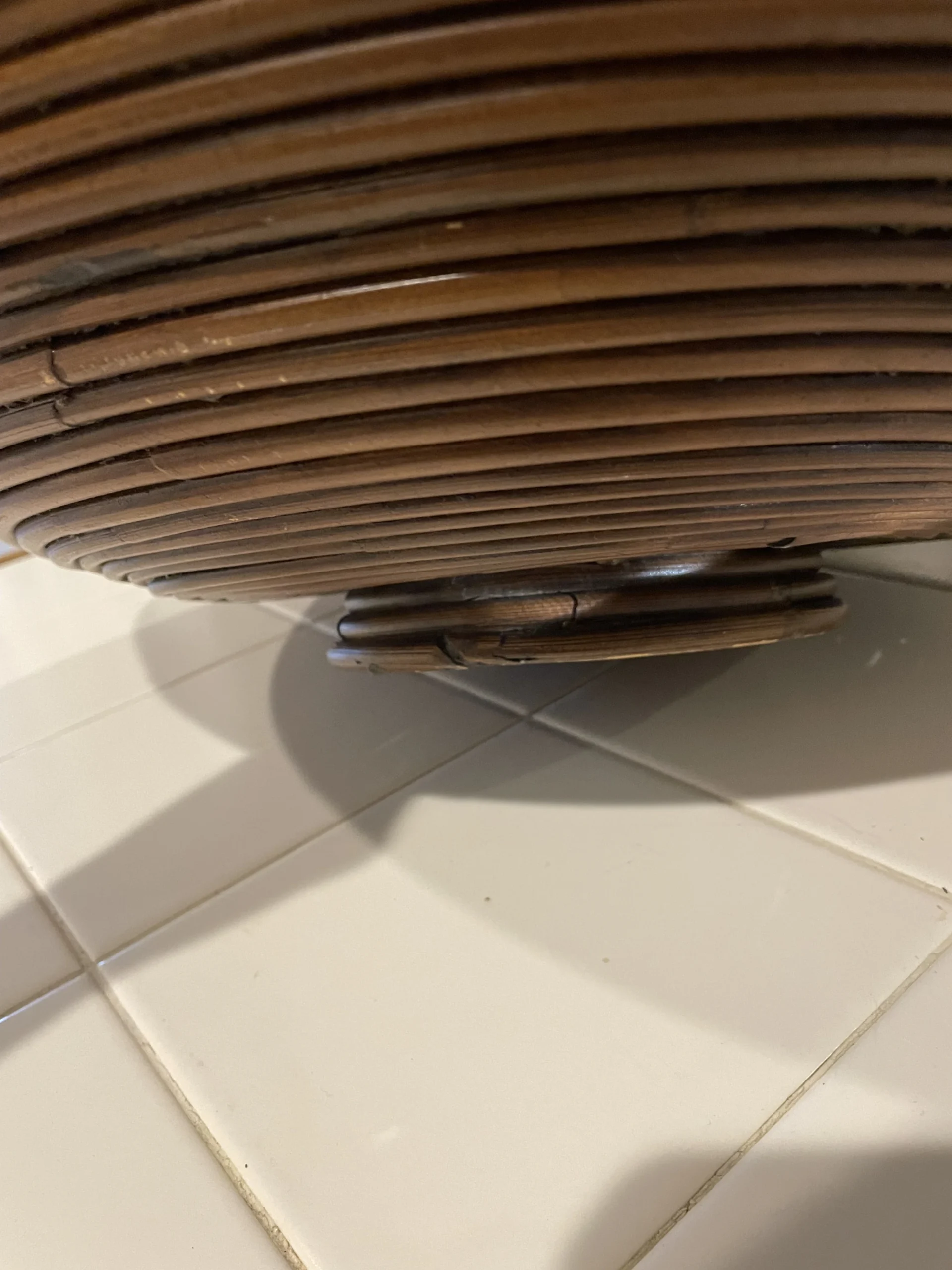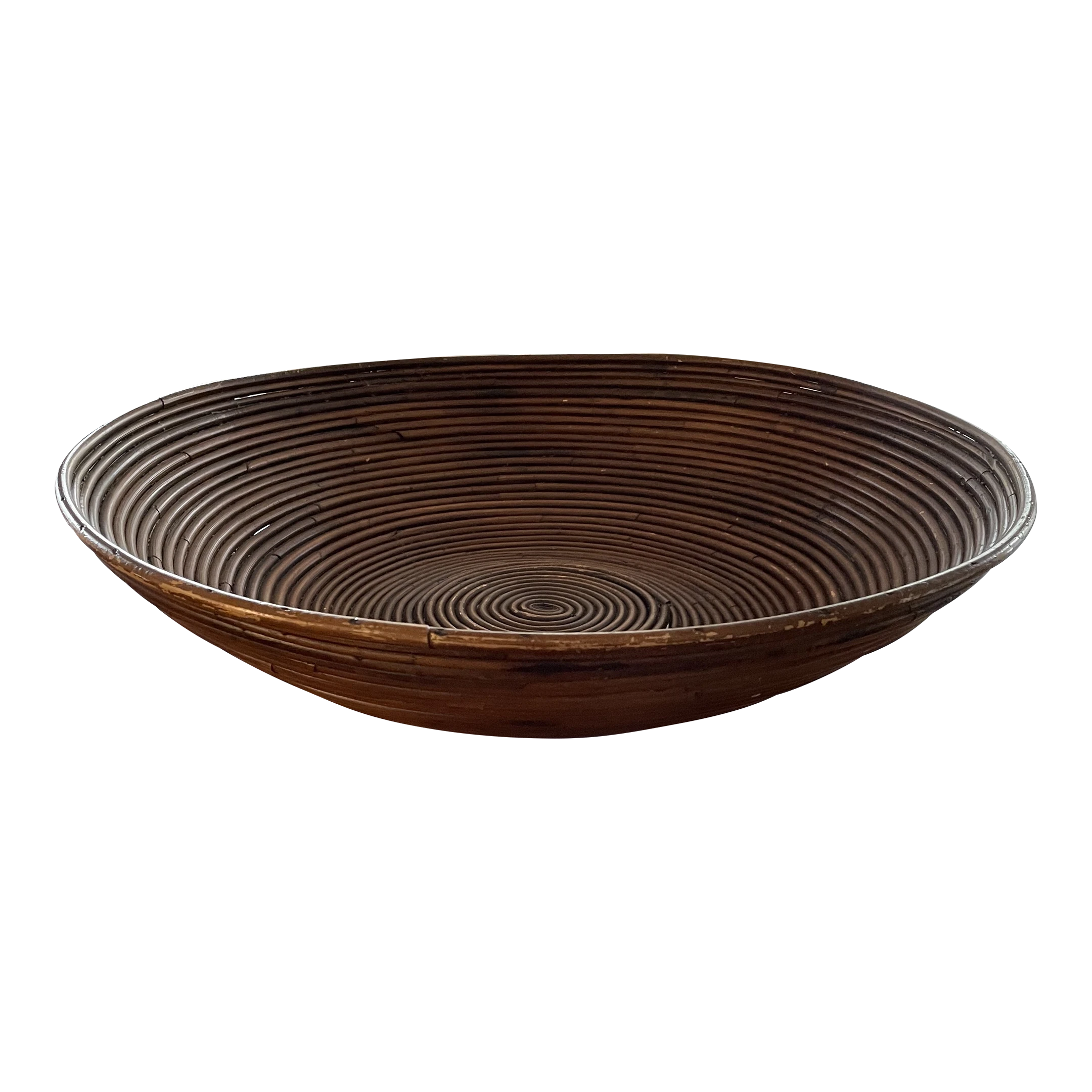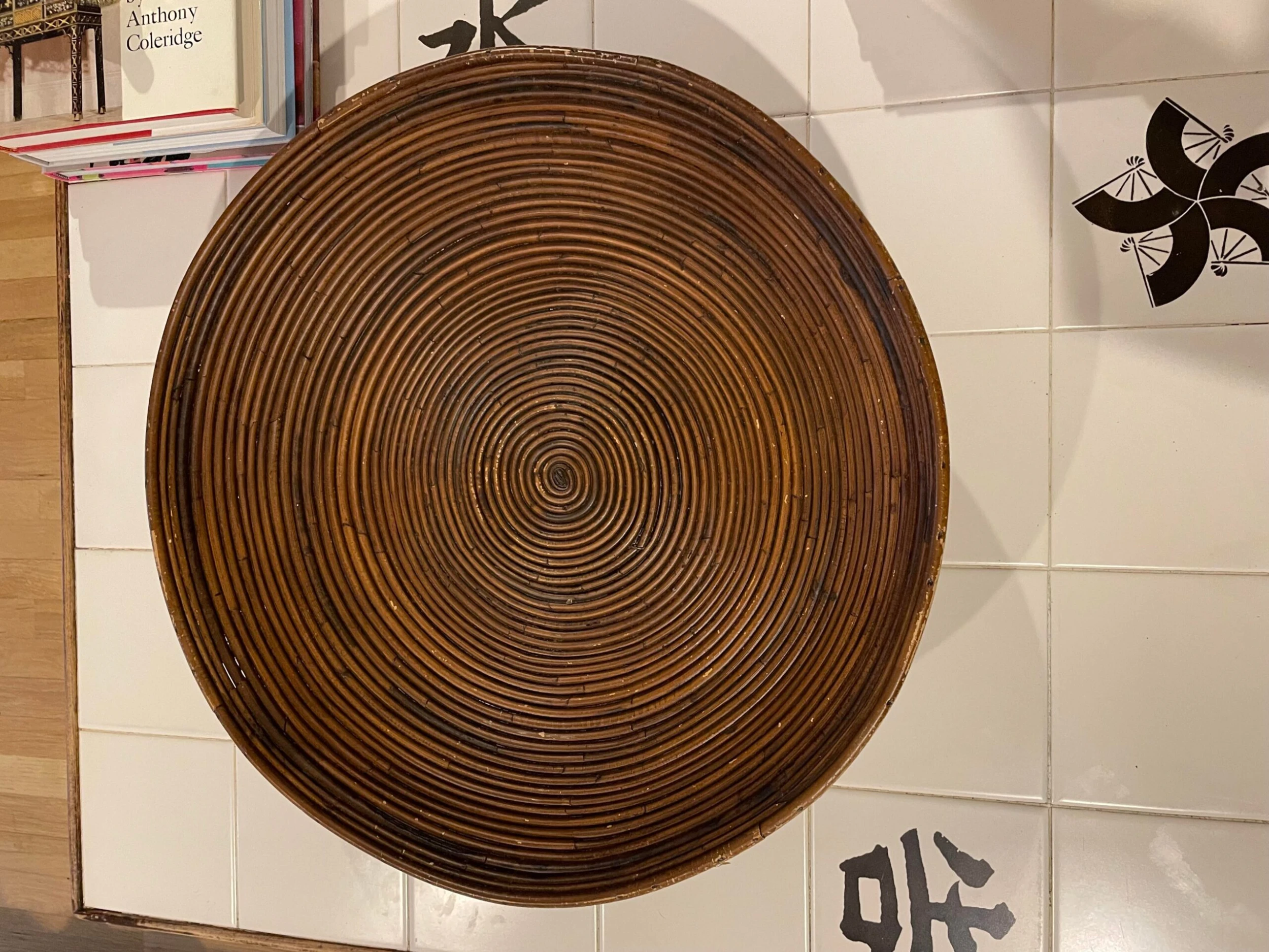 Vintage pencil reed adds color and texture combined with function when styling your home. I especially like the vintage pieces for the character produced by wear. This bowl is large …. It’s perfect for a large coffee table . Use is for magazines or plants, but it’s pretty enough to display alone.