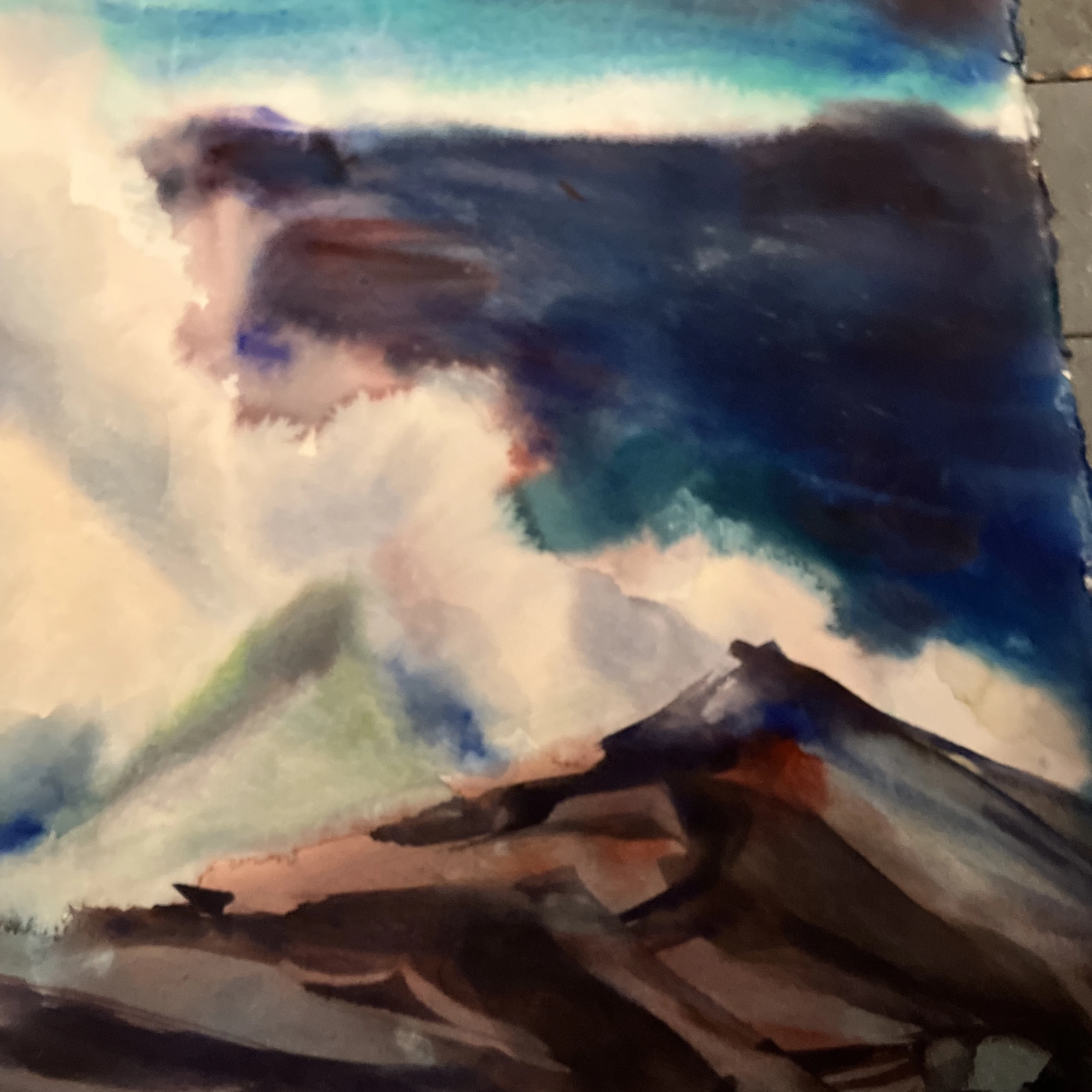 Original watercolor painting on paper unsigned 15 x 22 unframed rough around edges would be covered by framing