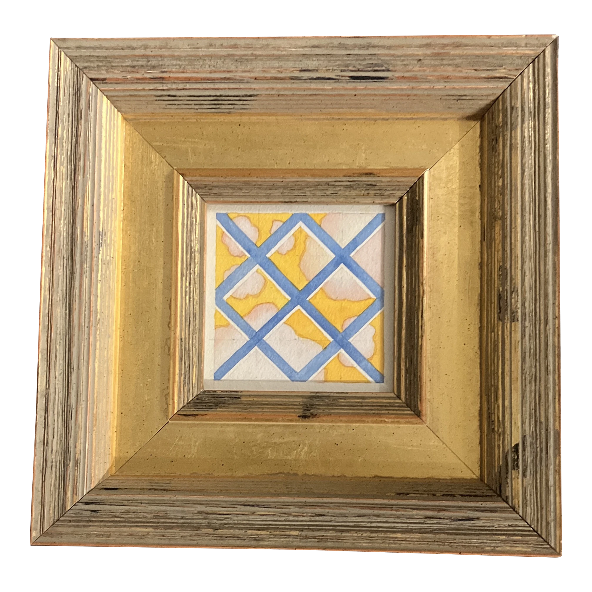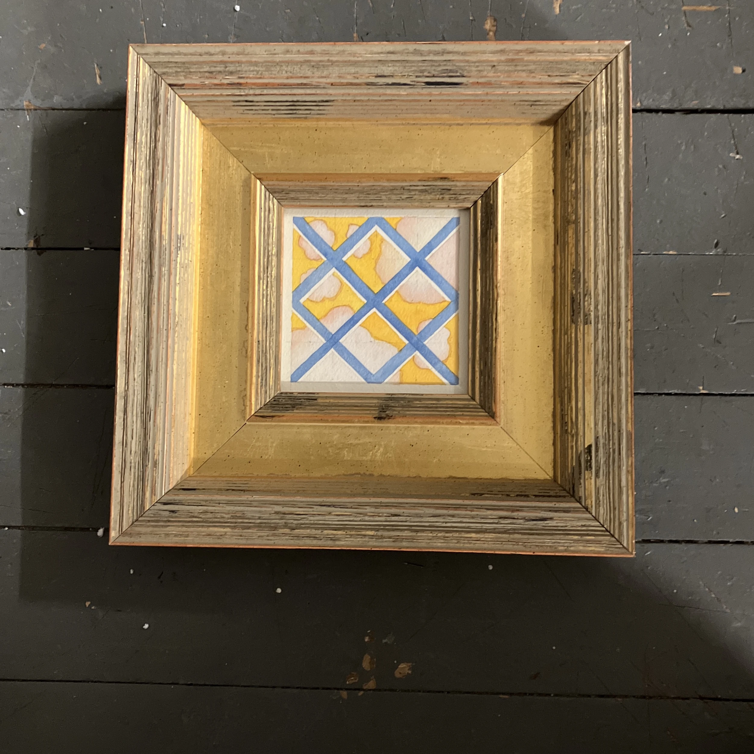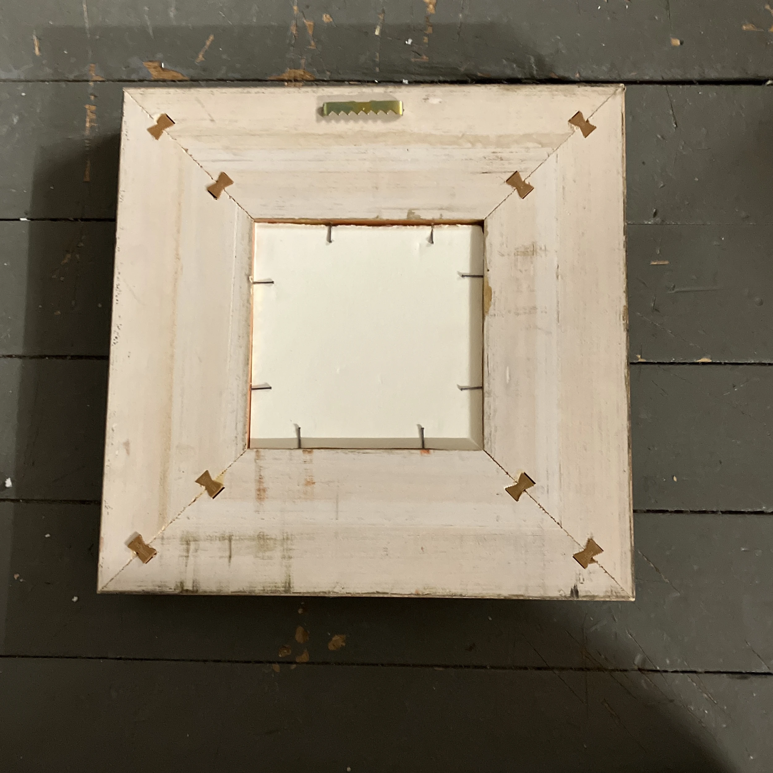 Original 5 x 5 painting on paper unsigned Overall size with intentionally distressed wood frame is 11.5 x 11.5