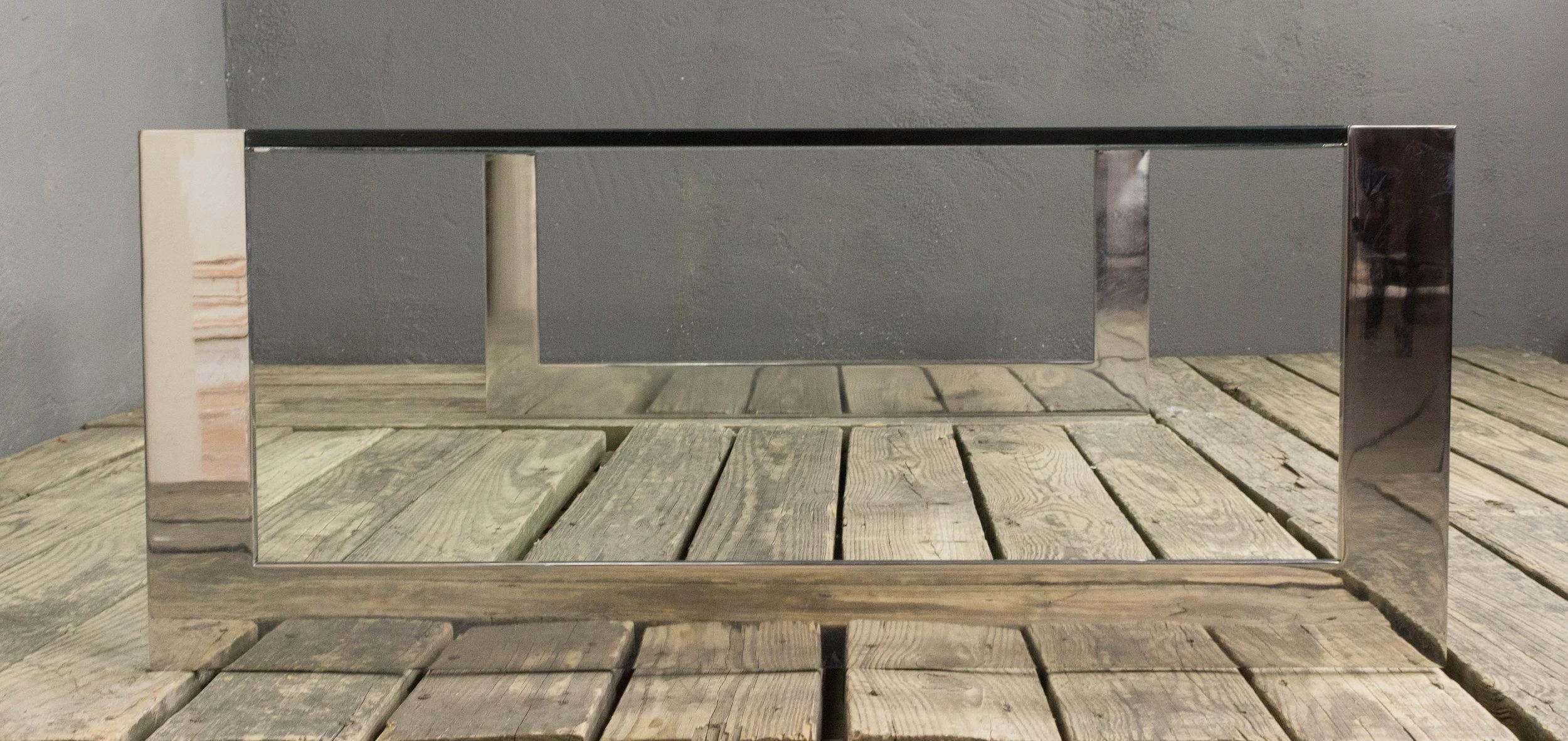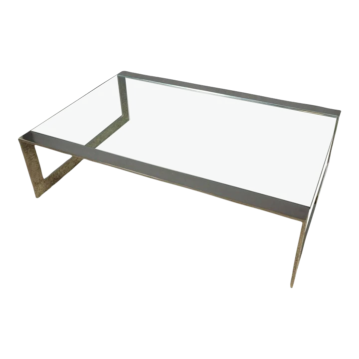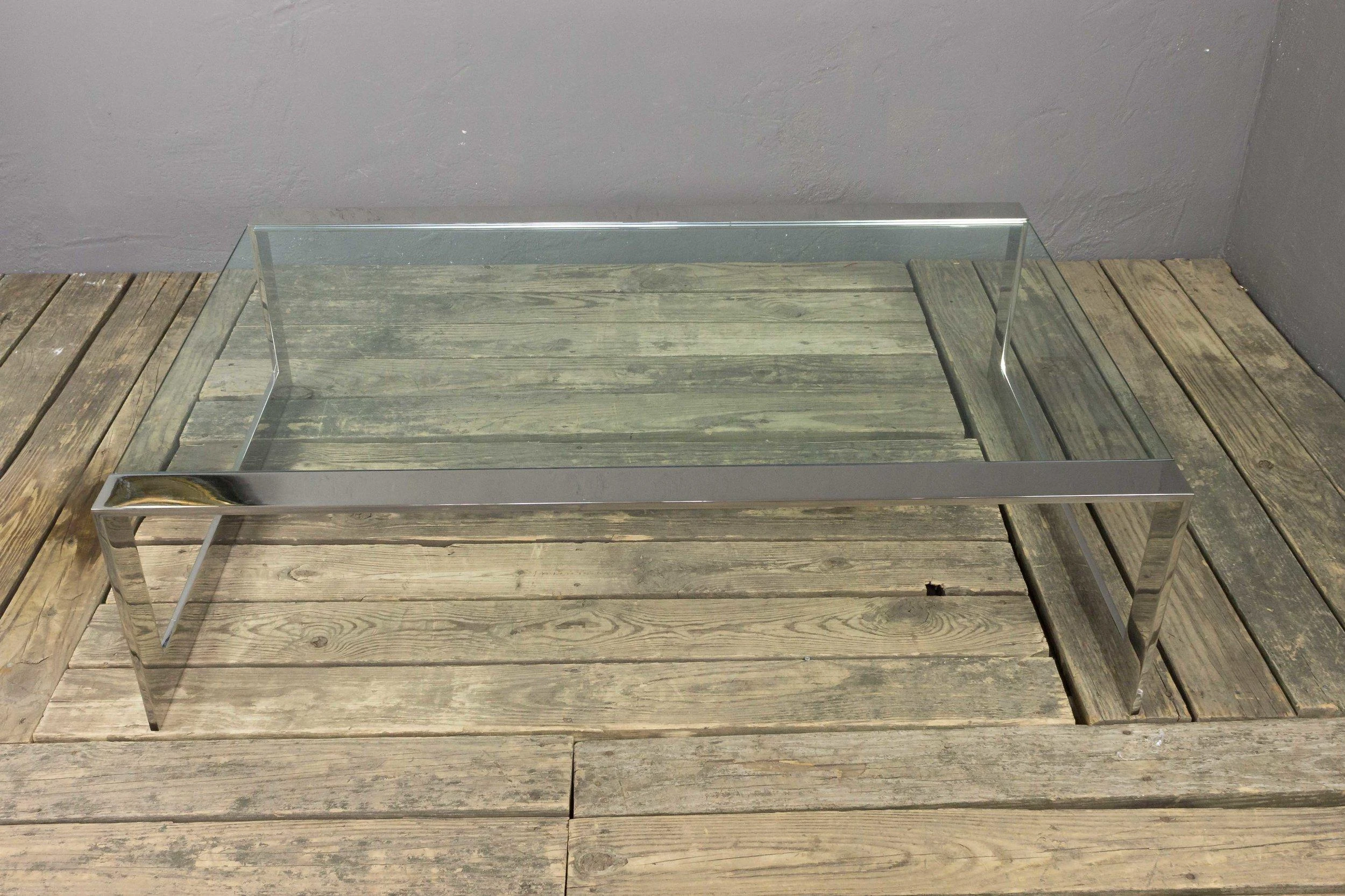 Polished stainless steel coffee table with inset clear glass. Very good condition. Frame has recently been polished. There are a …