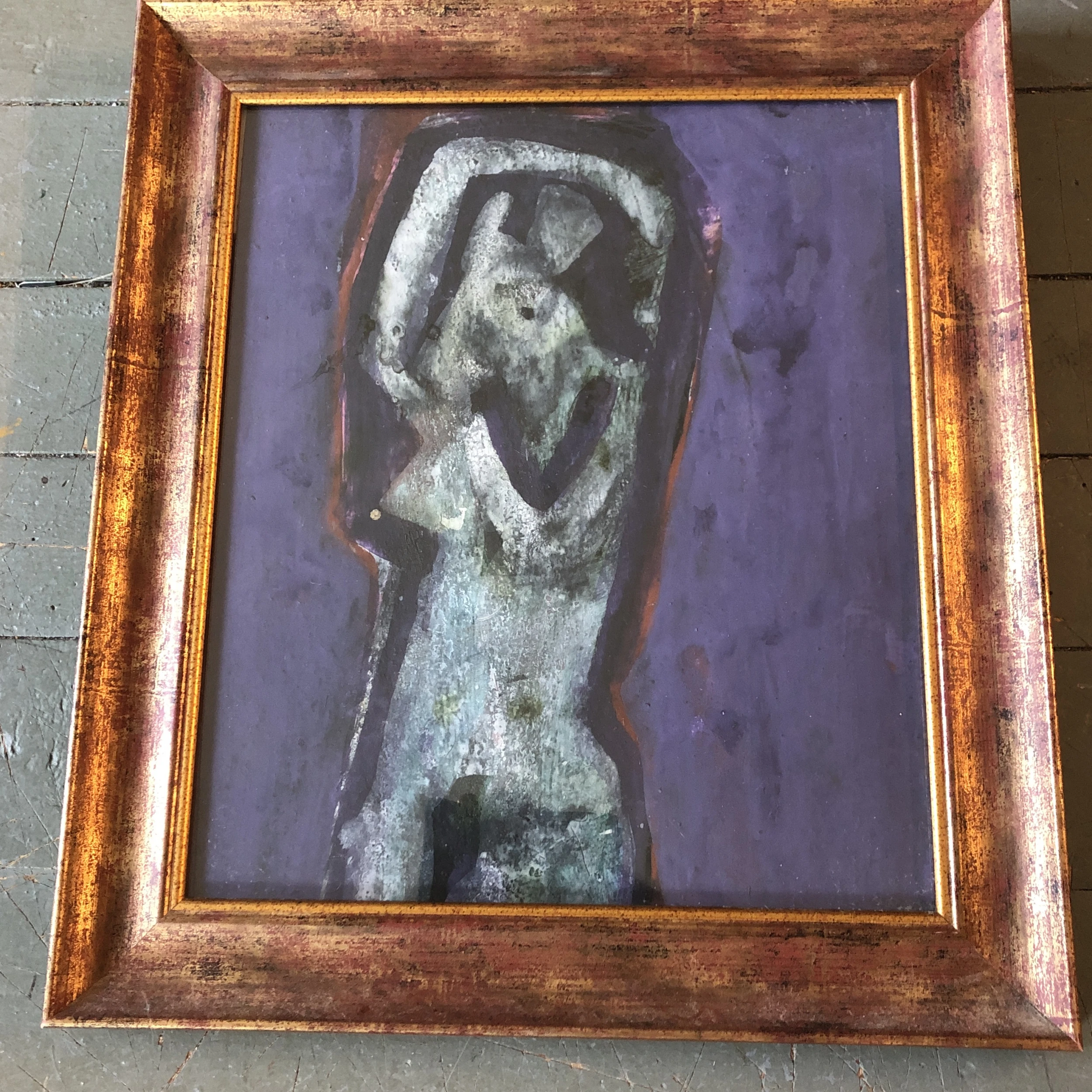 Original 11 x 13 painting on paper unsigned overall size with frame is 14 x 16