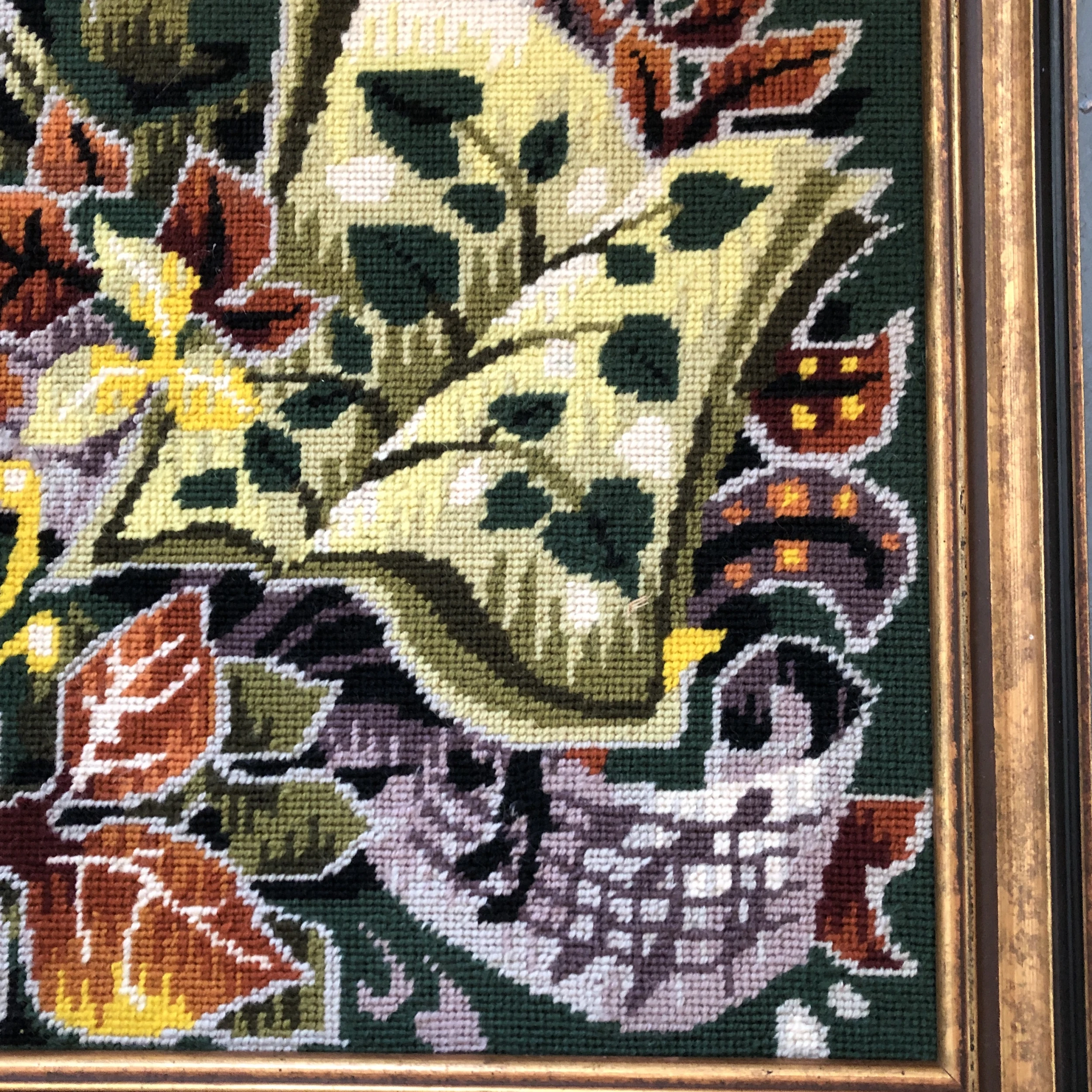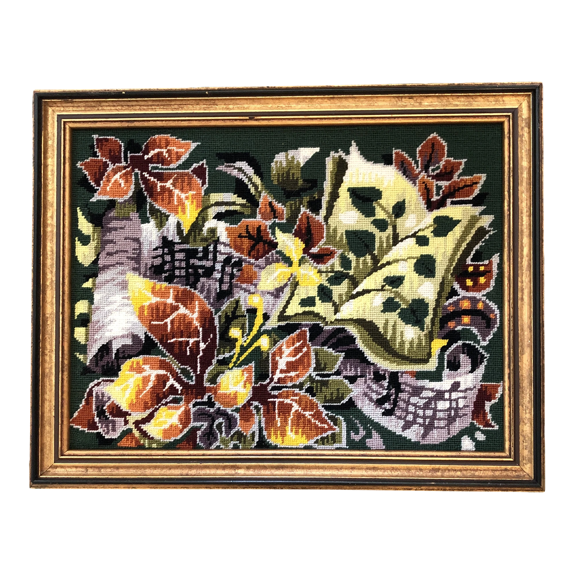 Hand done needlepoint picture framed overall size with vintage frame is 16.5 x 21