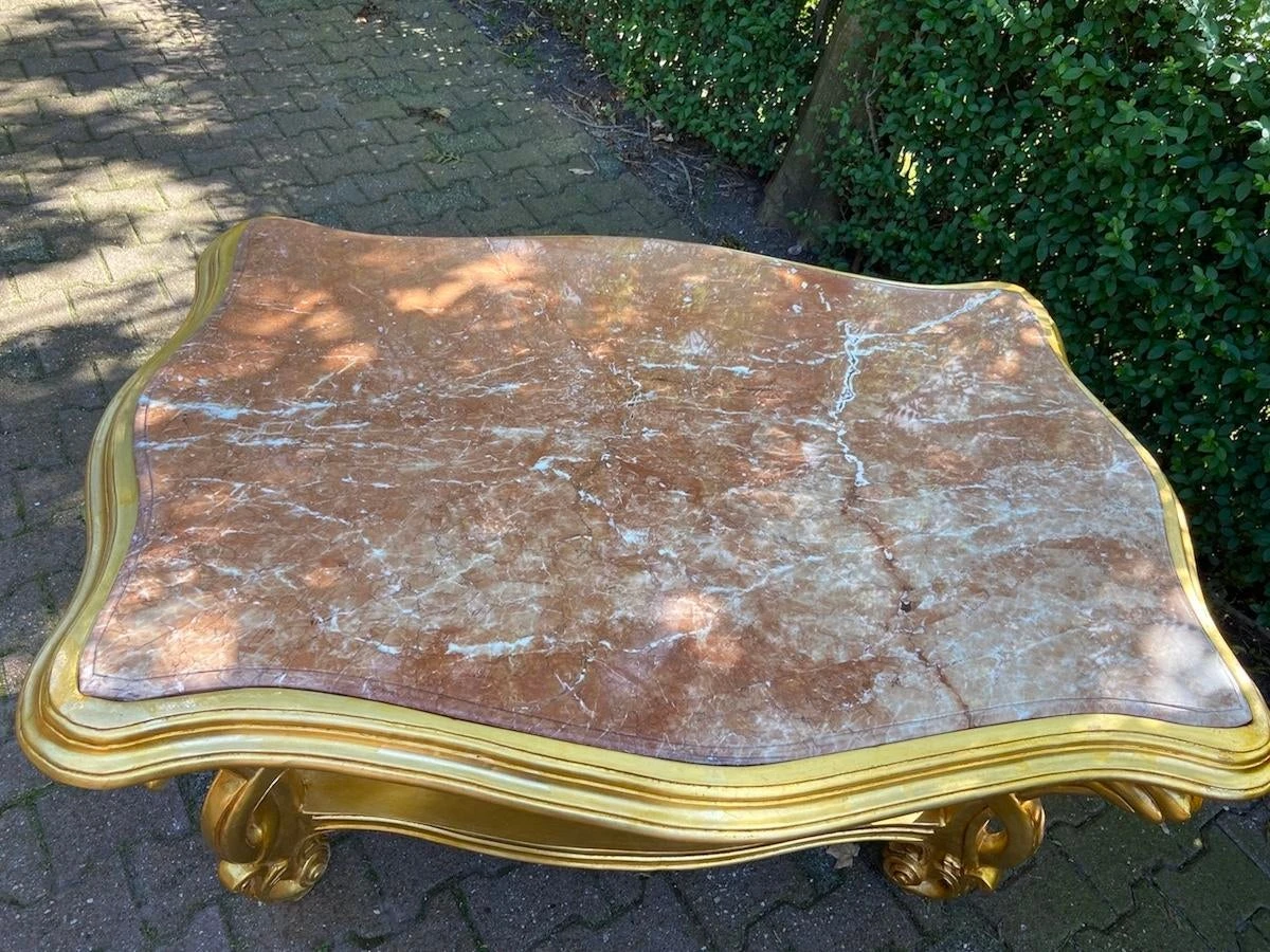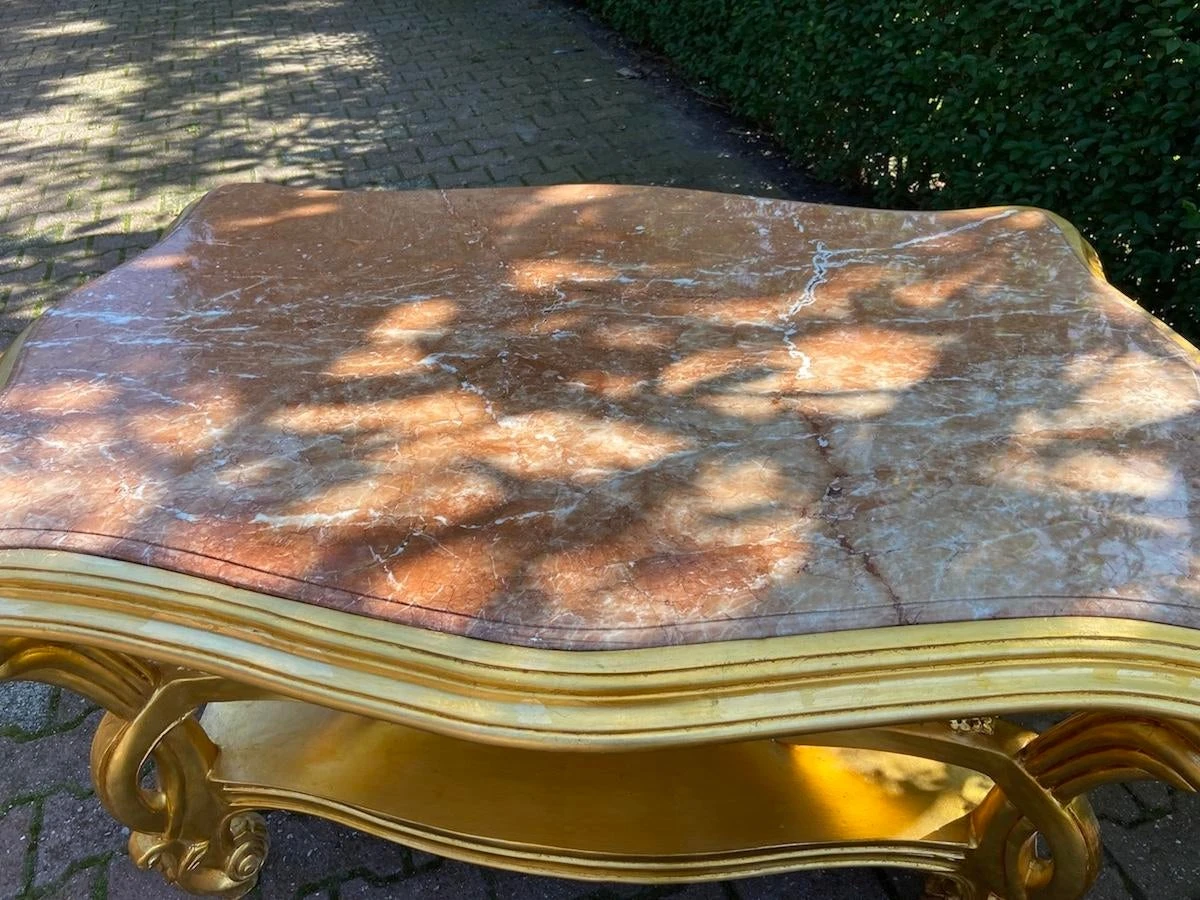The tables has its original marble top in pink colour.