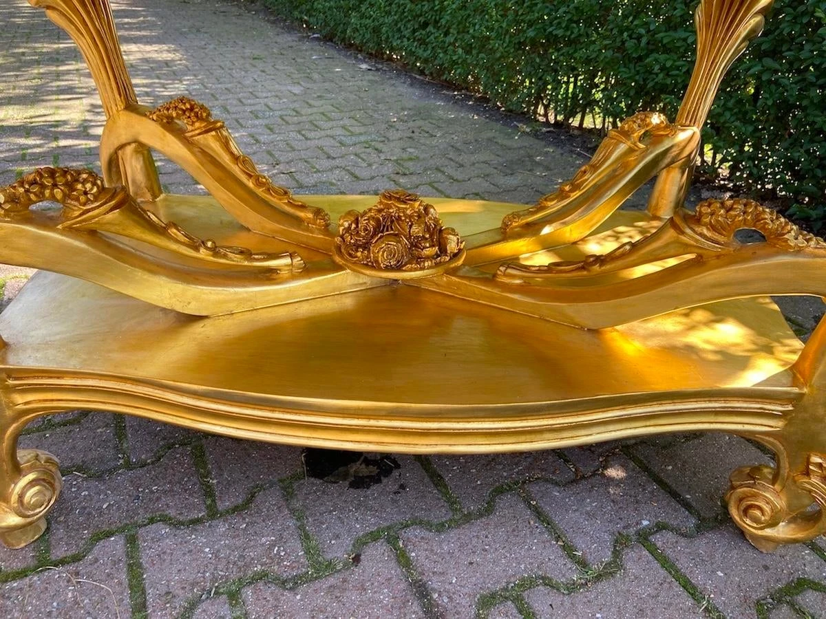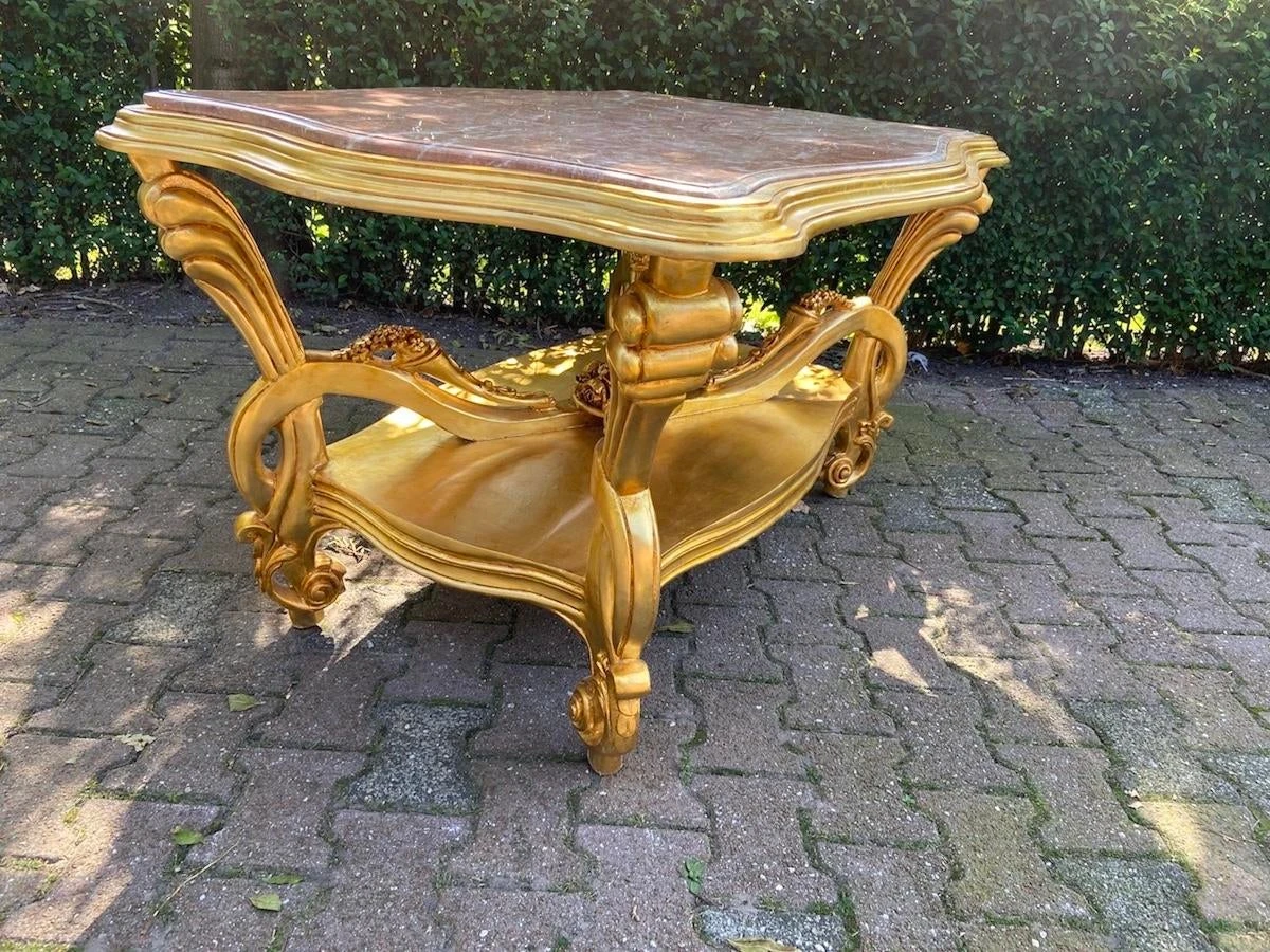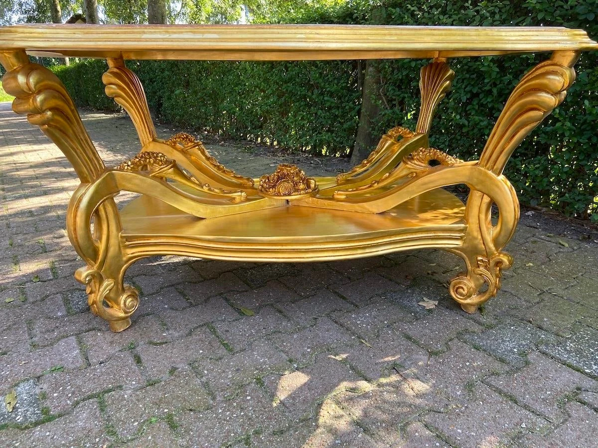 A beautiful center table. Handmade from beech around 1980. Made in Italian Baroque/Rococo style. beautifully decorated with typical Baroque/ Rococo …