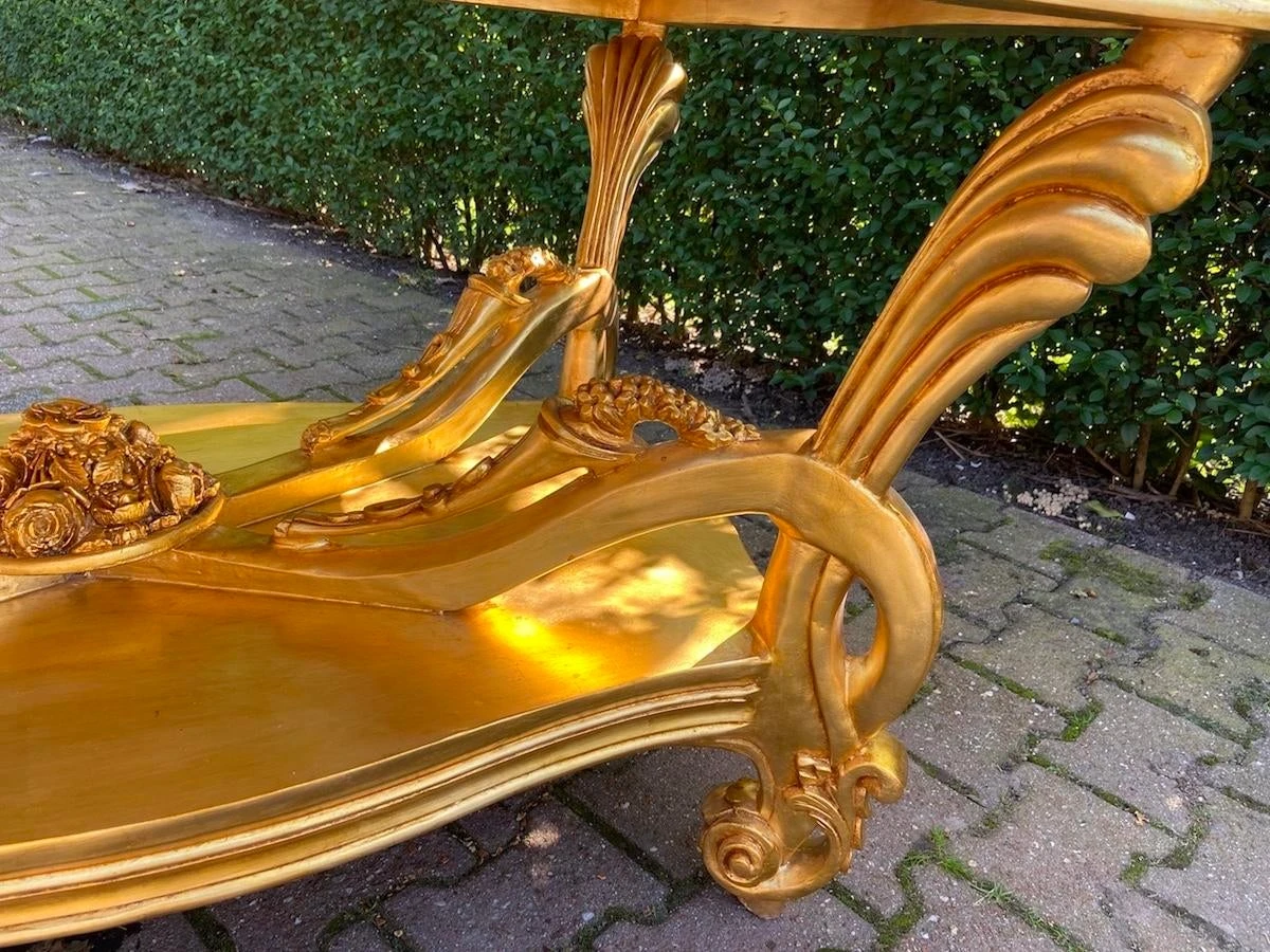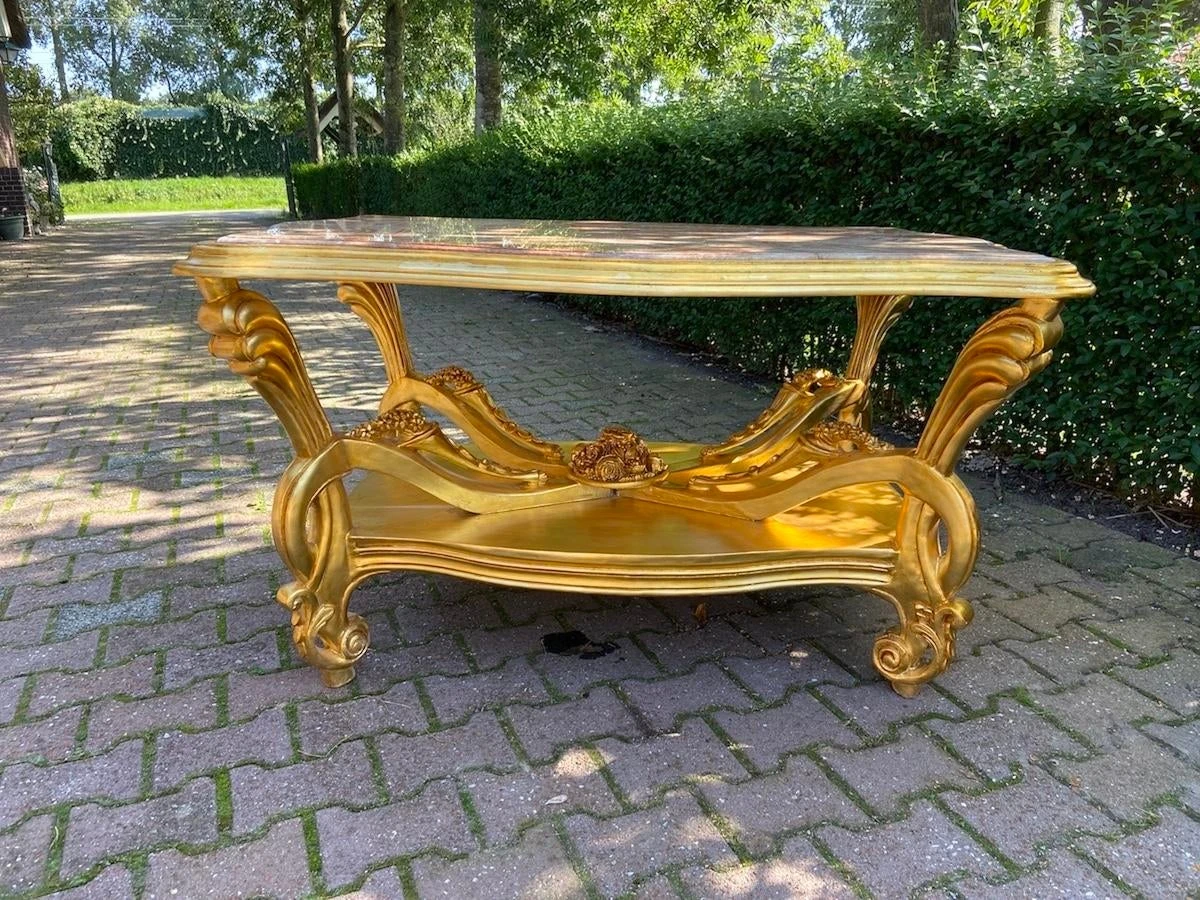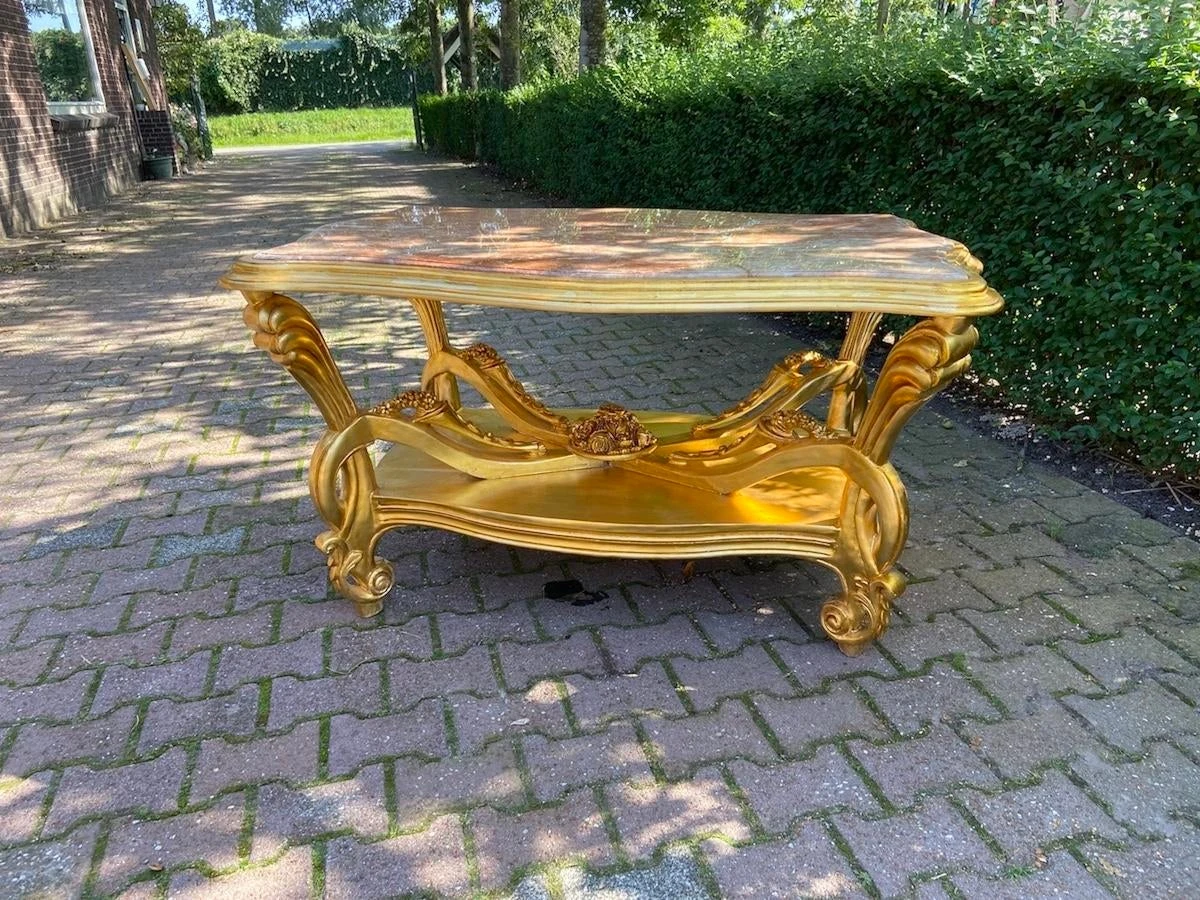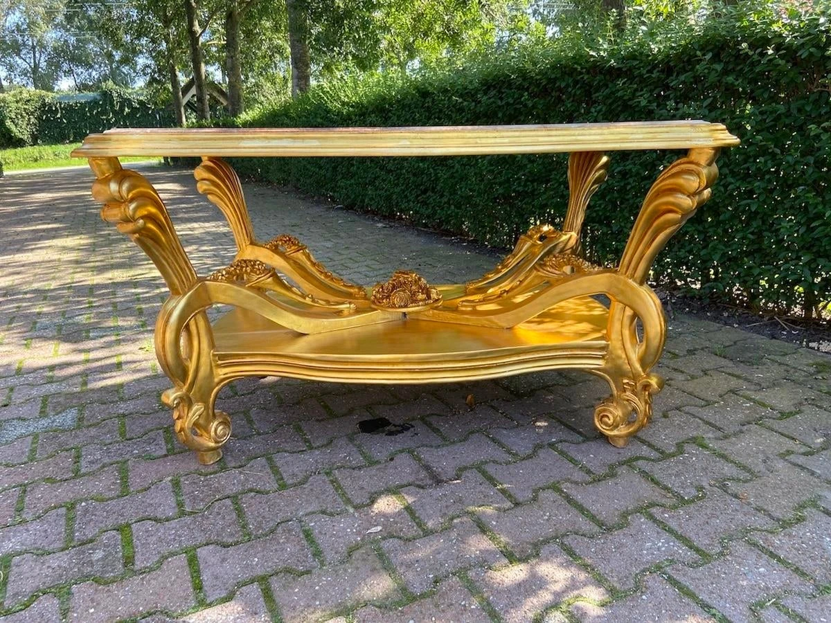 A beautiful center table. Handmade from beech around 1980. Made in Italian Baroque/Rococo style. beautifully decorated with typical Baroque/ Rococo …