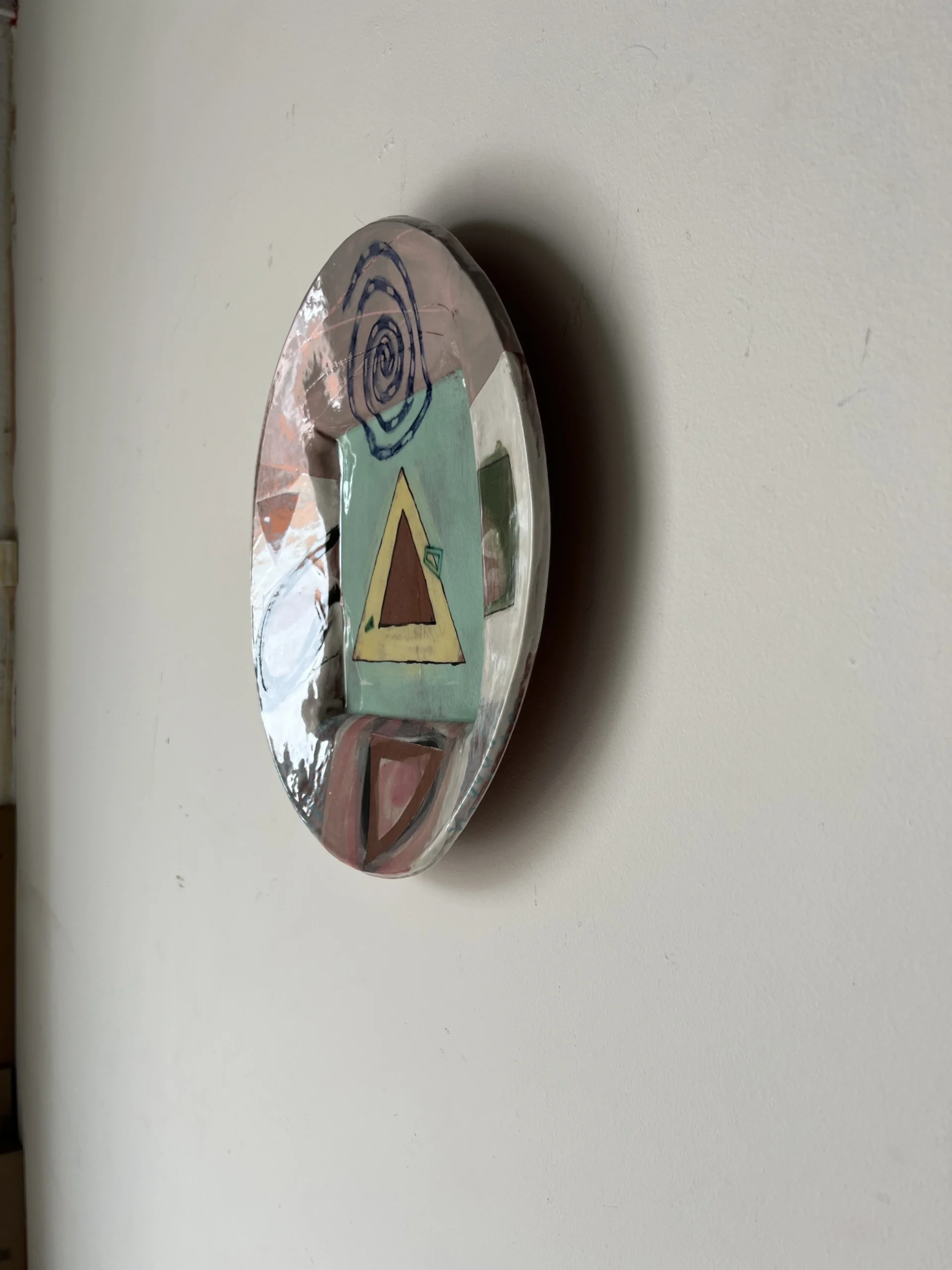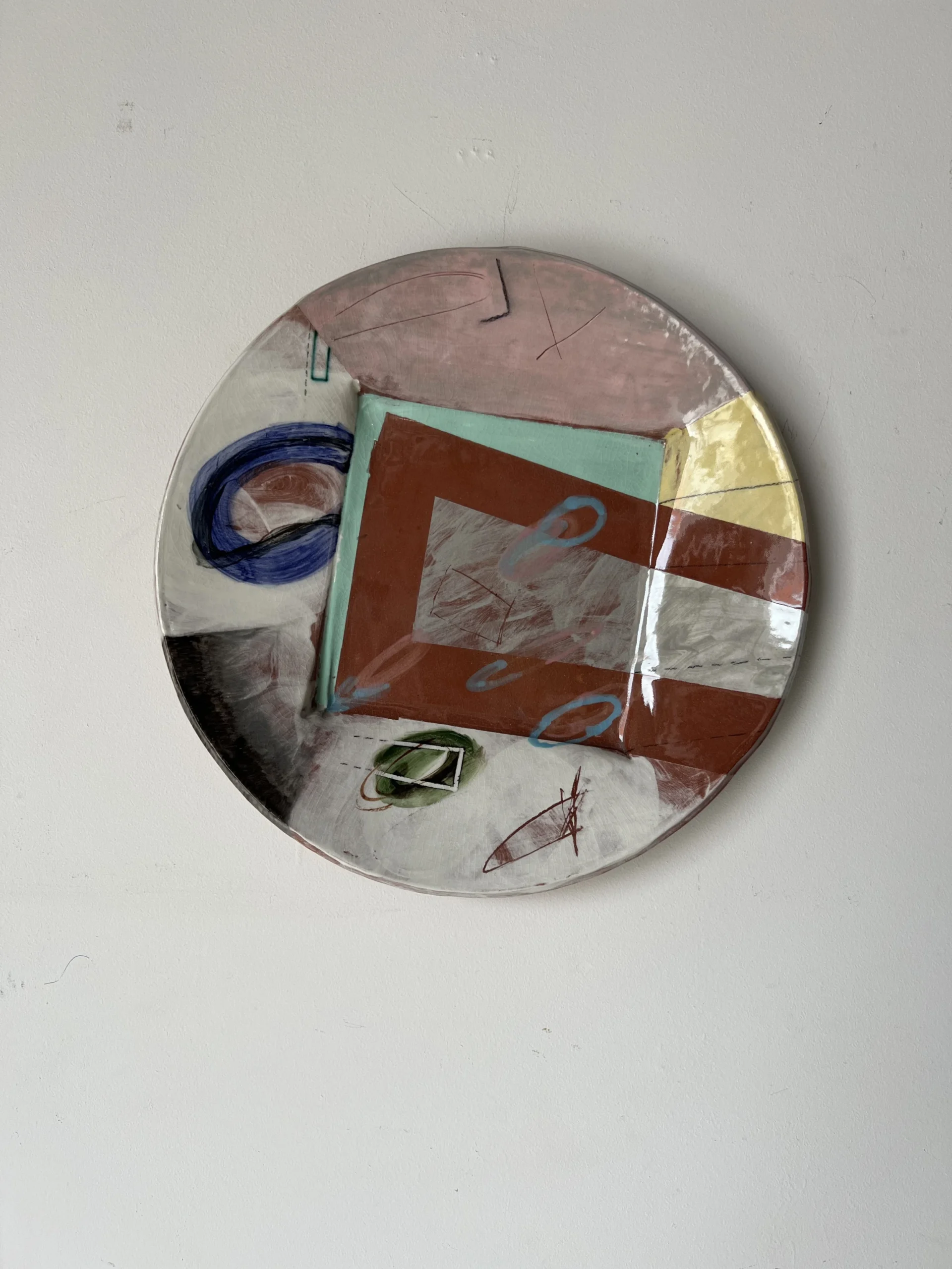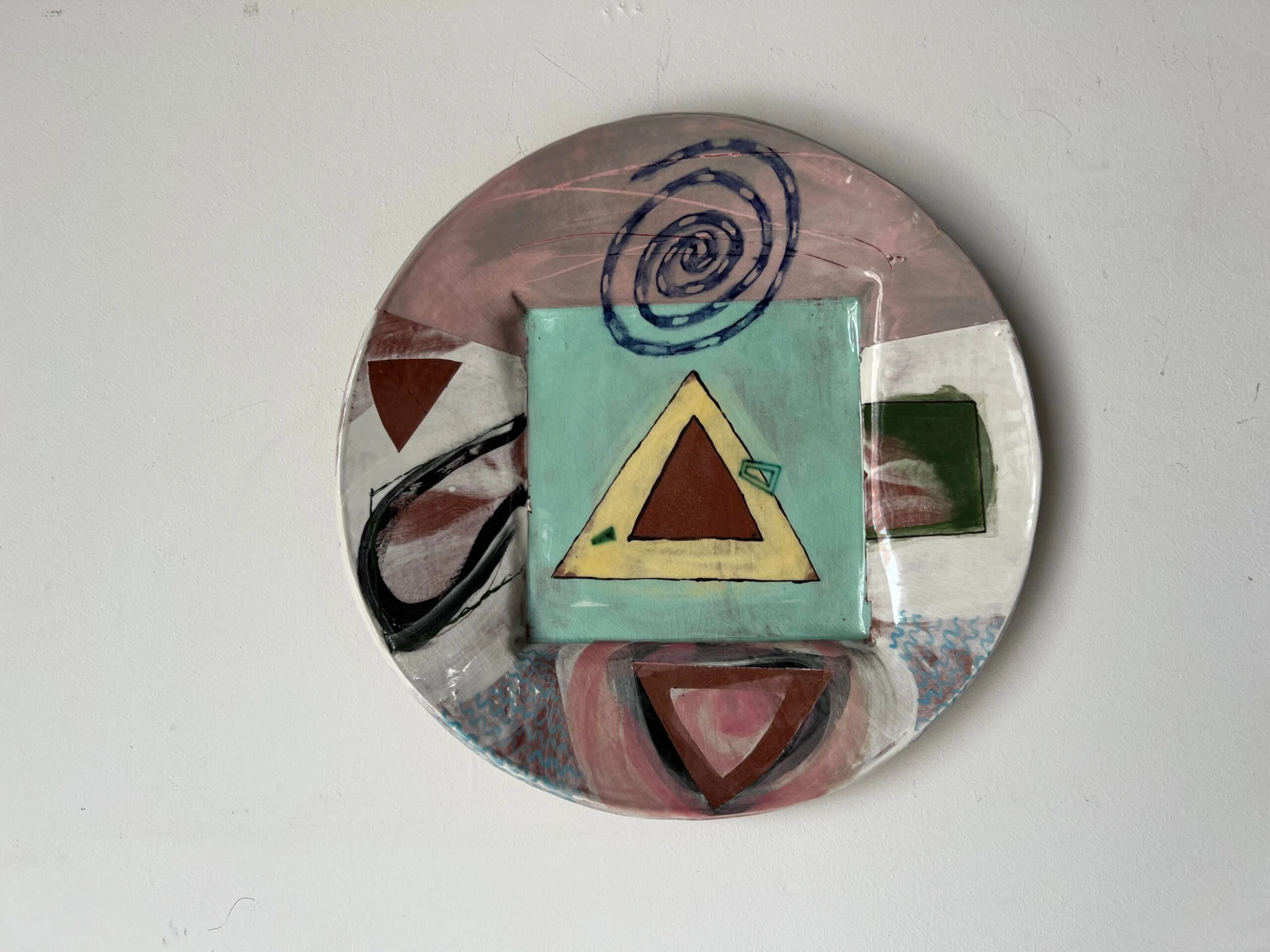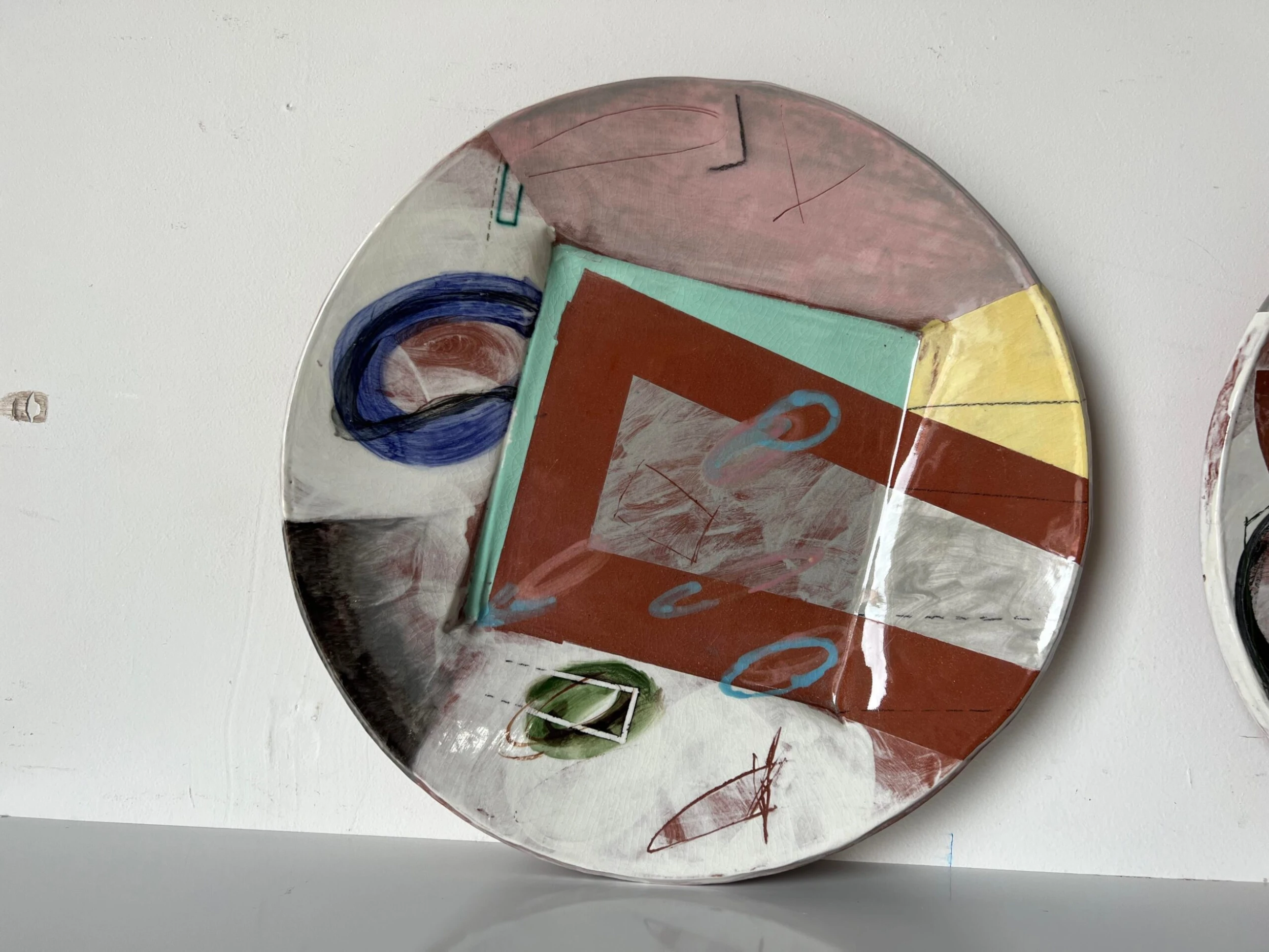 I’m pleased to offer for sale this magnificent pair of vintage Postmodern style hand painted decorative wall art pottery plates. The hand painted practice modernist with beautiful colors is on full display on this wall art plates made by ceramic artist Larry H. Date of 1982. Signed .