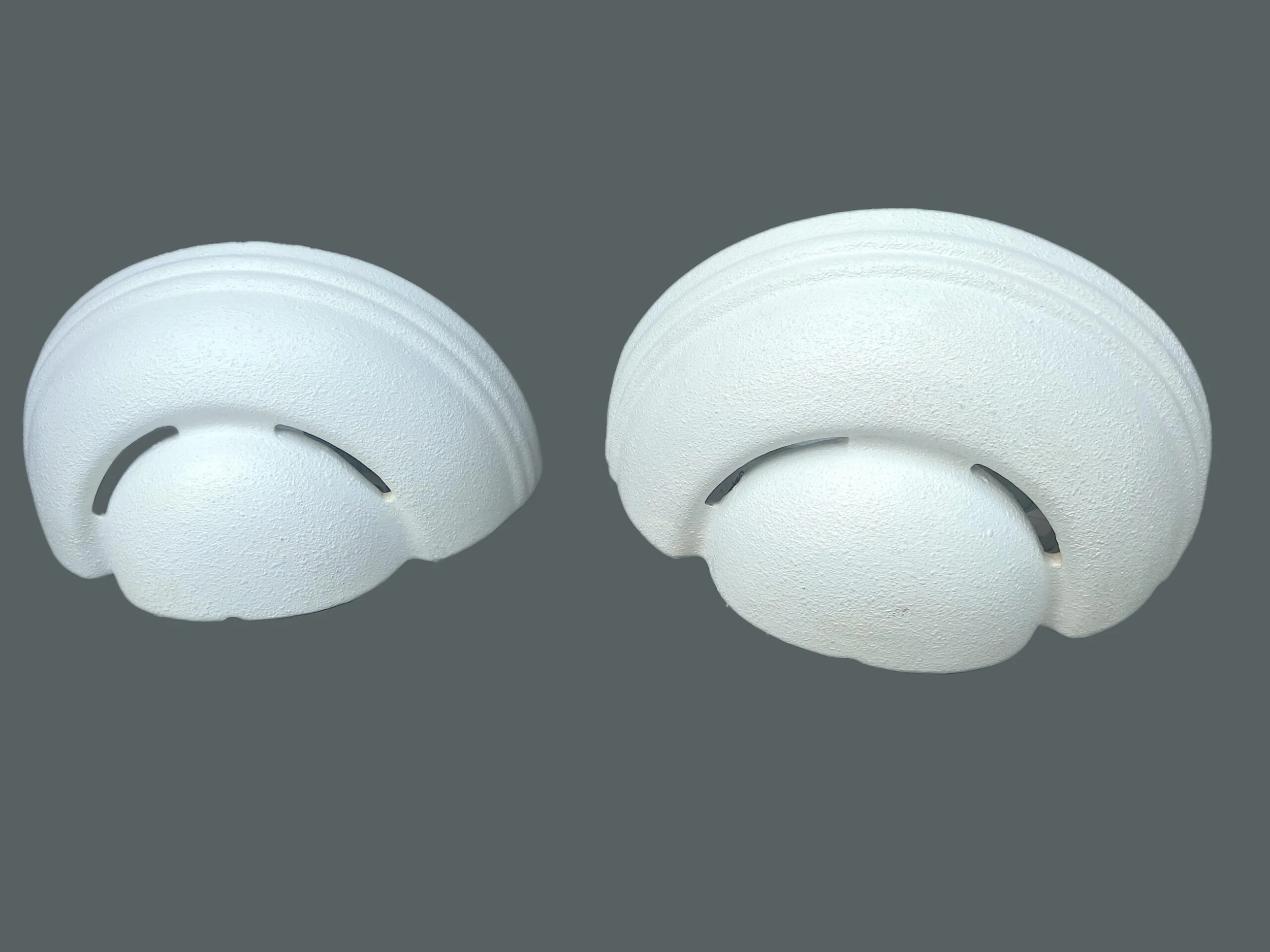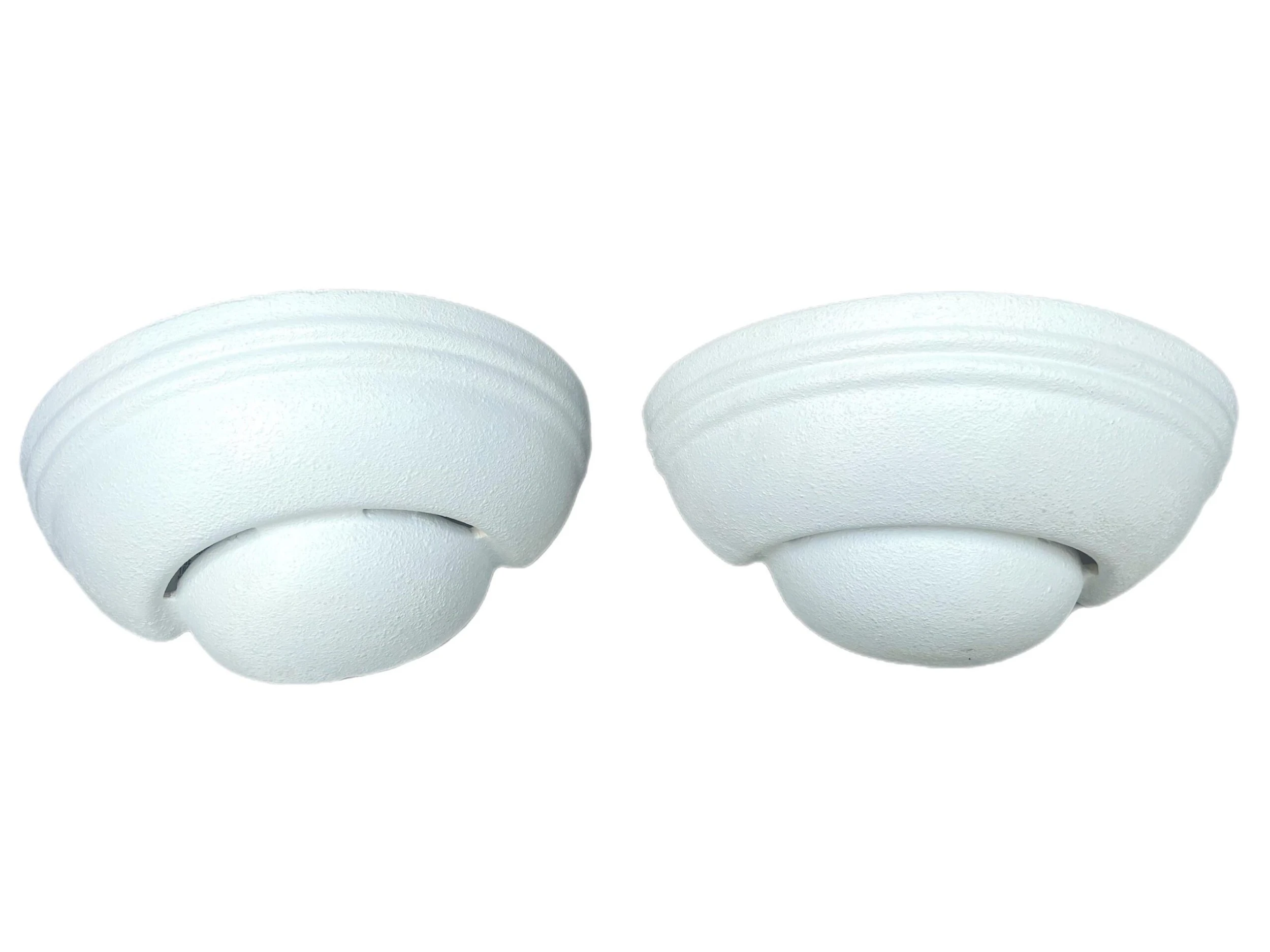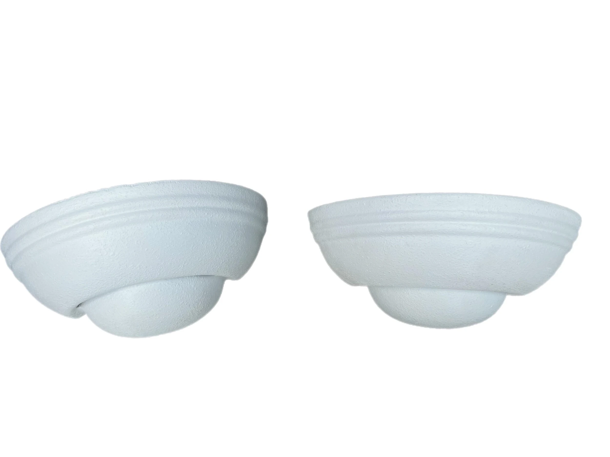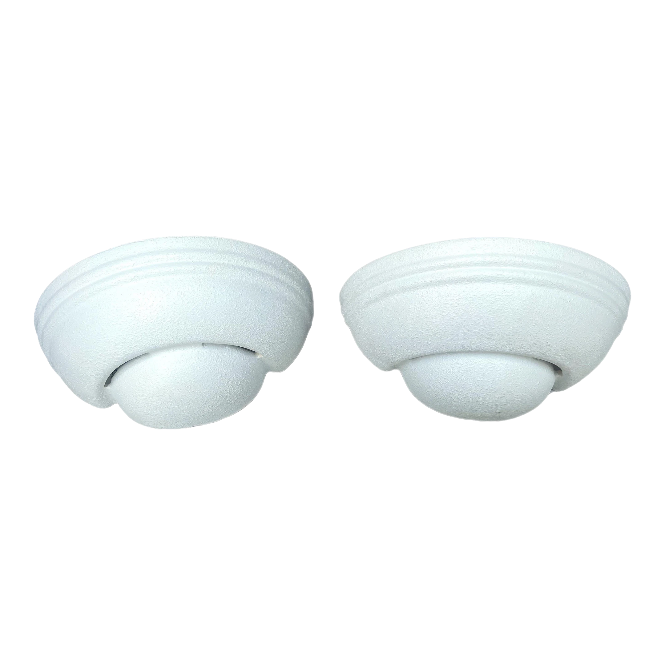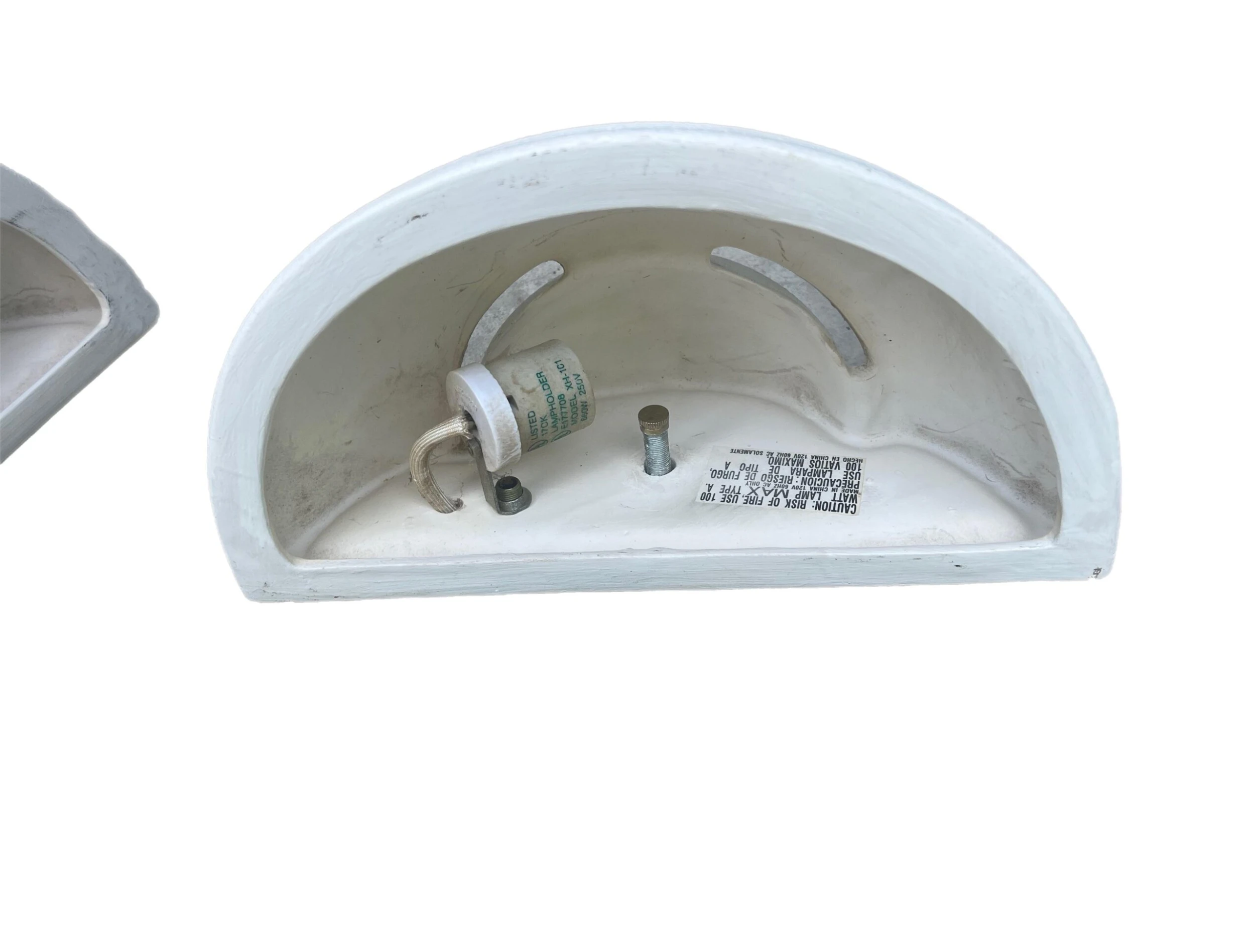 A fabulous pair of ceramic/plaster textured wall sconces. These are in excellent condition and have recessed lighting on the bottom …