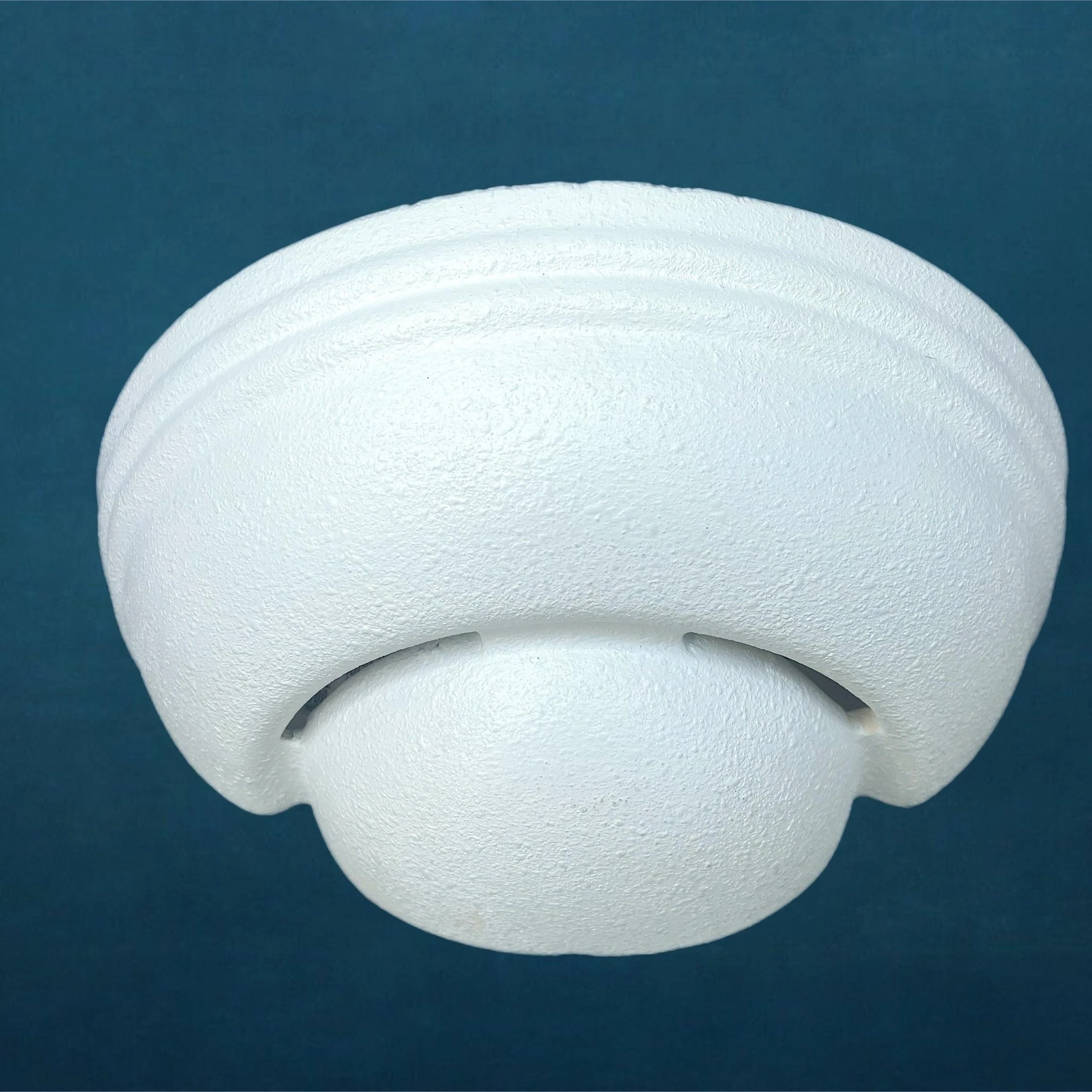 A fabulous pair of ceramic/plaster textured wall sconces. These are in excellent condition and have recessed lighting on the bottom in addition to the larger light coming out of the top.