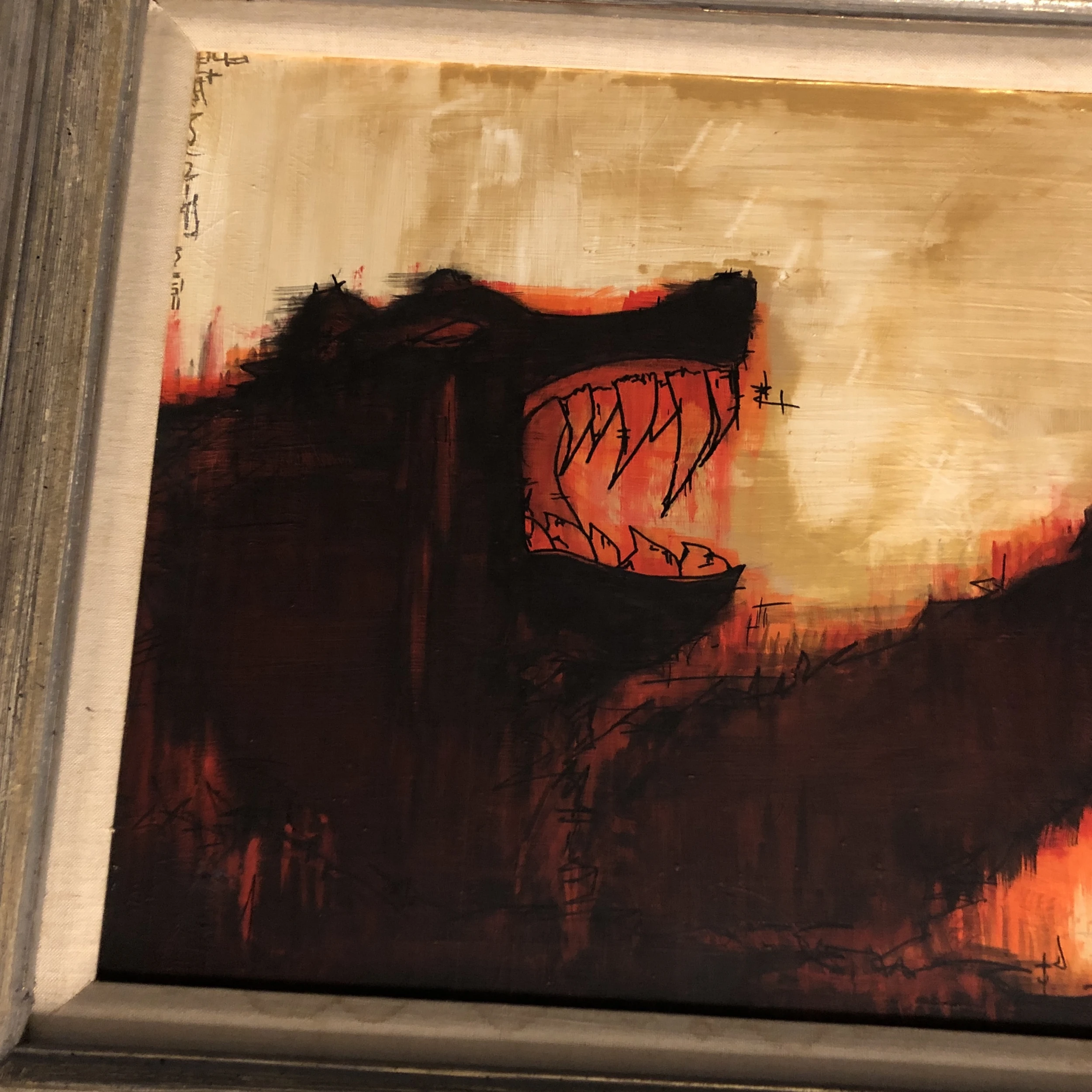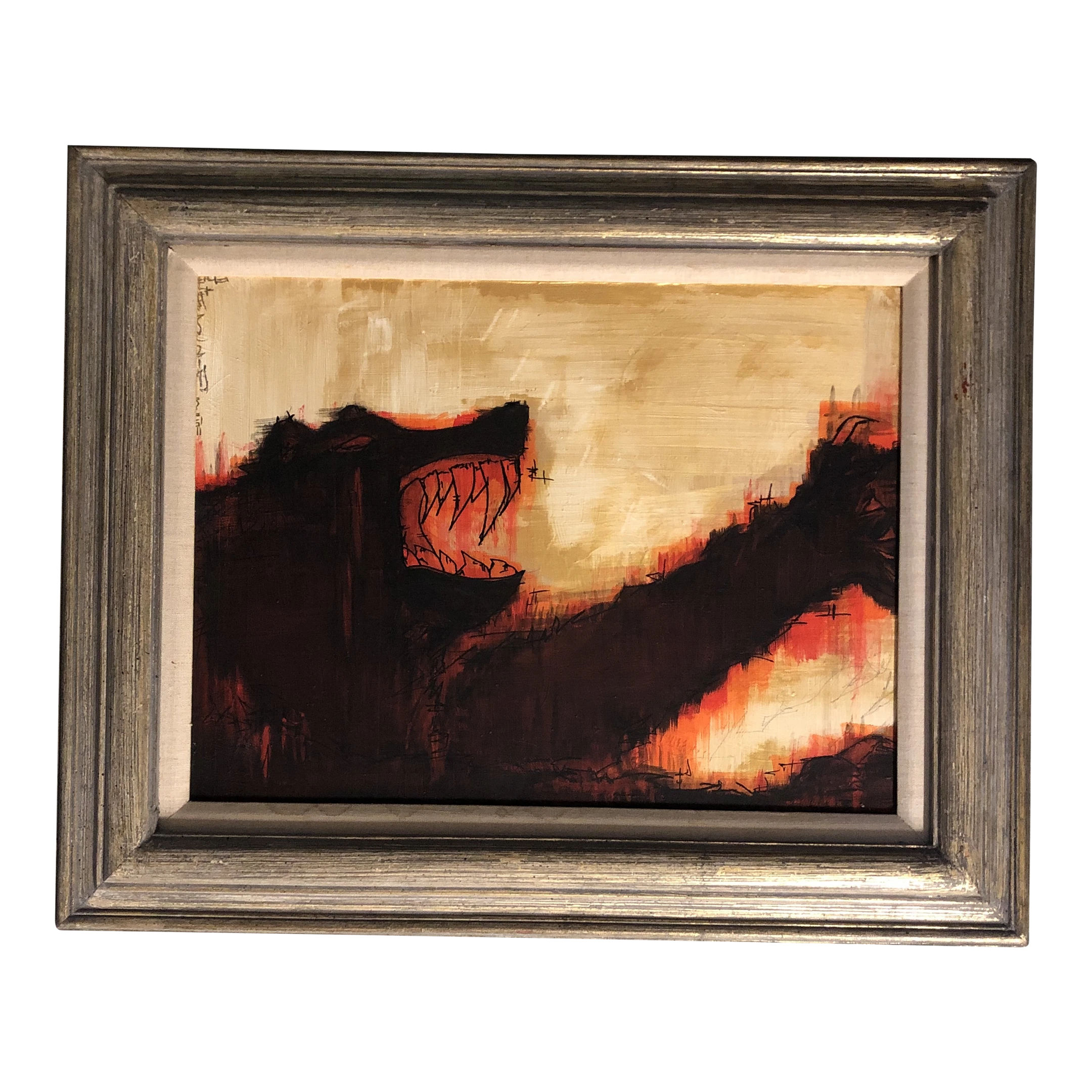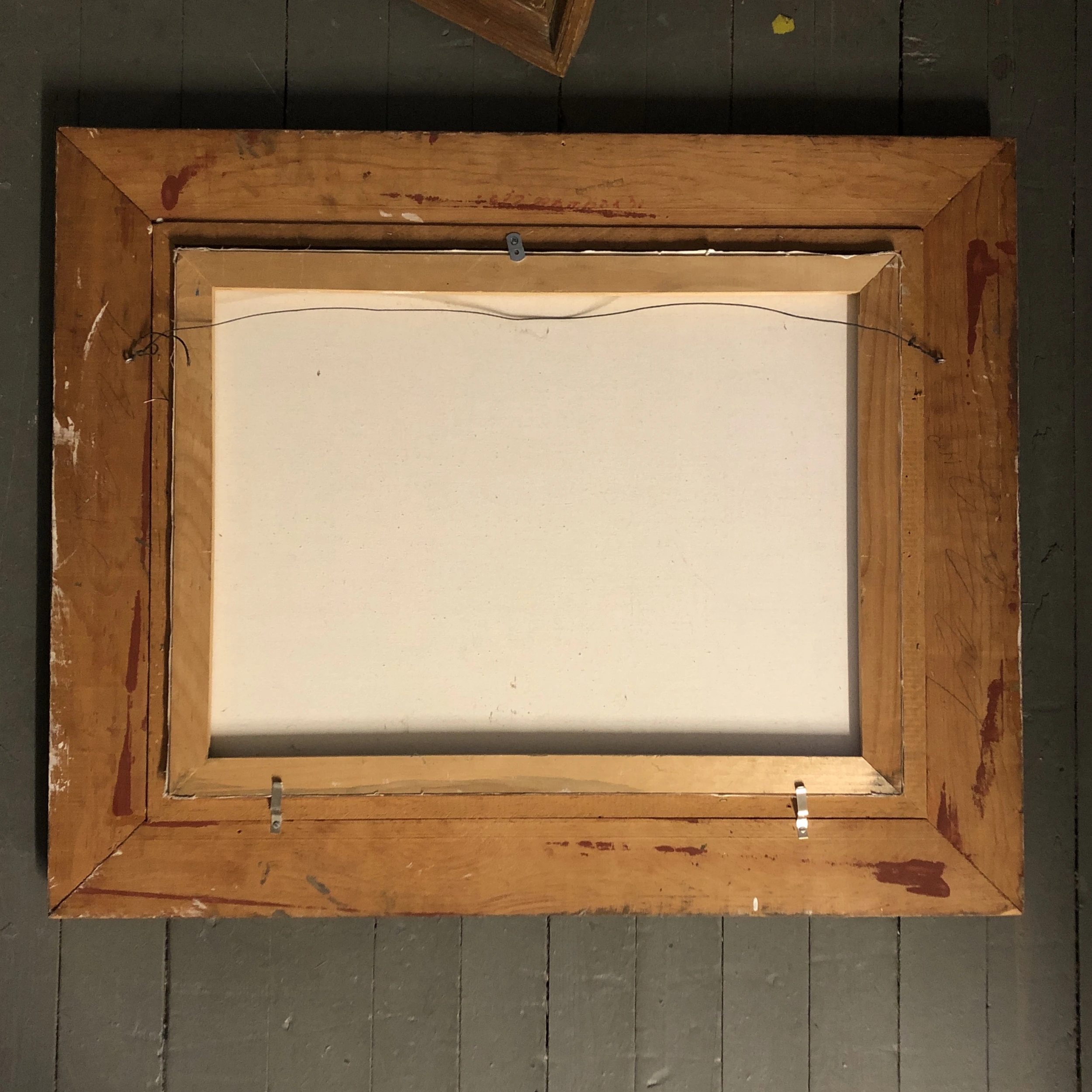 Original painting on stretched canvas 18 x 24 possible signed in upper left side? Overall size with vintage frame with …