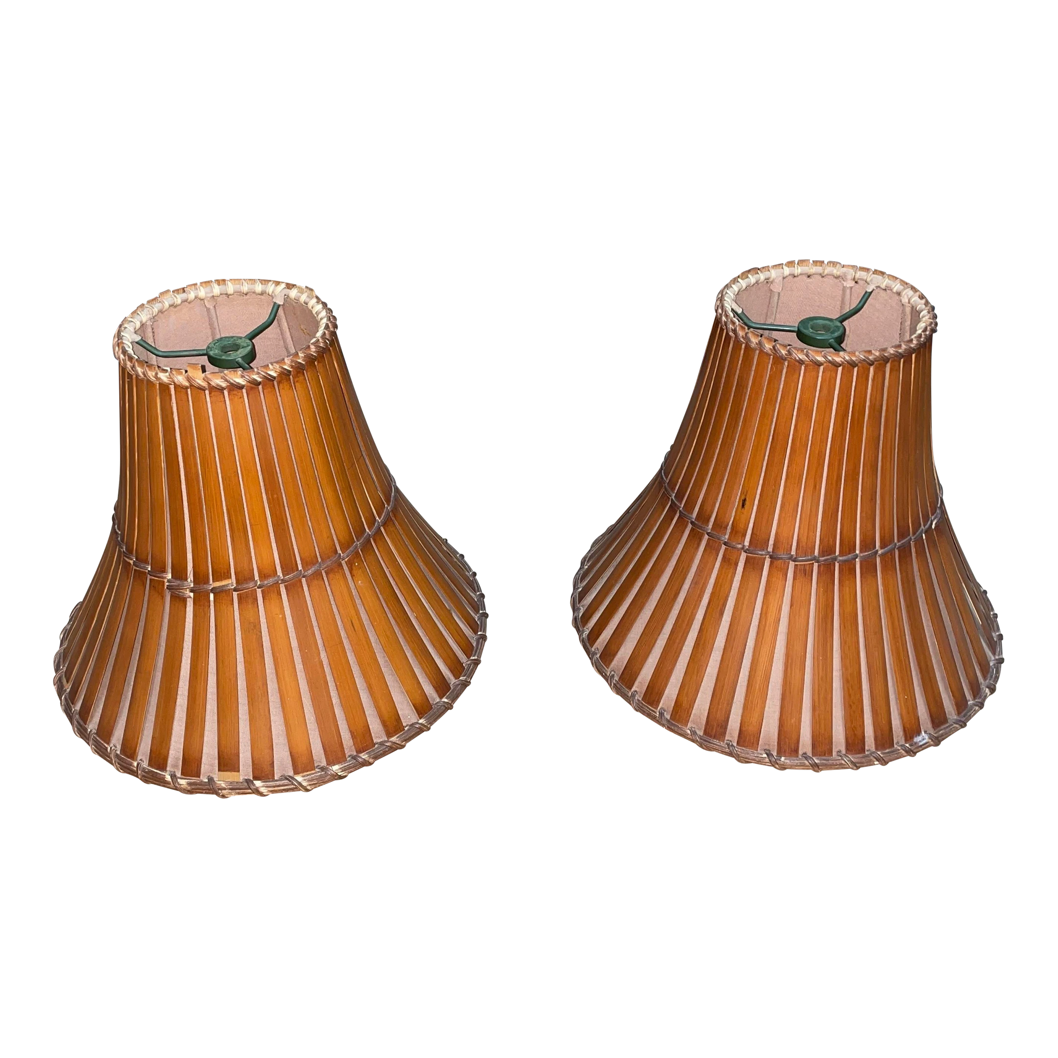 Up for grabs is a pair of rattan / bamboo lampshades that are fabric lined. The bamboo on both shades …