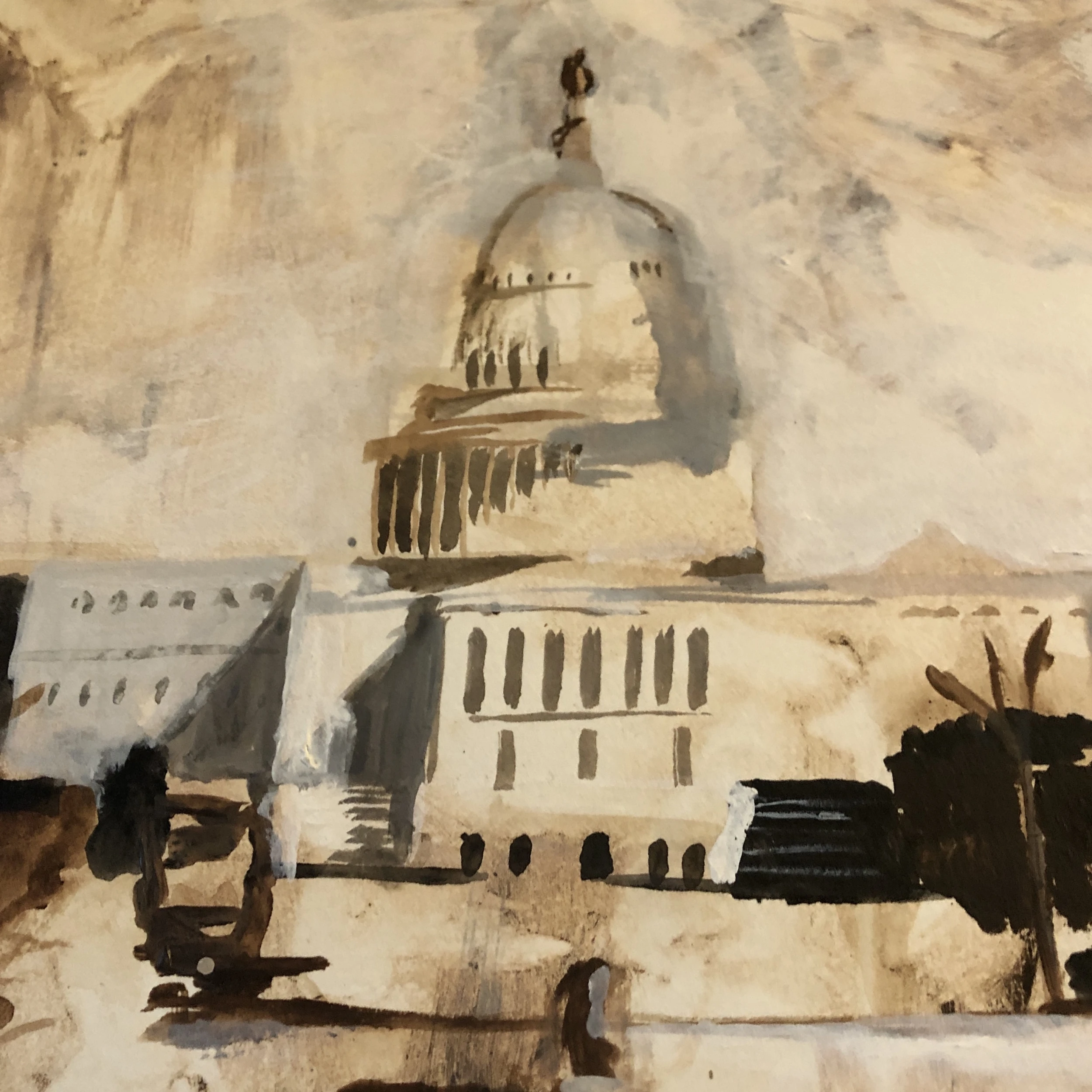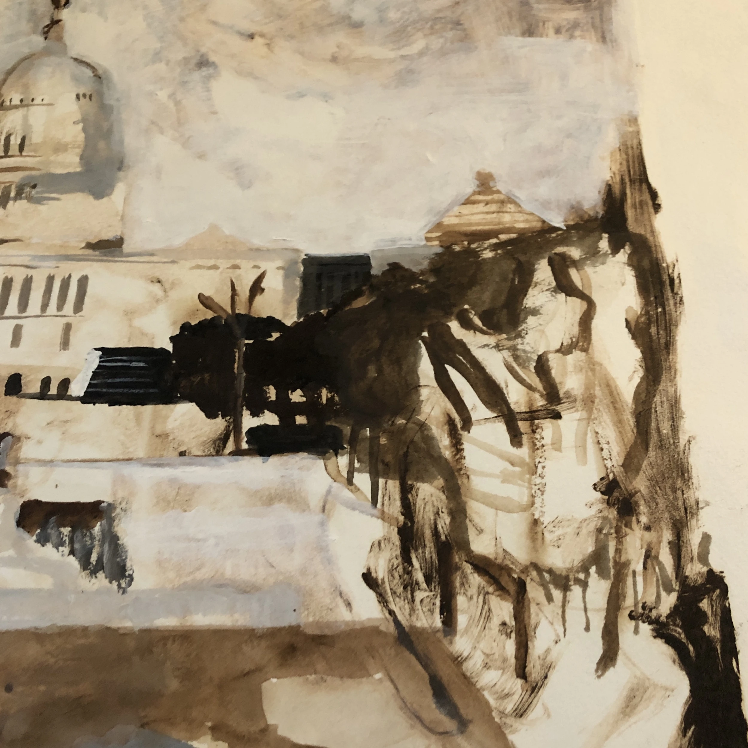 Original painting on paper signed bottom right titled bottom left image size 18 x 20 paper size is 20 x 26 unframed