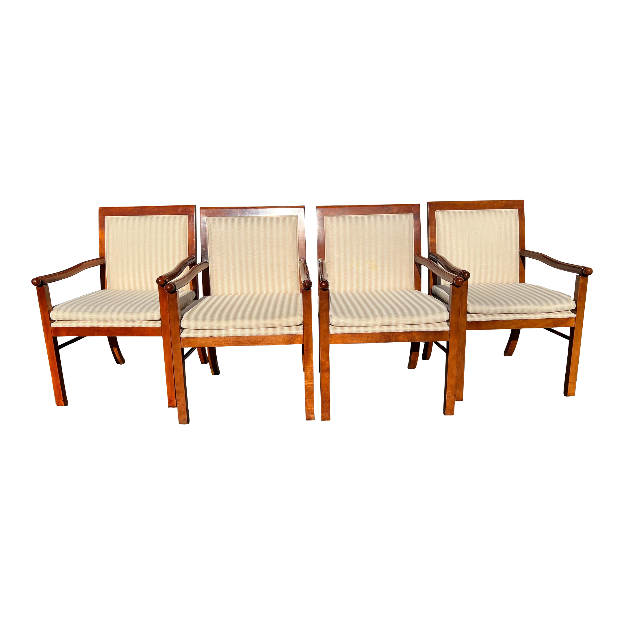 2010’s Baker Furniture Mahogany Captains Dining Chairs, a set of 4.