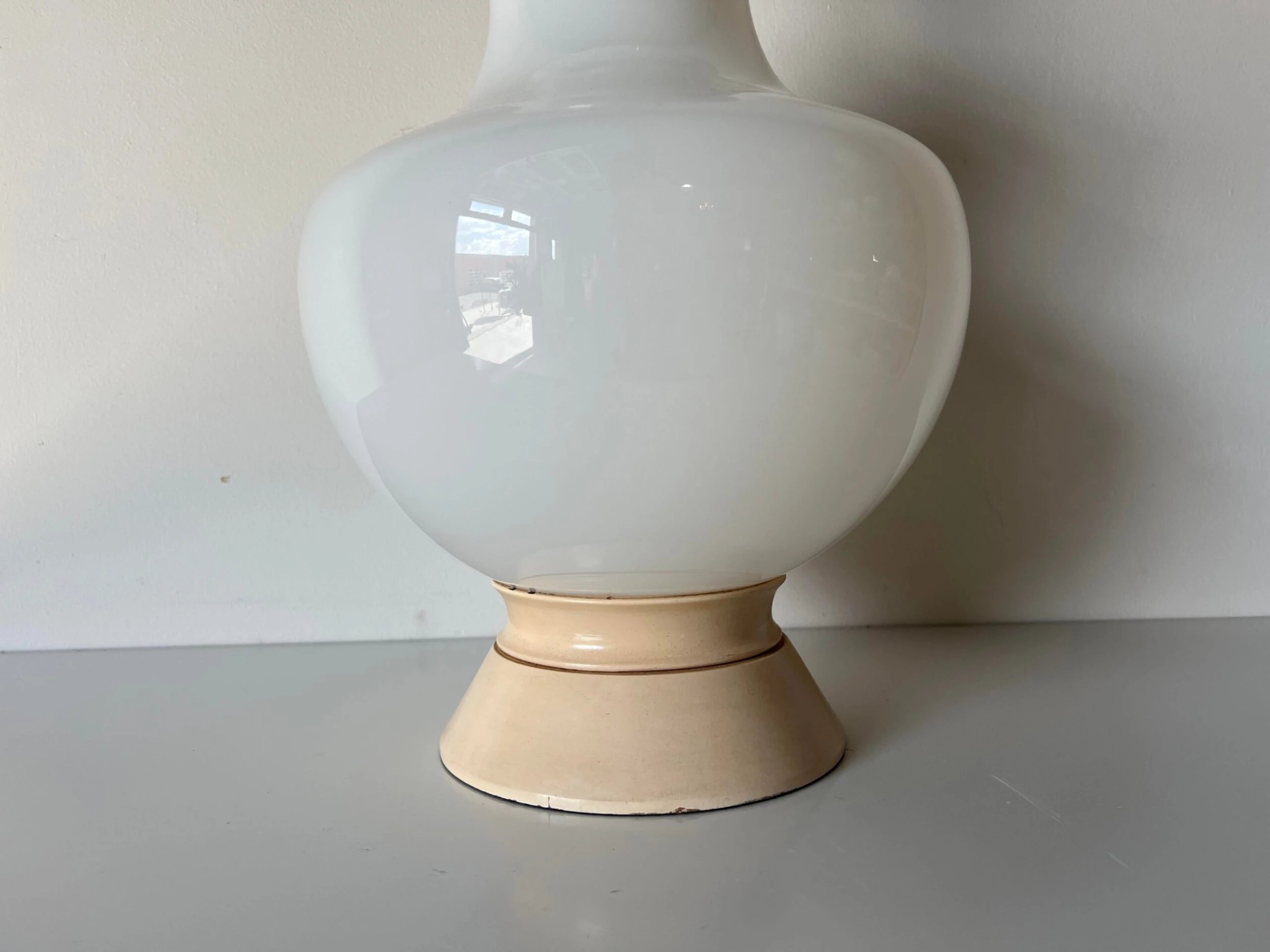 Available for sale this Stunning Vintage Hollywood Regency Italian white Murano glass decorative table Lamp. Manufactured, circa 1960’s